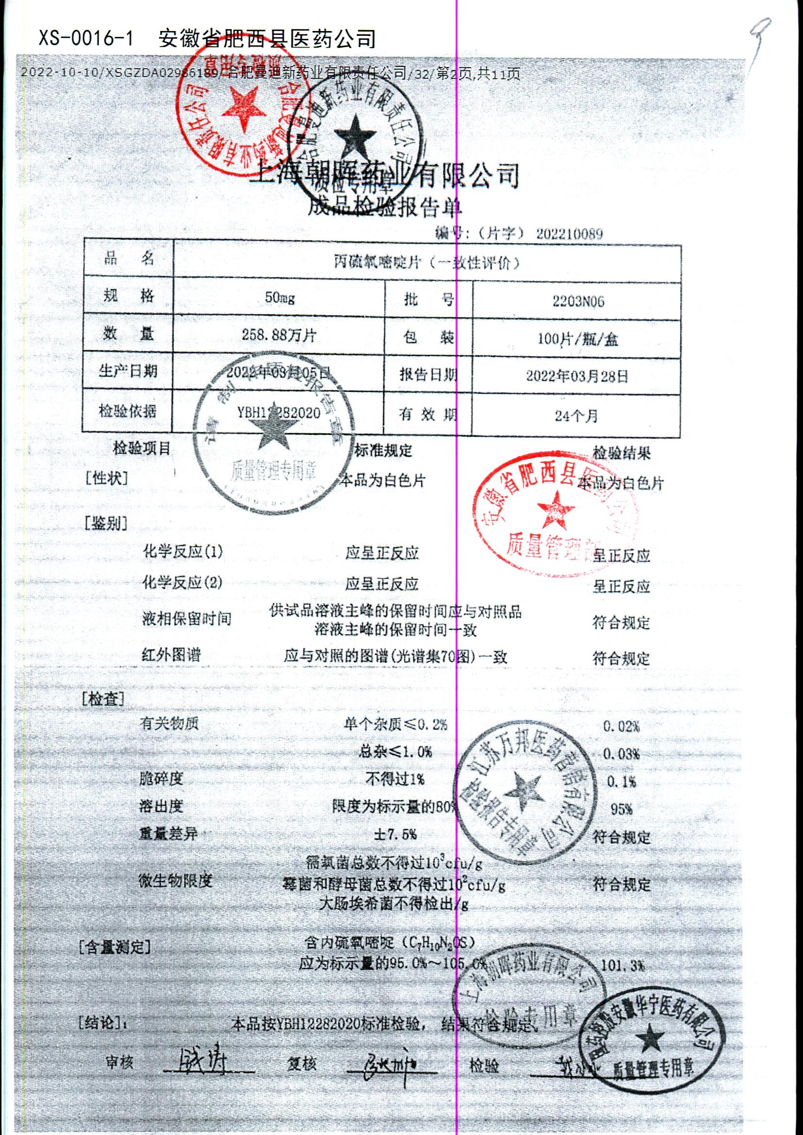 丙硫氧嘧啶片 | 50mg | 2203N06 | 查看详情 |