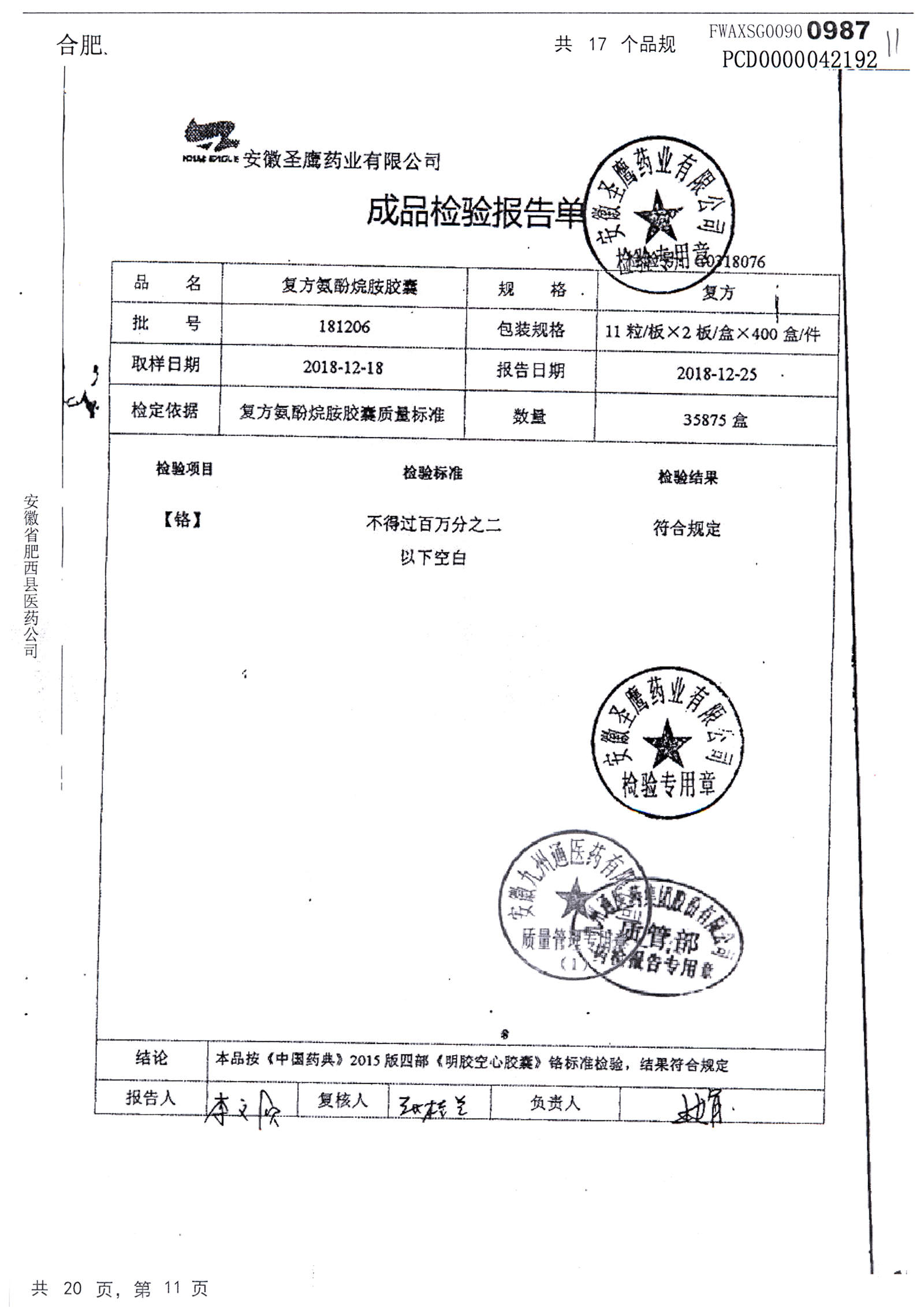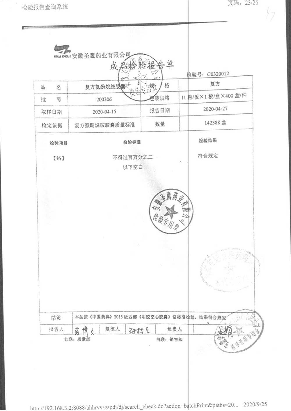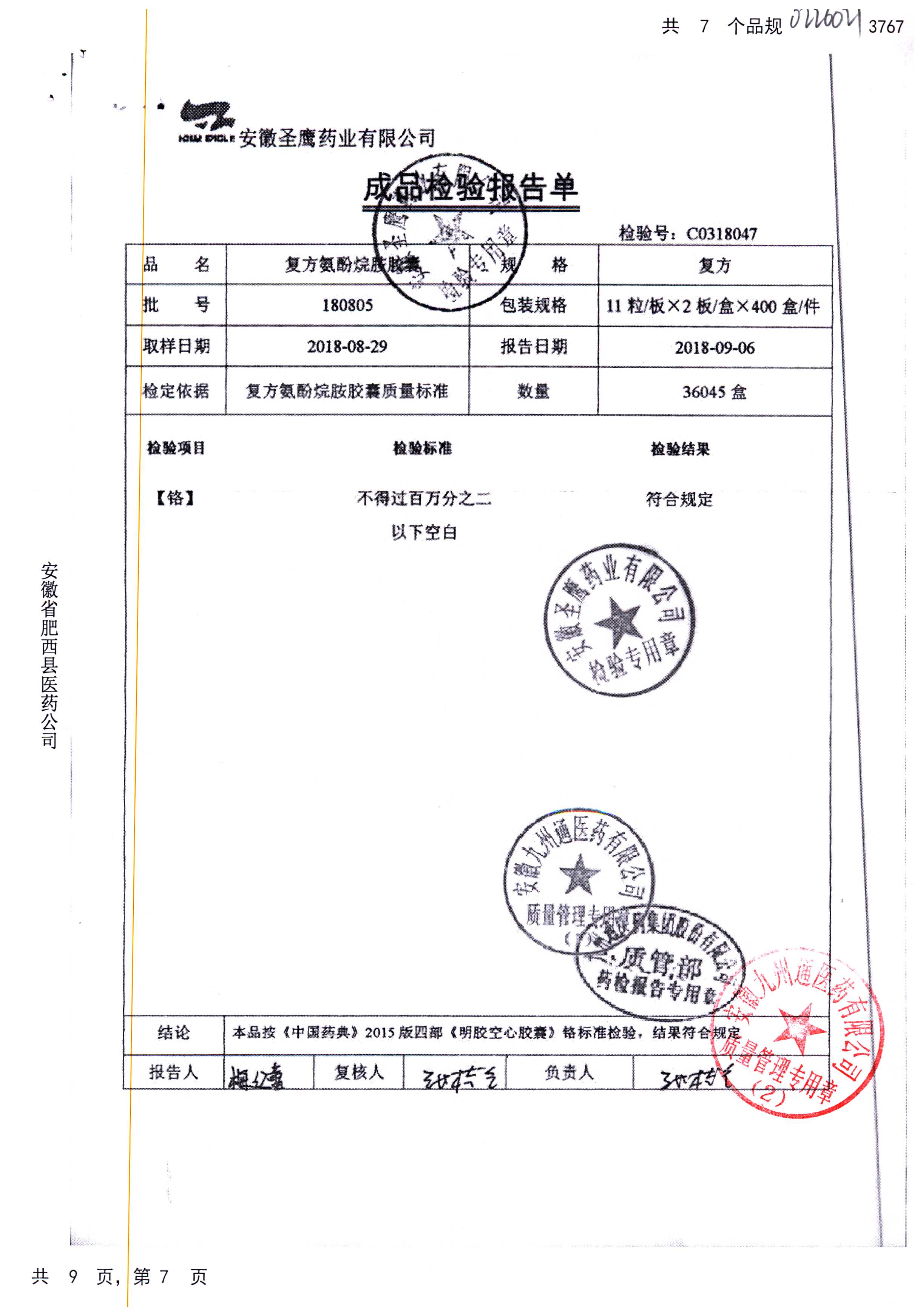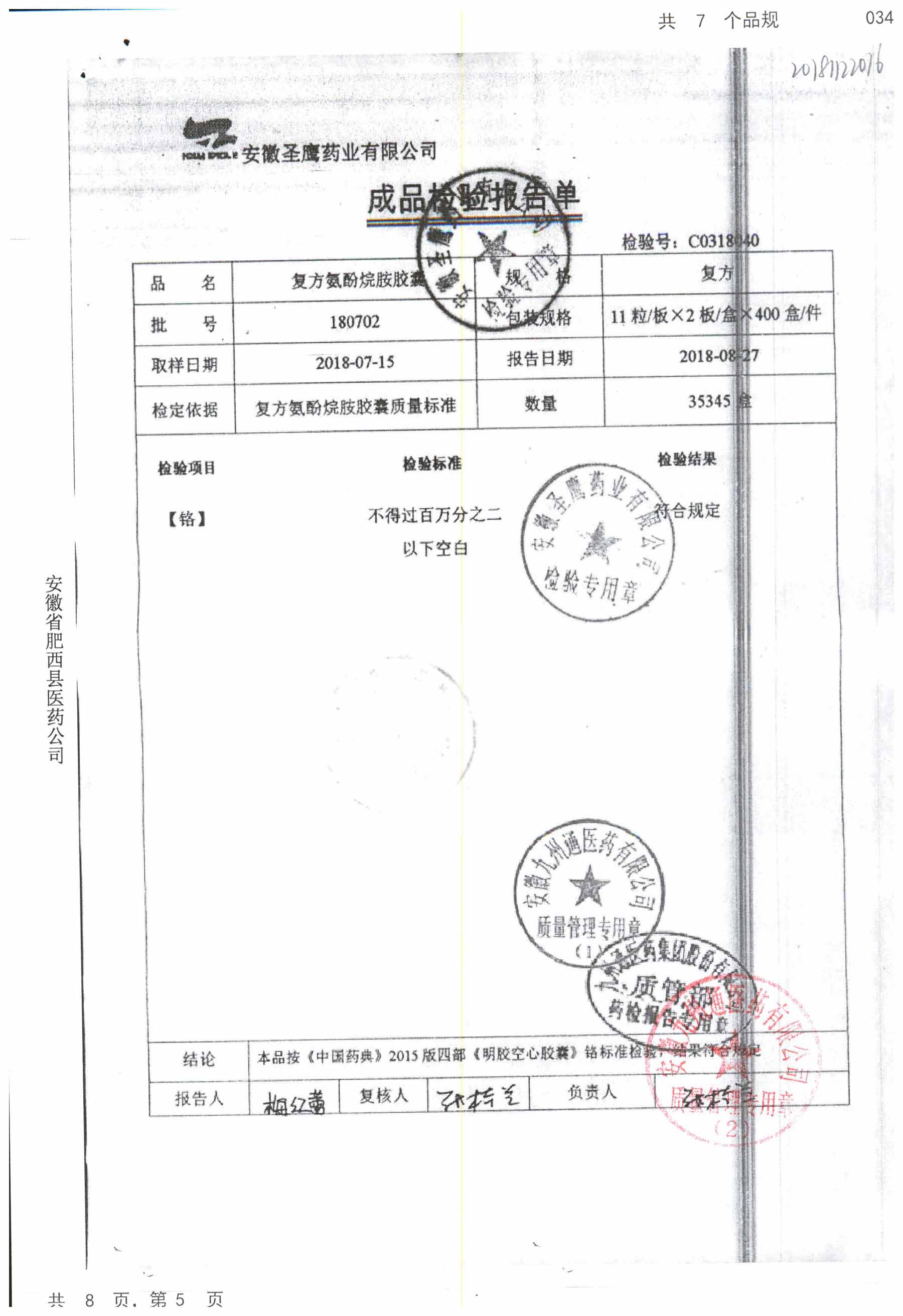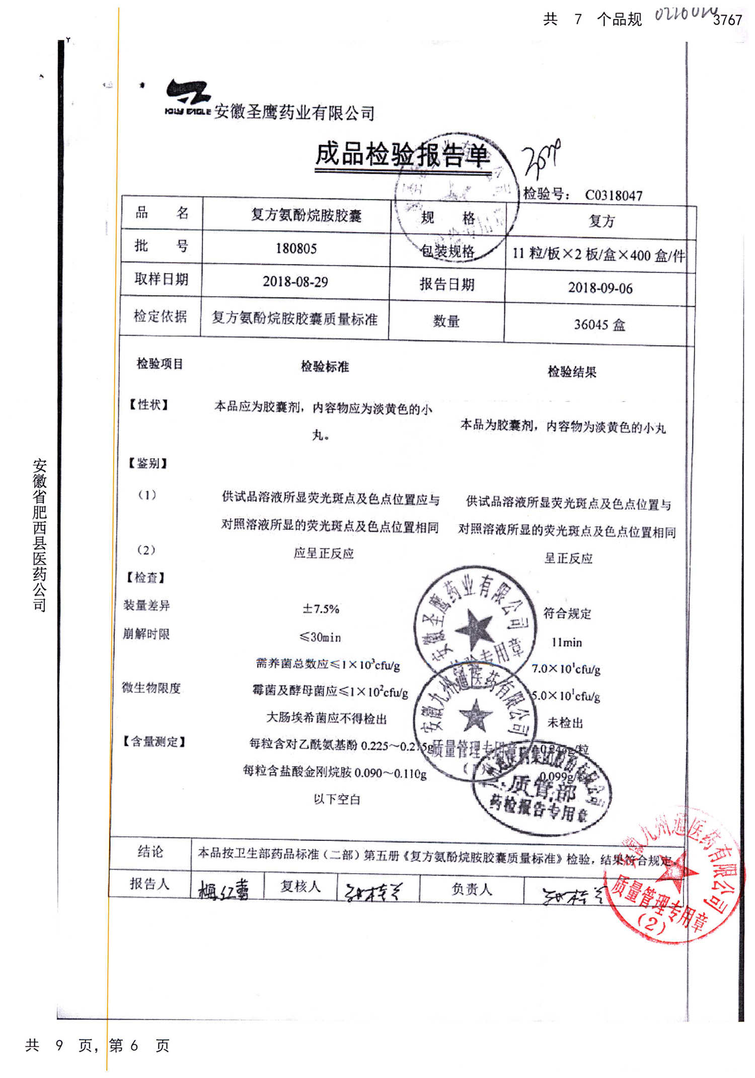 复方氨酚烷胺胶囊 | 22粒 | 180805(1/2) | 查看详情 |