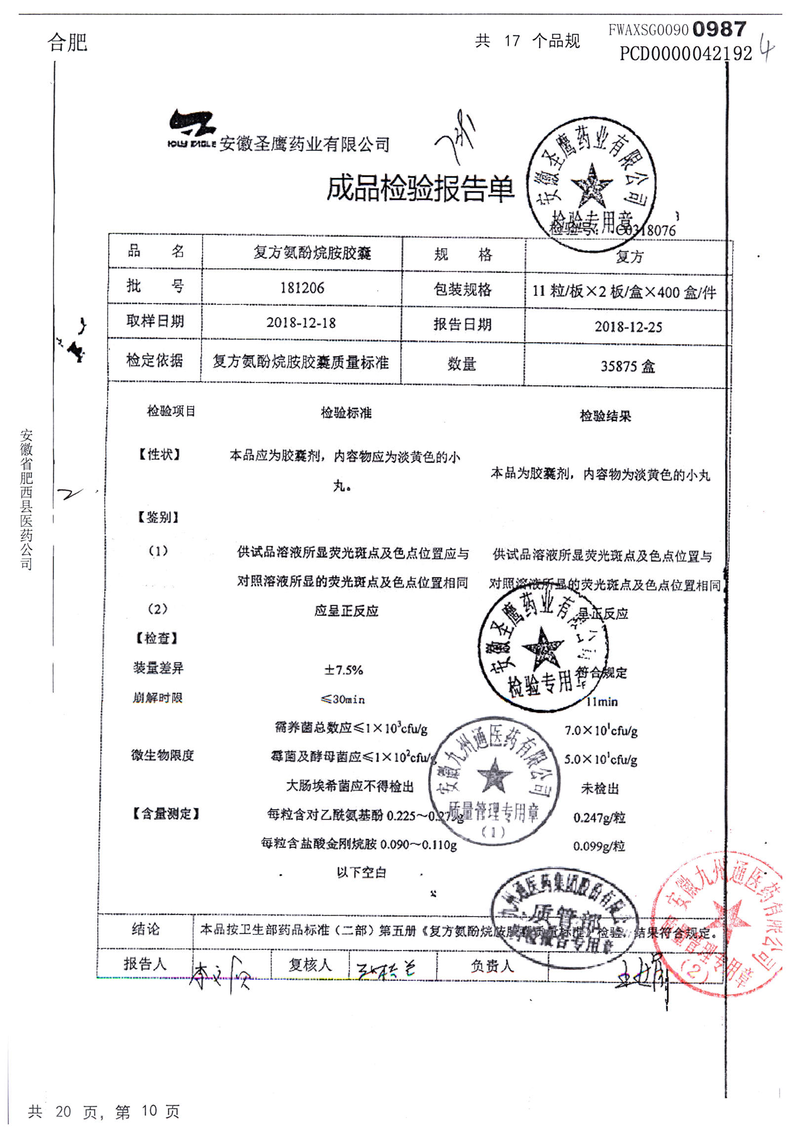 复方氨酚烷胺胶囊 | 22粒 | 180806(2/2) | 查看详情 |