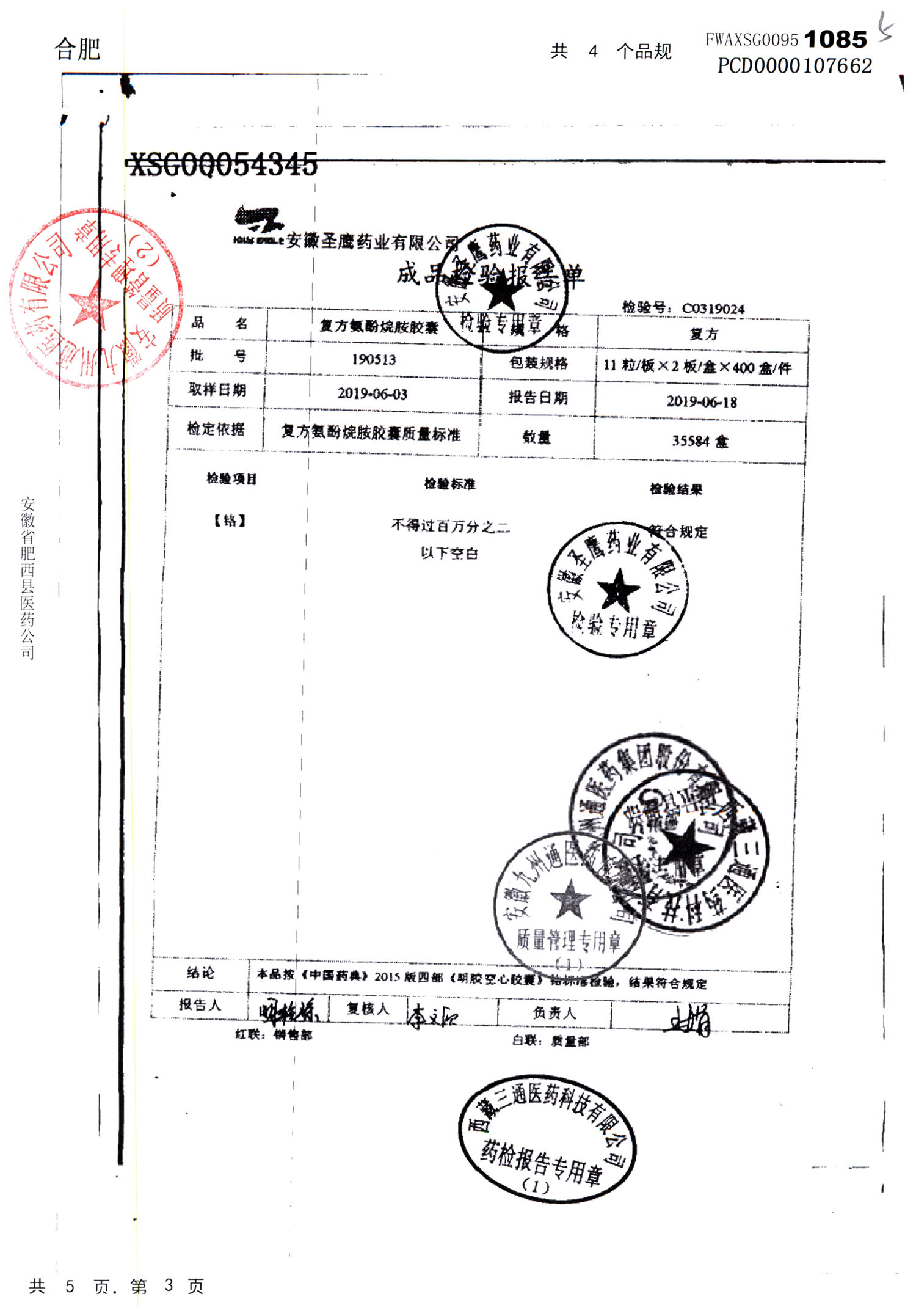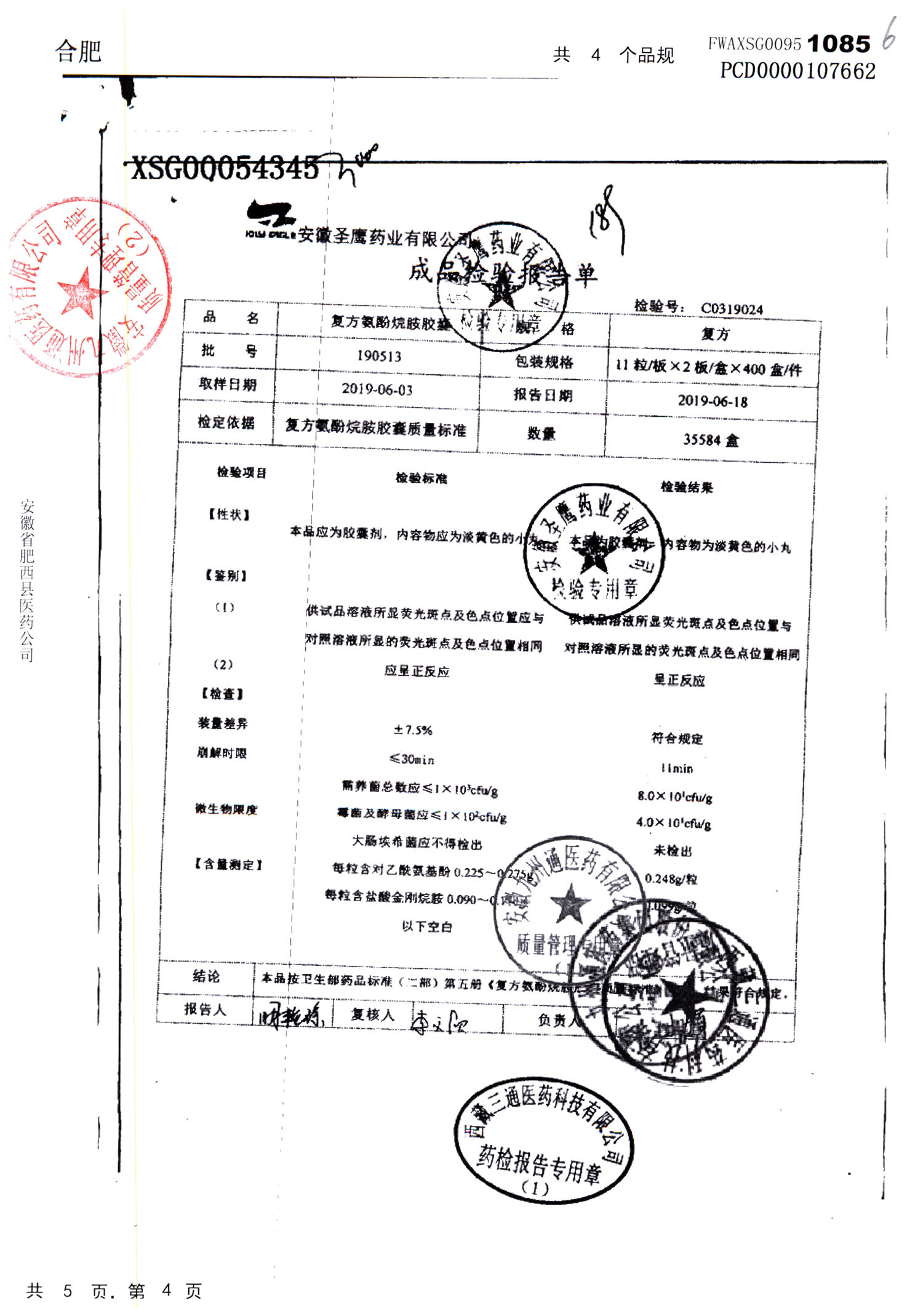 复方氨酚烷胺胶囊 | 22粒 | 190513(1/2) | 查看详情 |