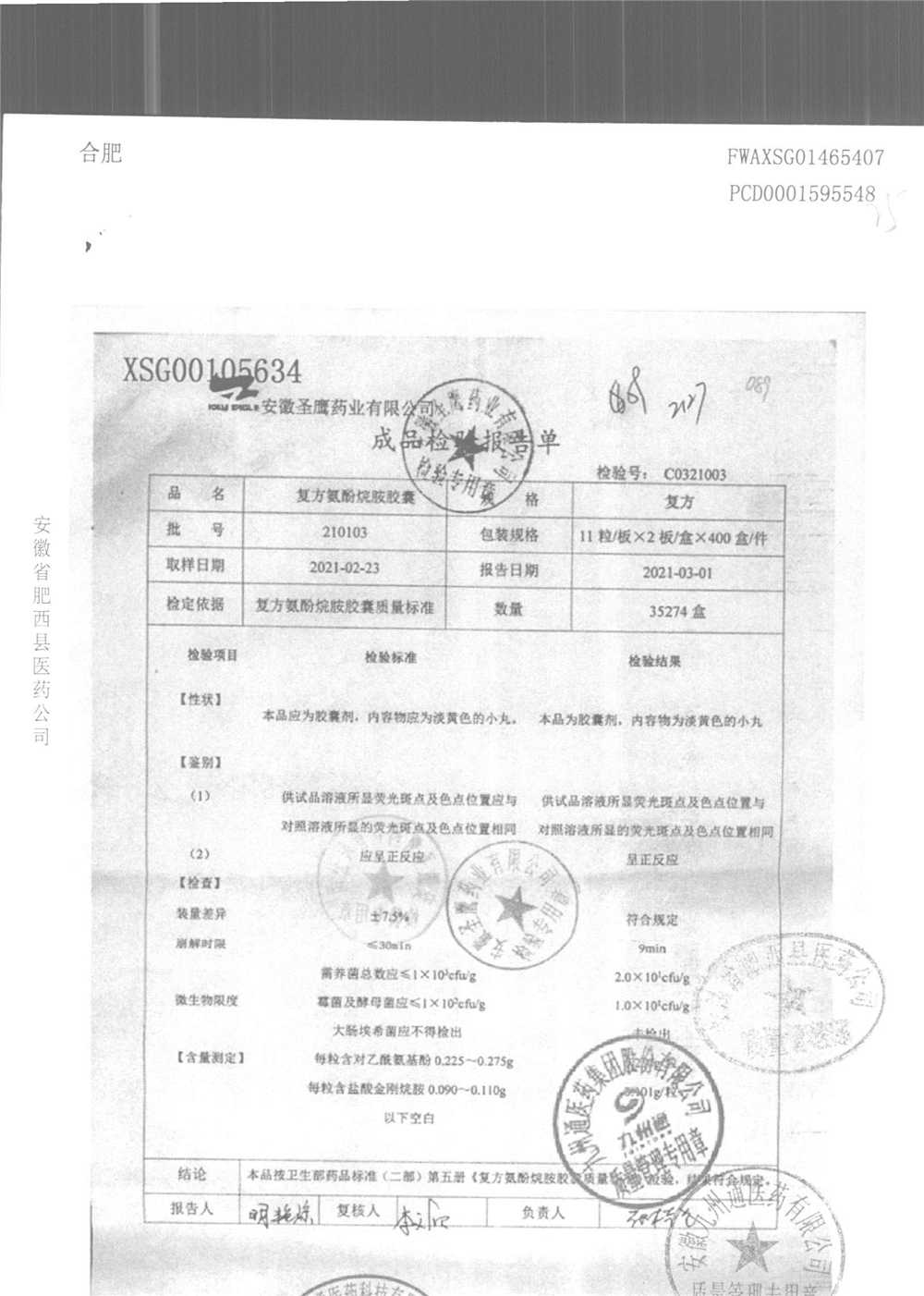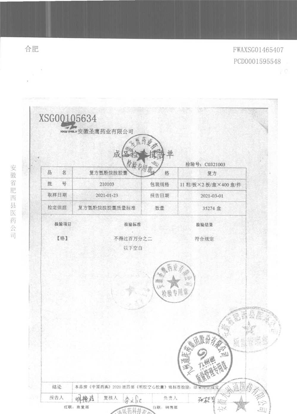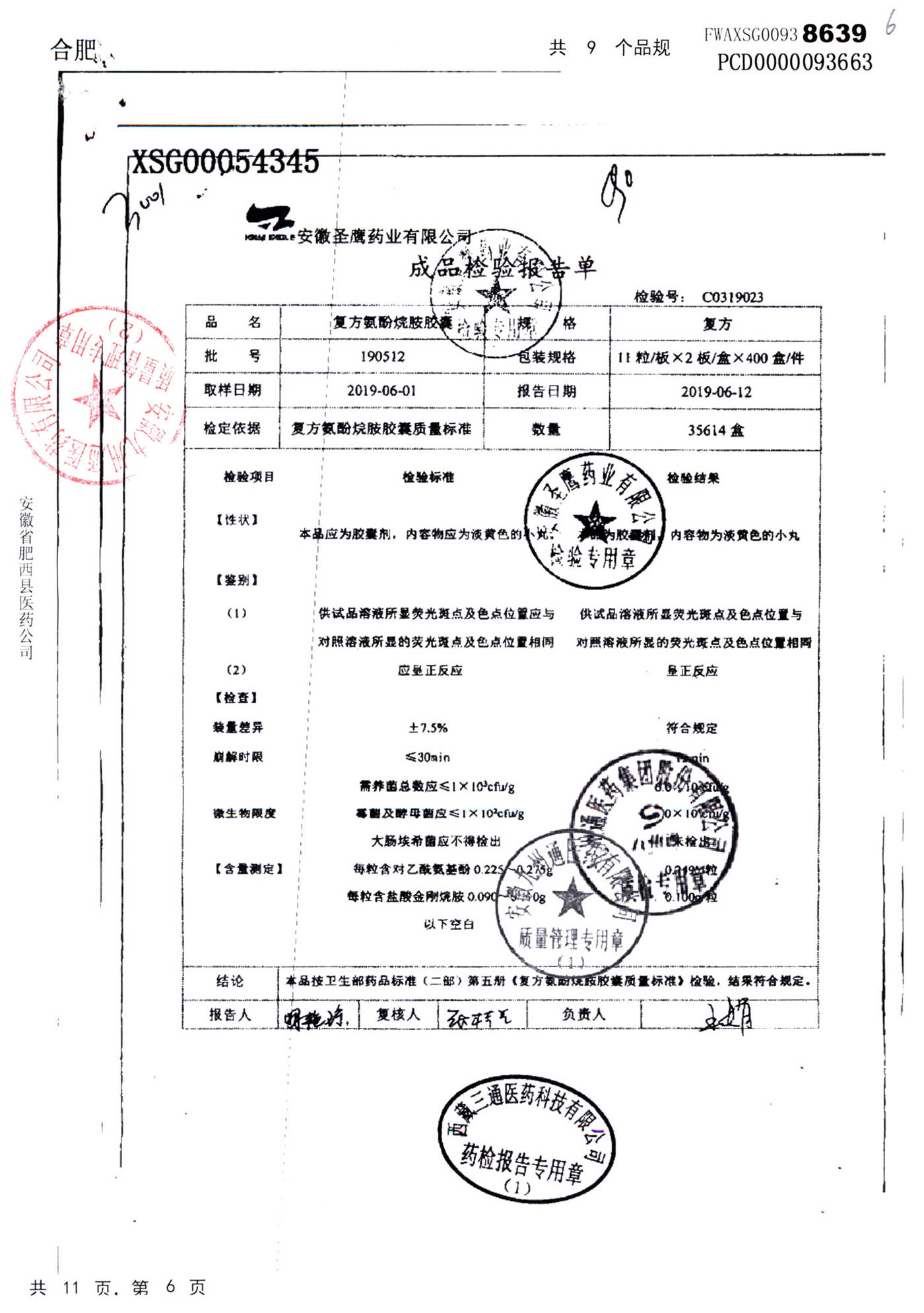 复方氨酚烷胺胶囊 | 22粒 | 190512(1/2) | 查看详情 |