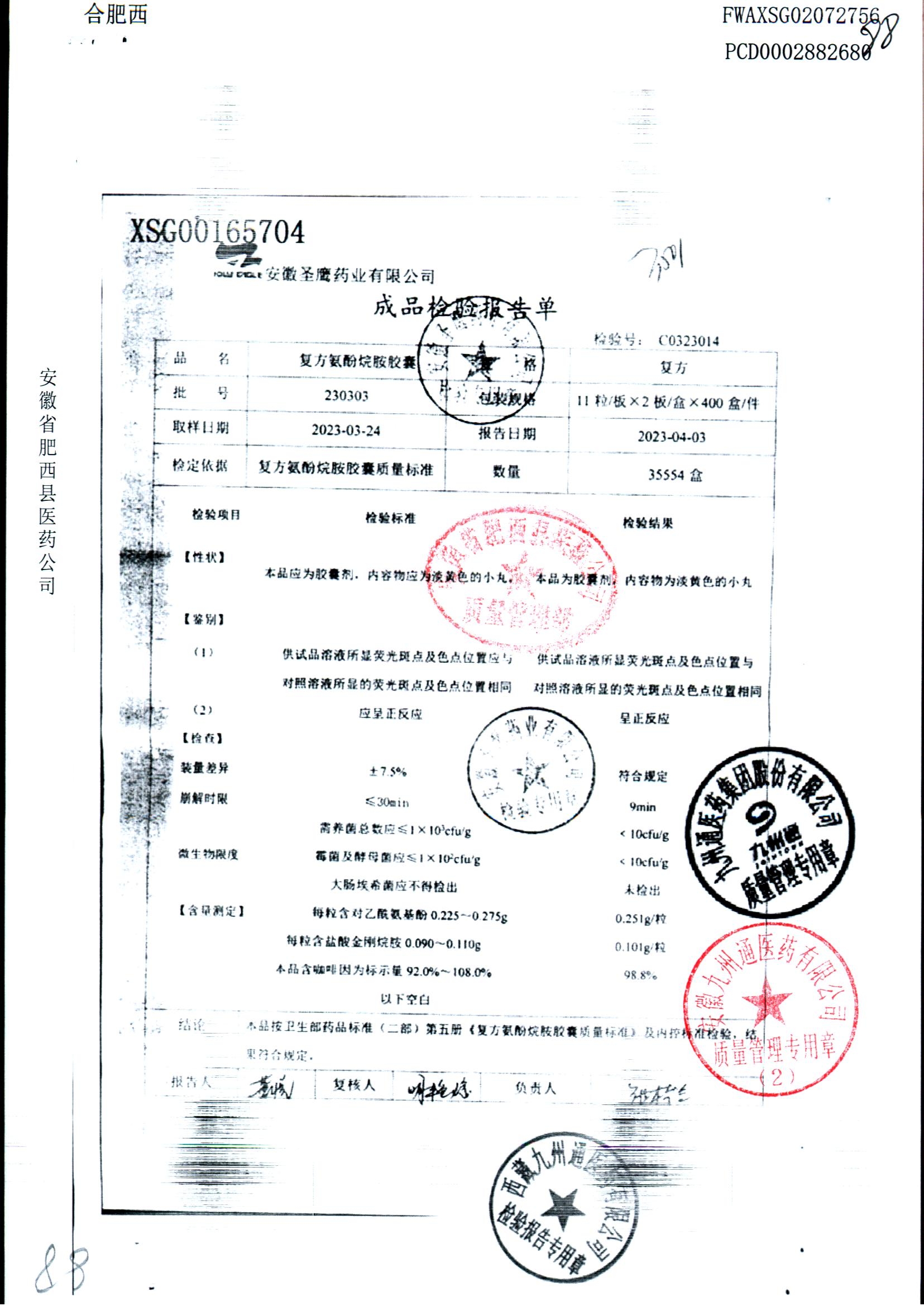 复方氨酚烷胺胶囊 | 22粒 | 230303/1 | 查看详情 |