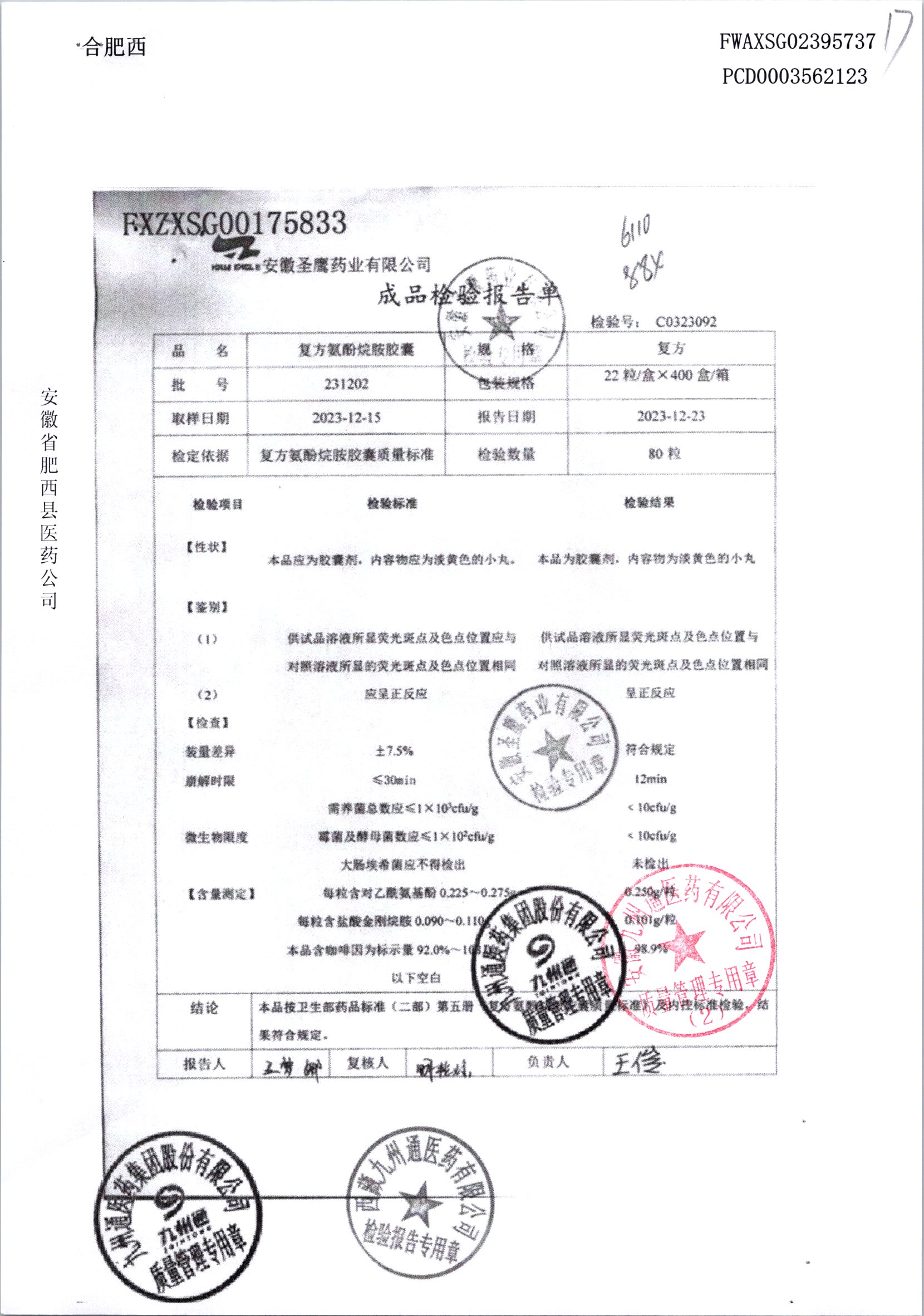 复方氨酚烷胺胶囊 | 22粒 | 231202/2 | 查看详情 |