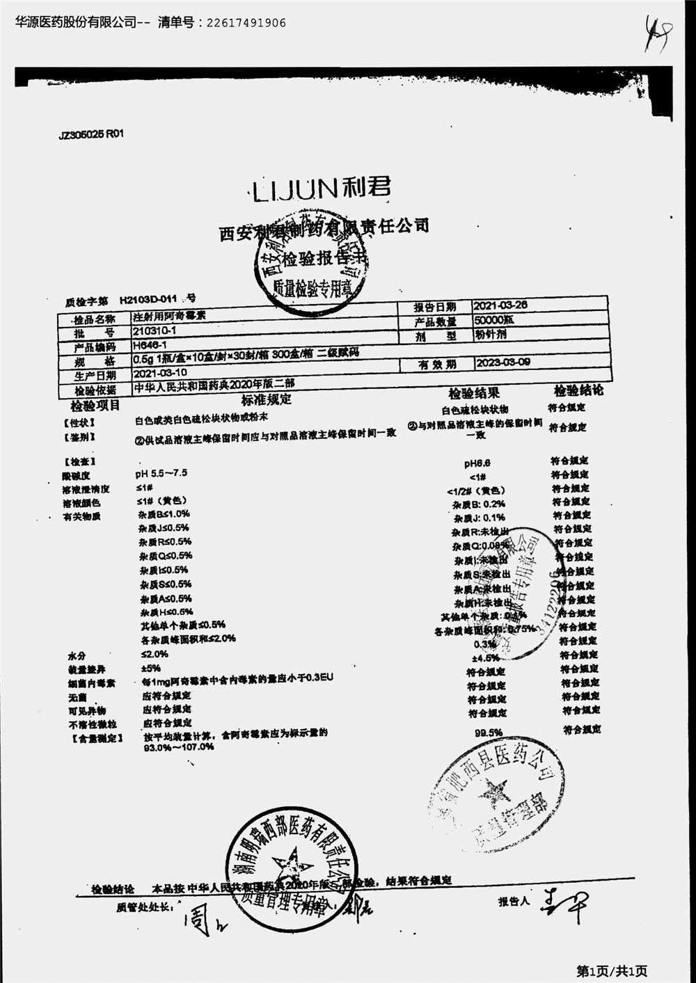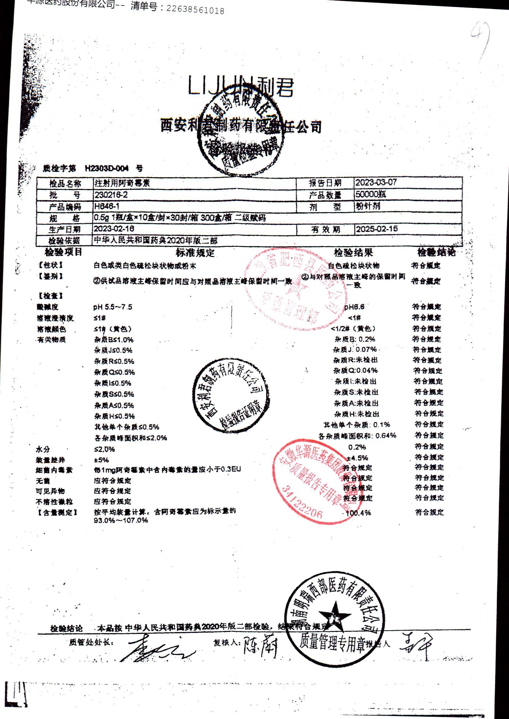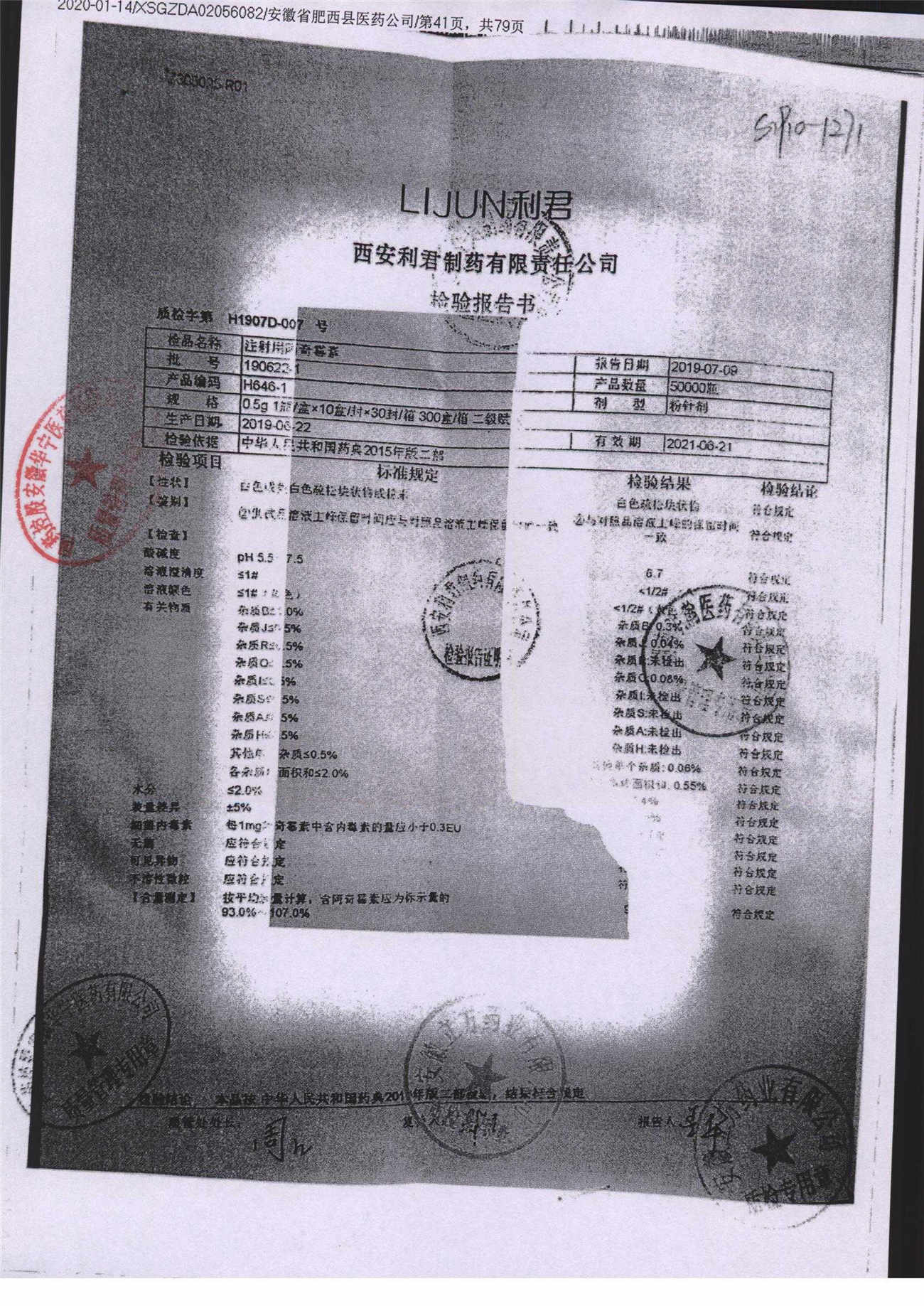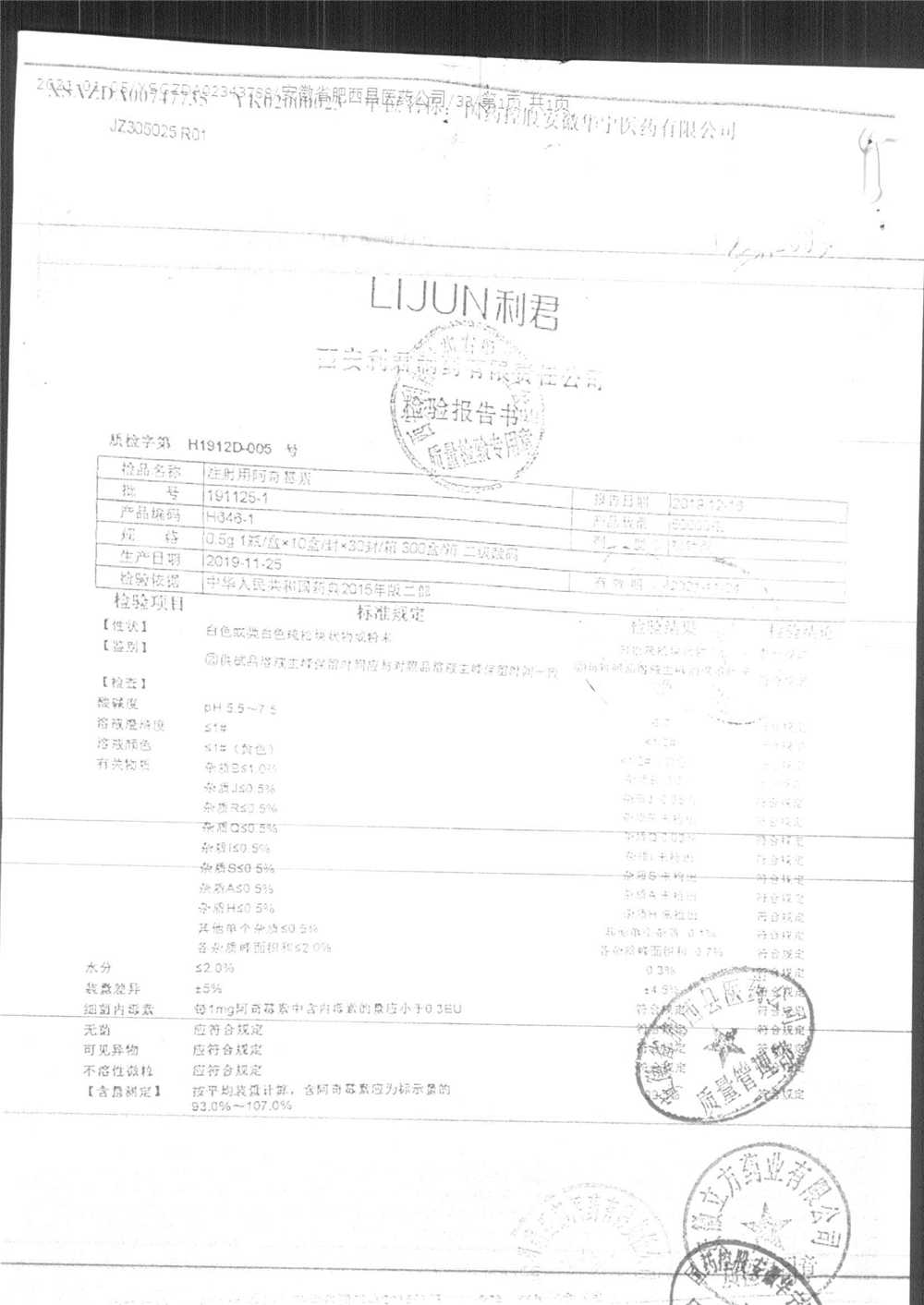 注射用阿奇霉素 | 0.5g | 190609-1 | 查看详情 |
