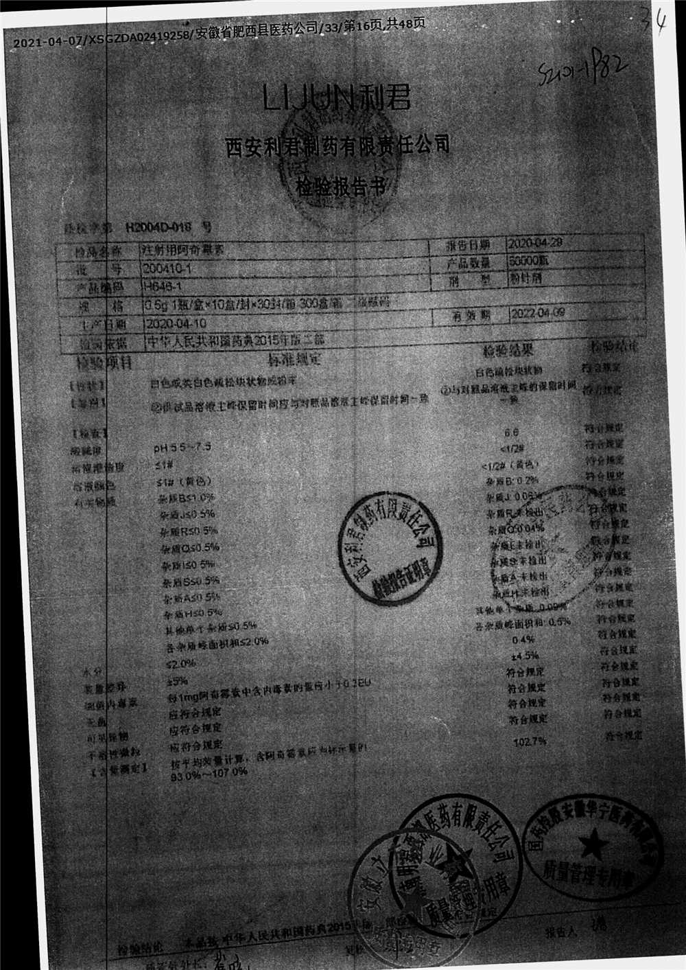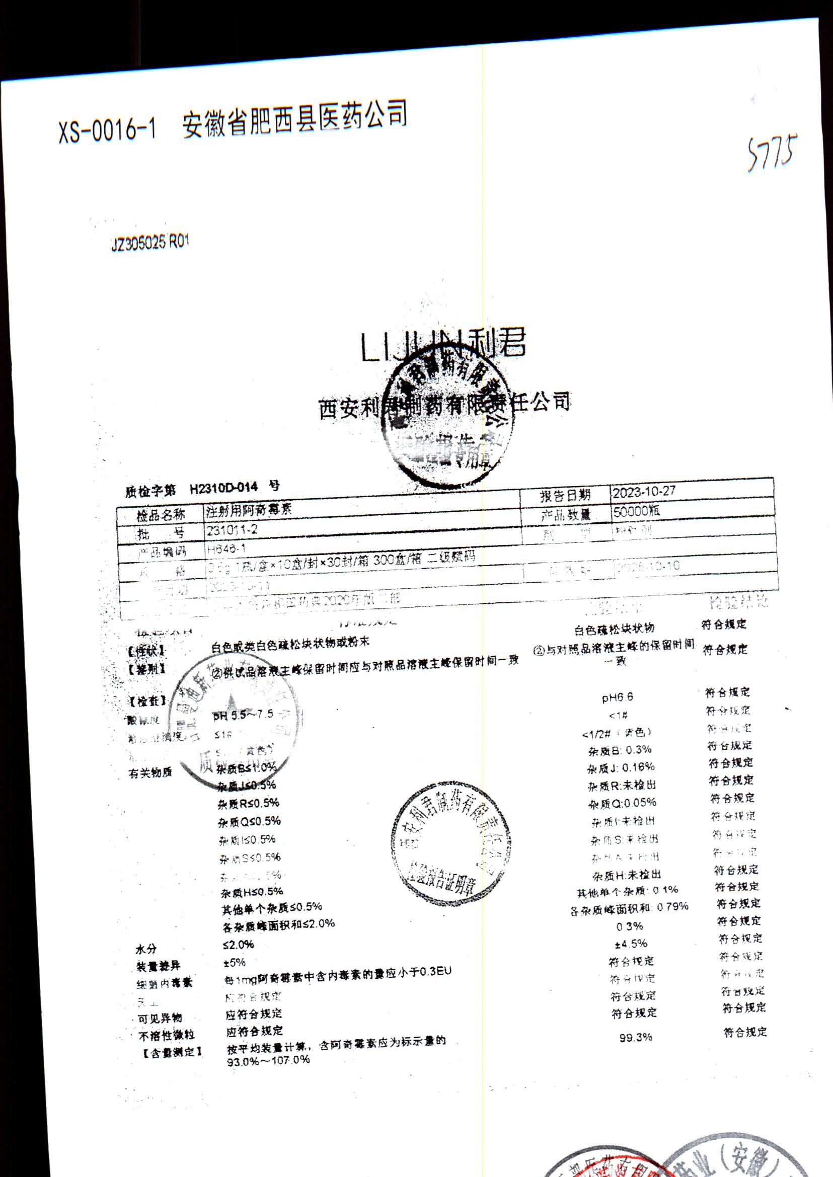 注射用阿奇霉素 | 0.5g | 190108-2 | 查看详情 |
