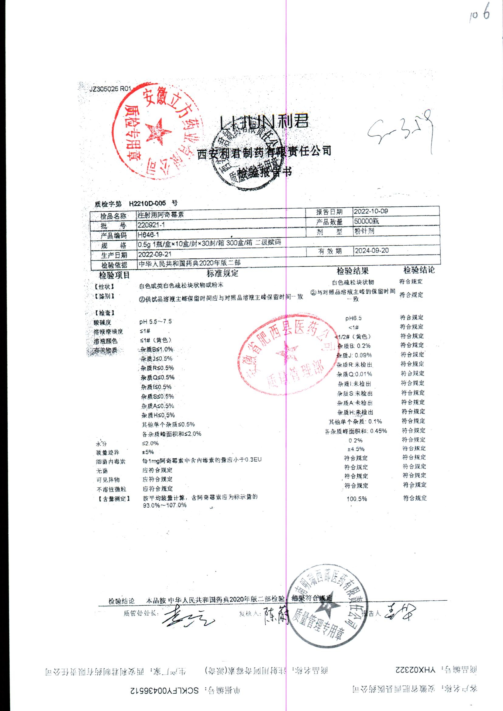 注射用阿奇霉素 | 0.5g | 220921-1 | 查看详情 |