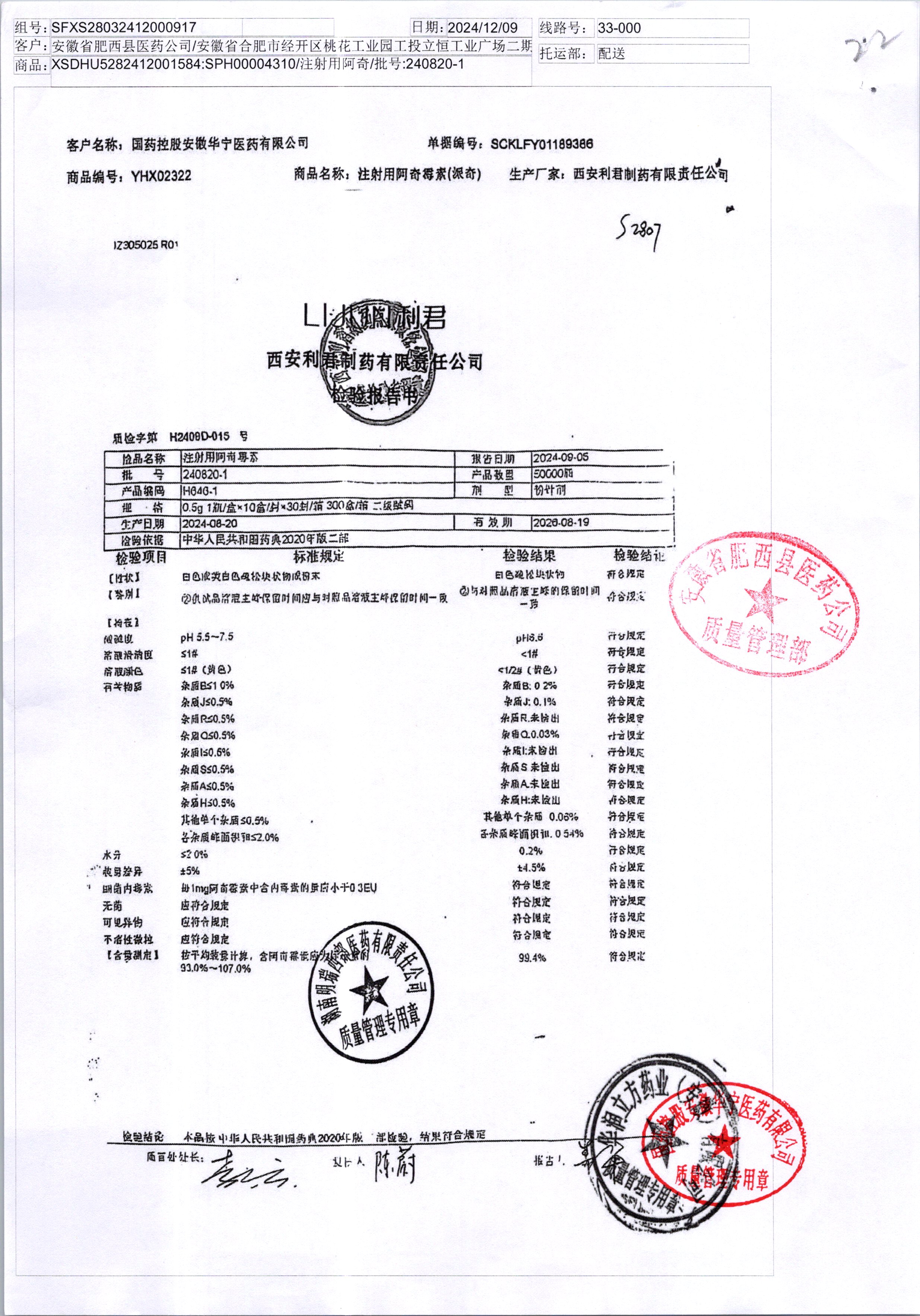 注射用阿奇霉素 | 0.5g | 240820-1 | 查看详情 |