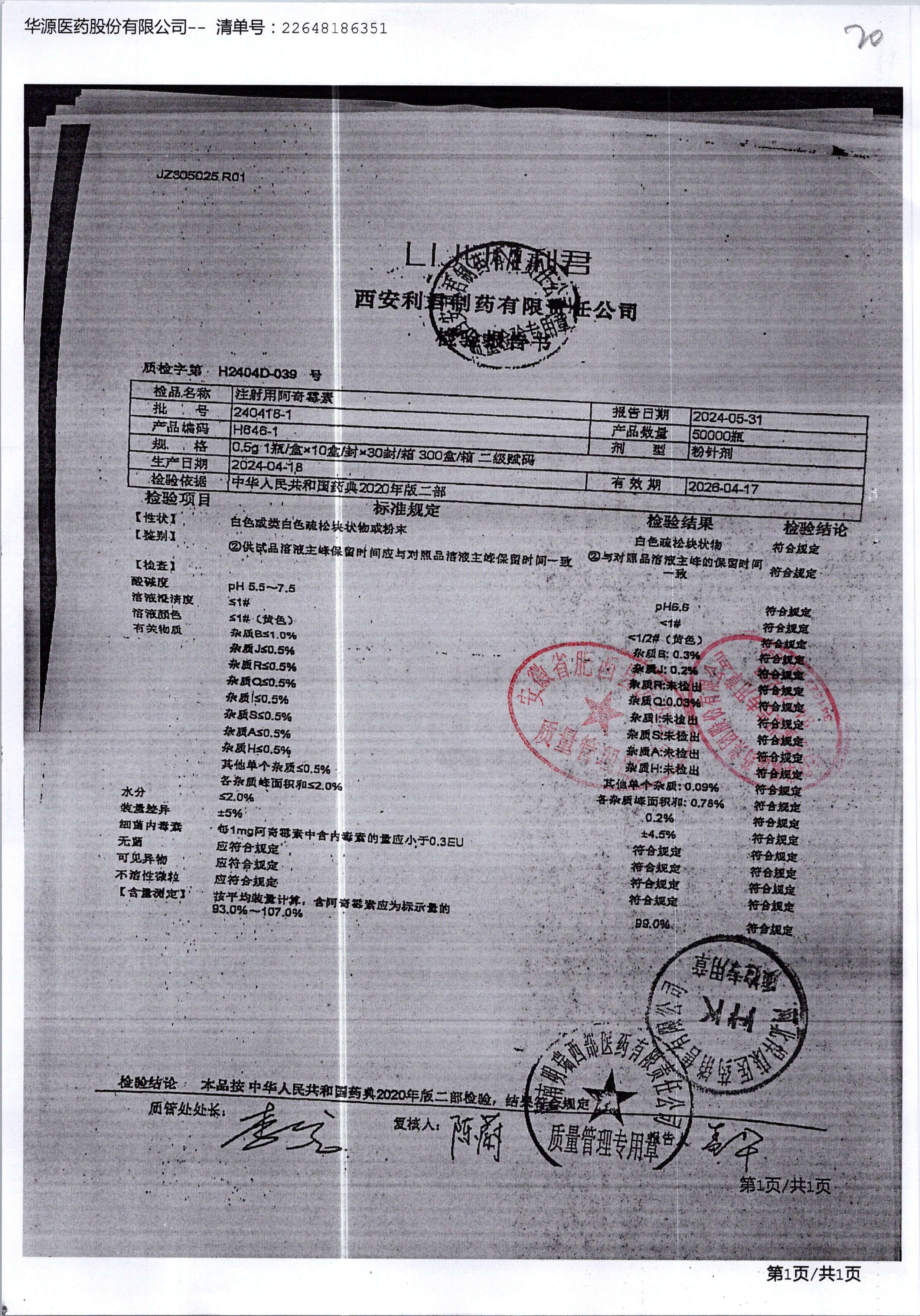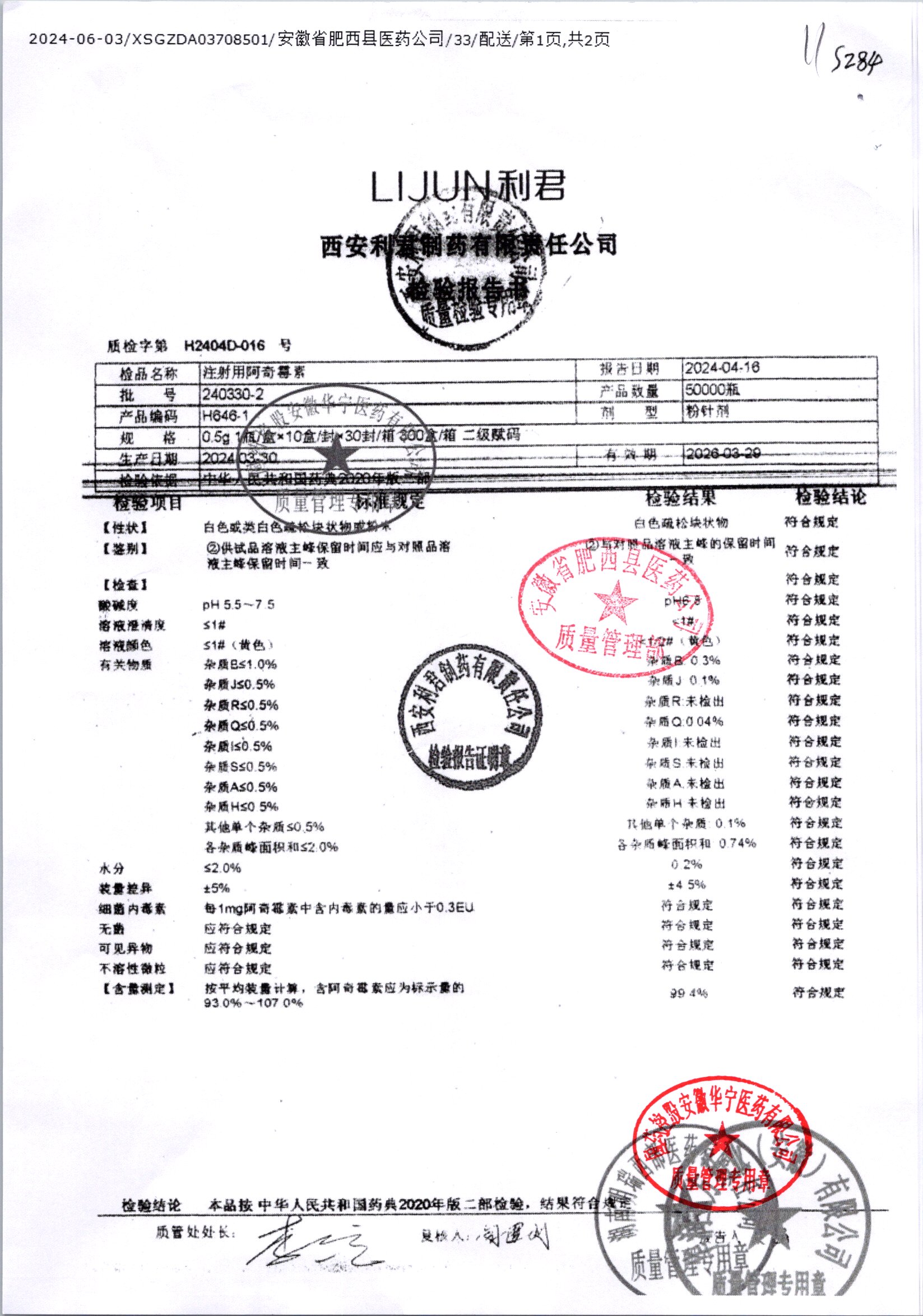 注射用阿奇霉素 | 0.5g | 240418-1 | 查看详情 |