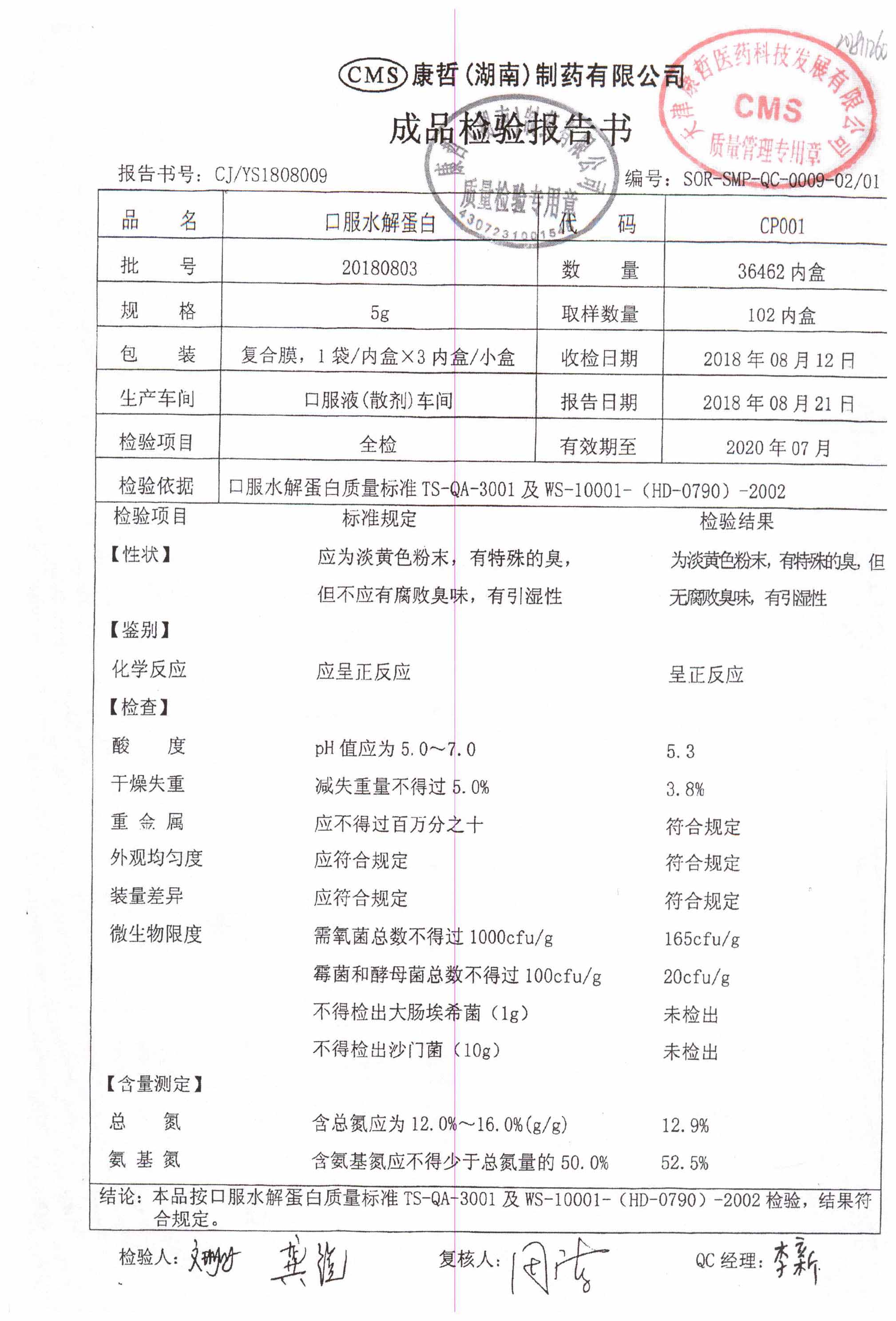 口服水解蛋白 | 5g*1袋 | 20180803 | 查看详情 |