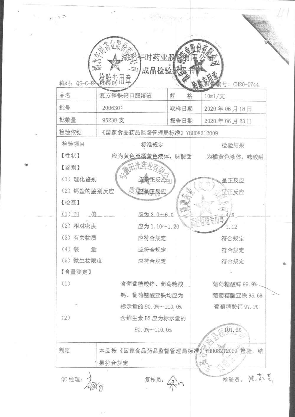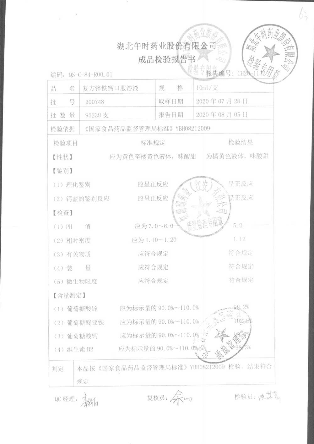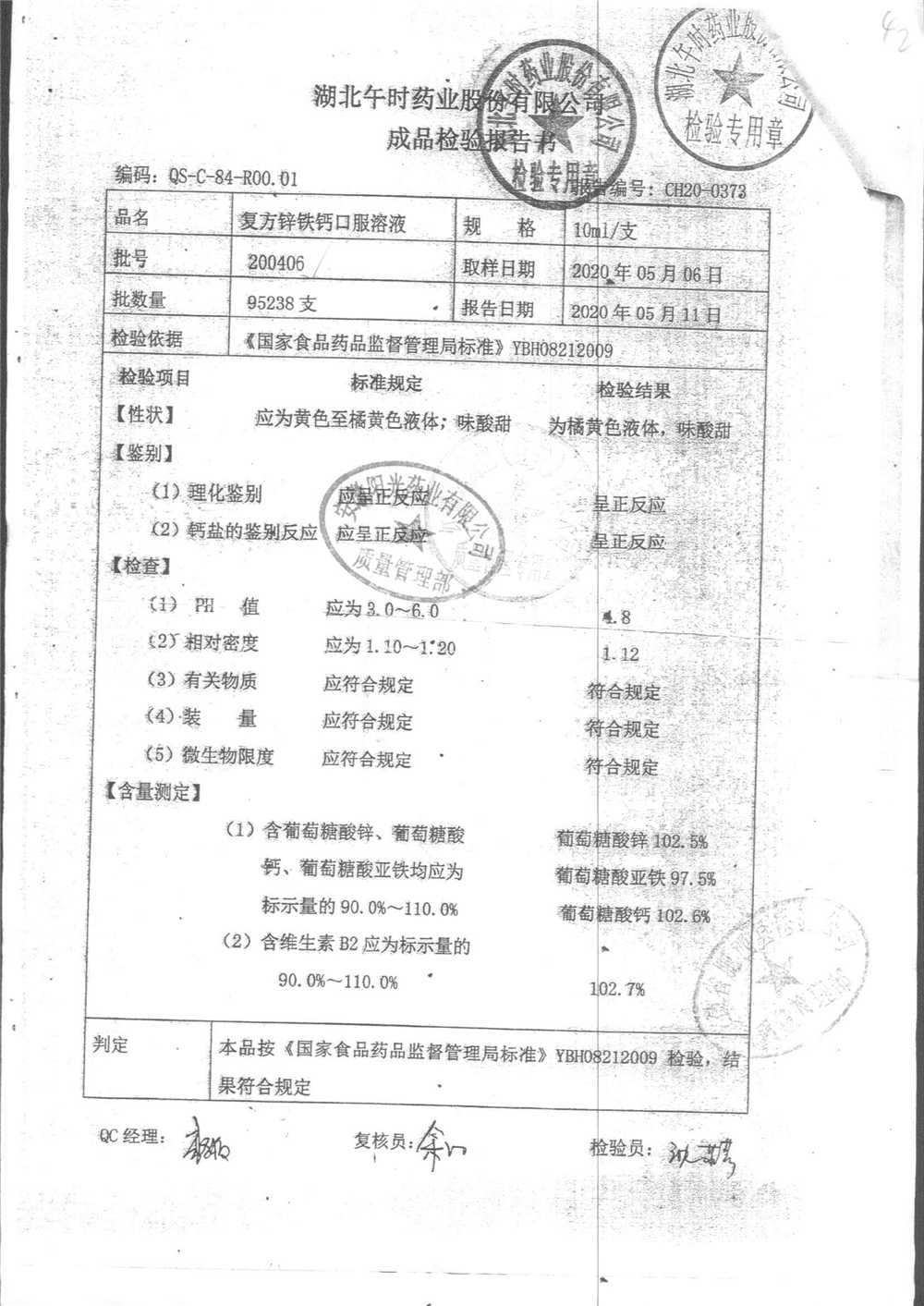 | 复方锌铁钙口服溶液 | 10ml*12支 | 201107 | 查看详情 |