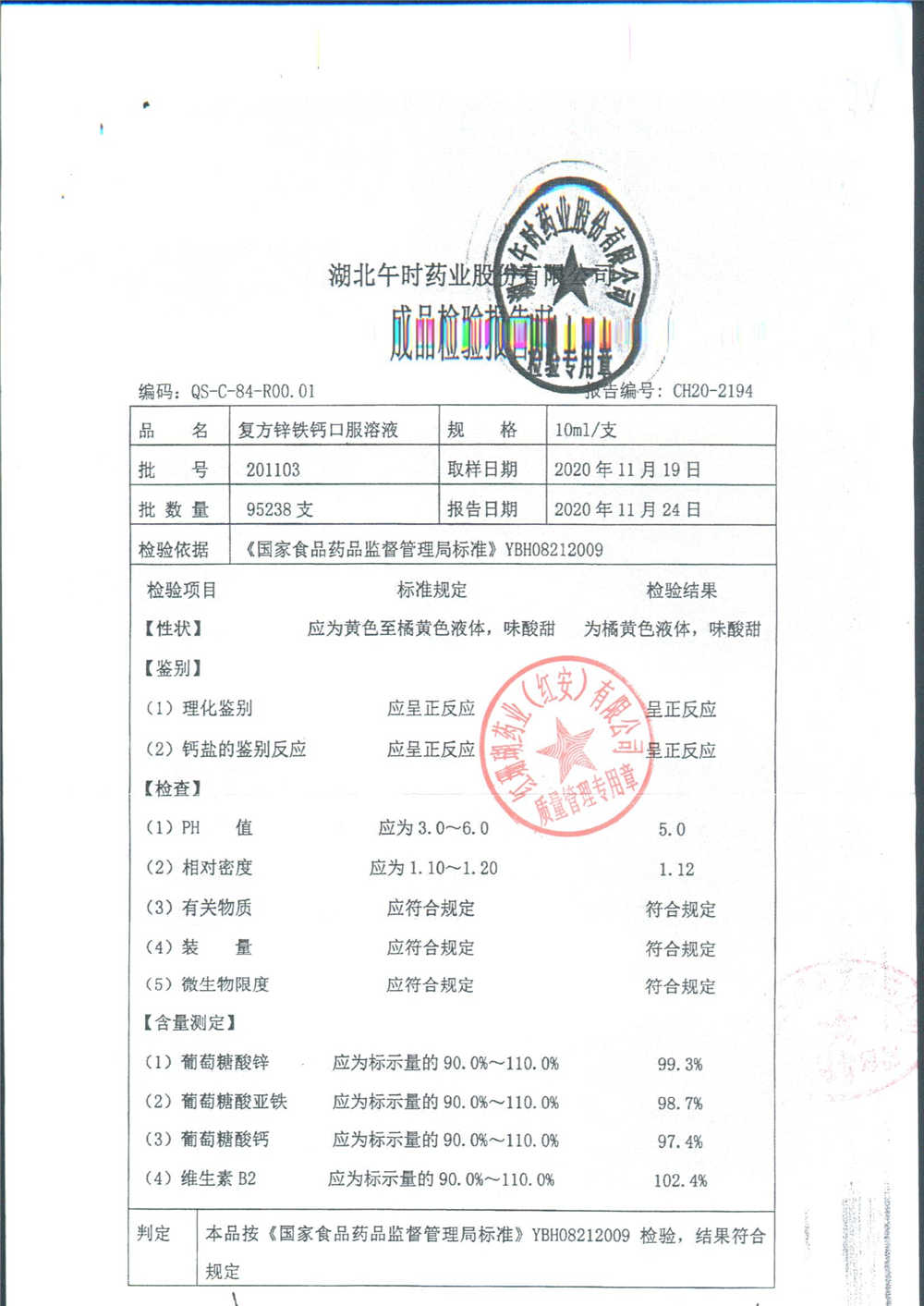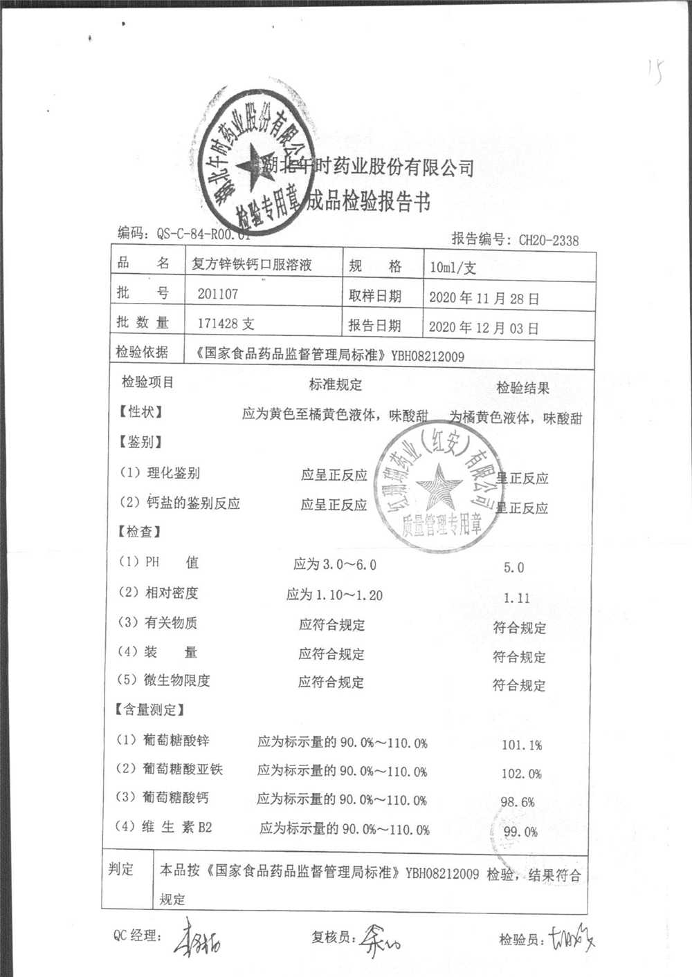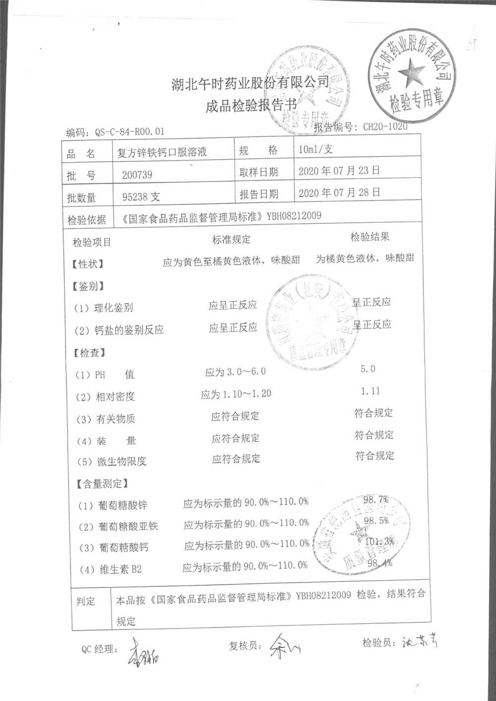 | 复方锌铁钙口服溶液 | 10ml*12支 | 201107 | 查看详情 |