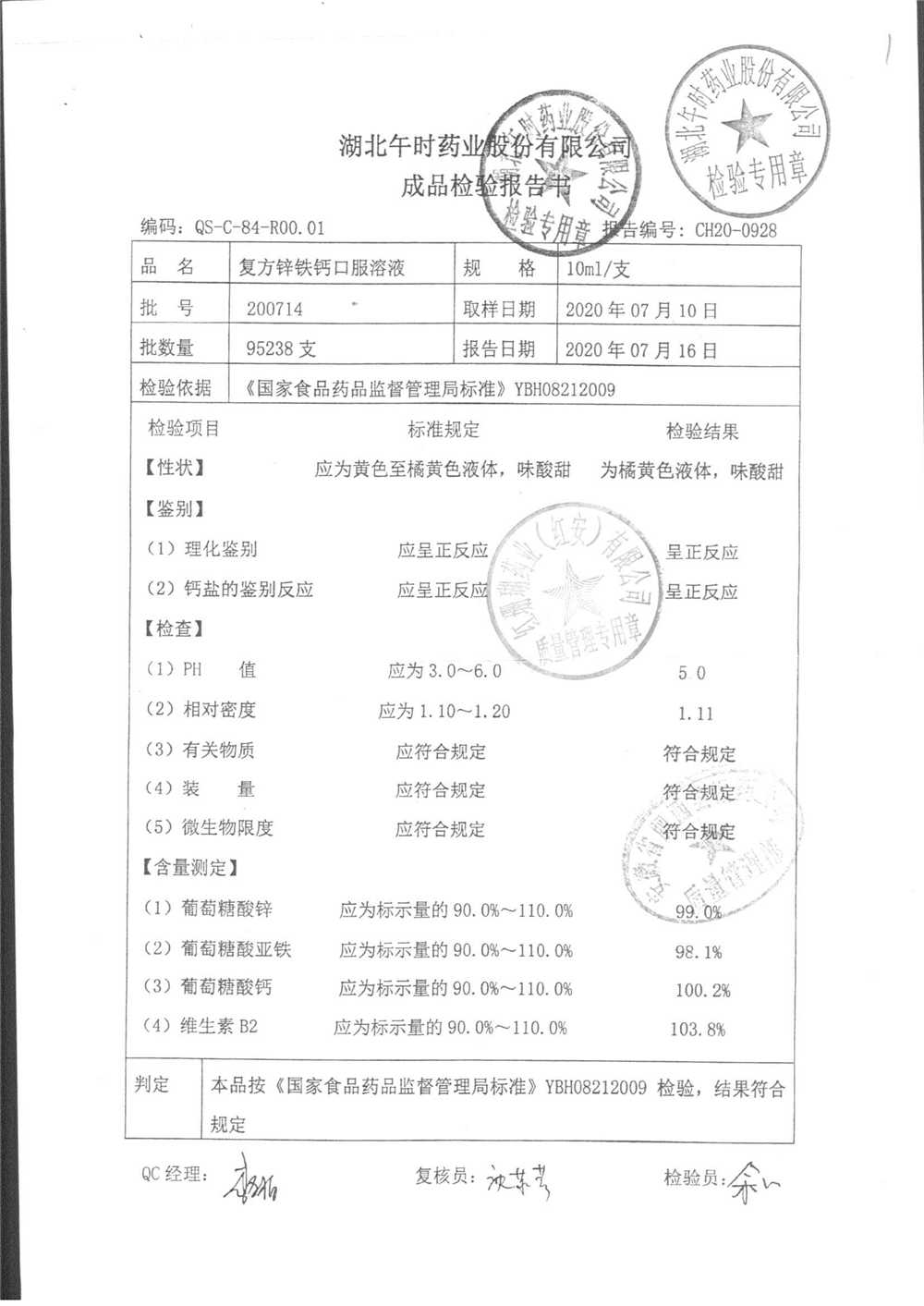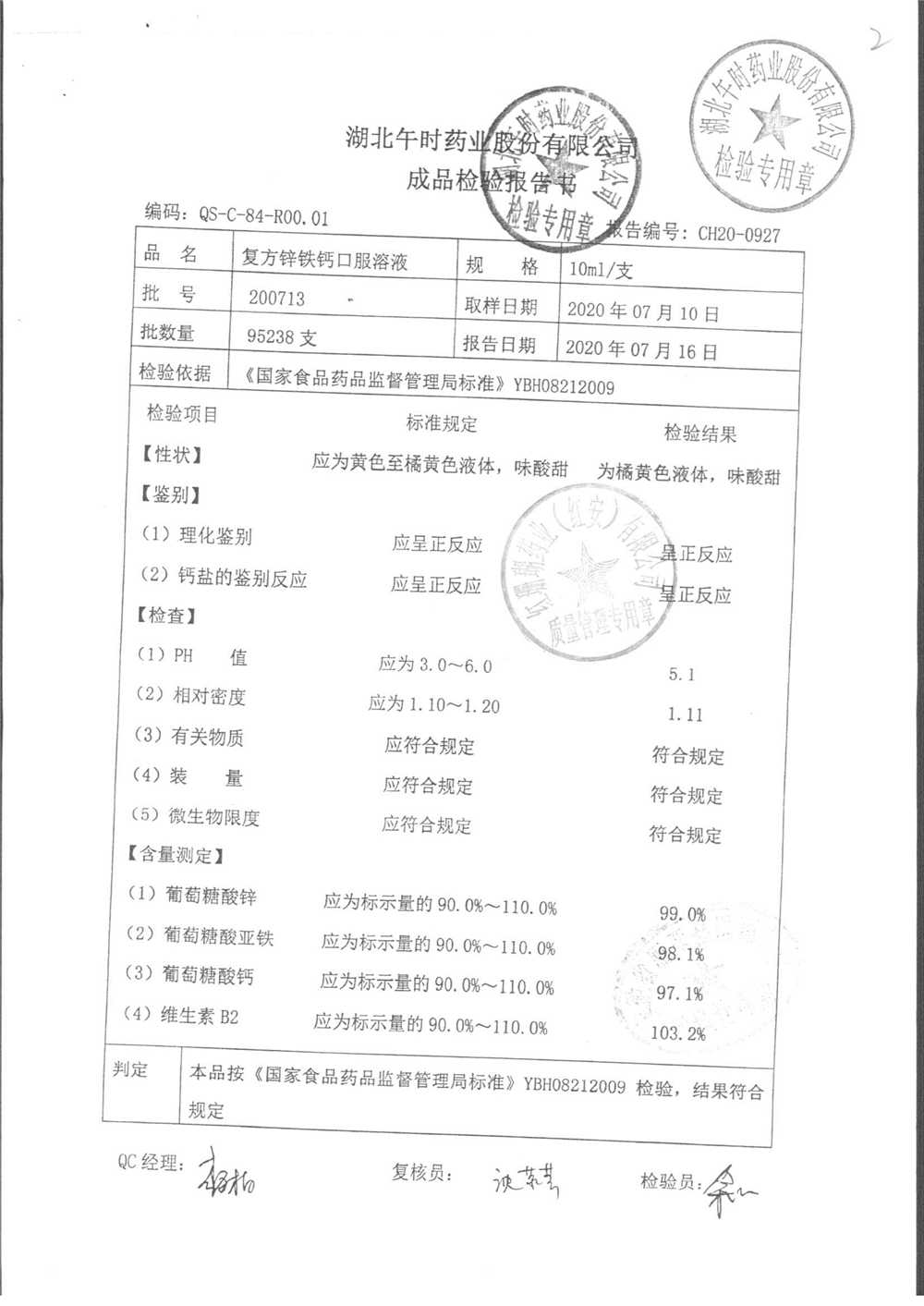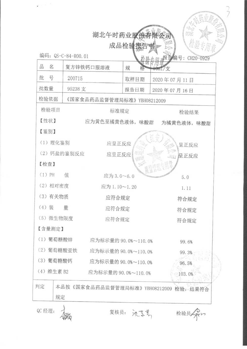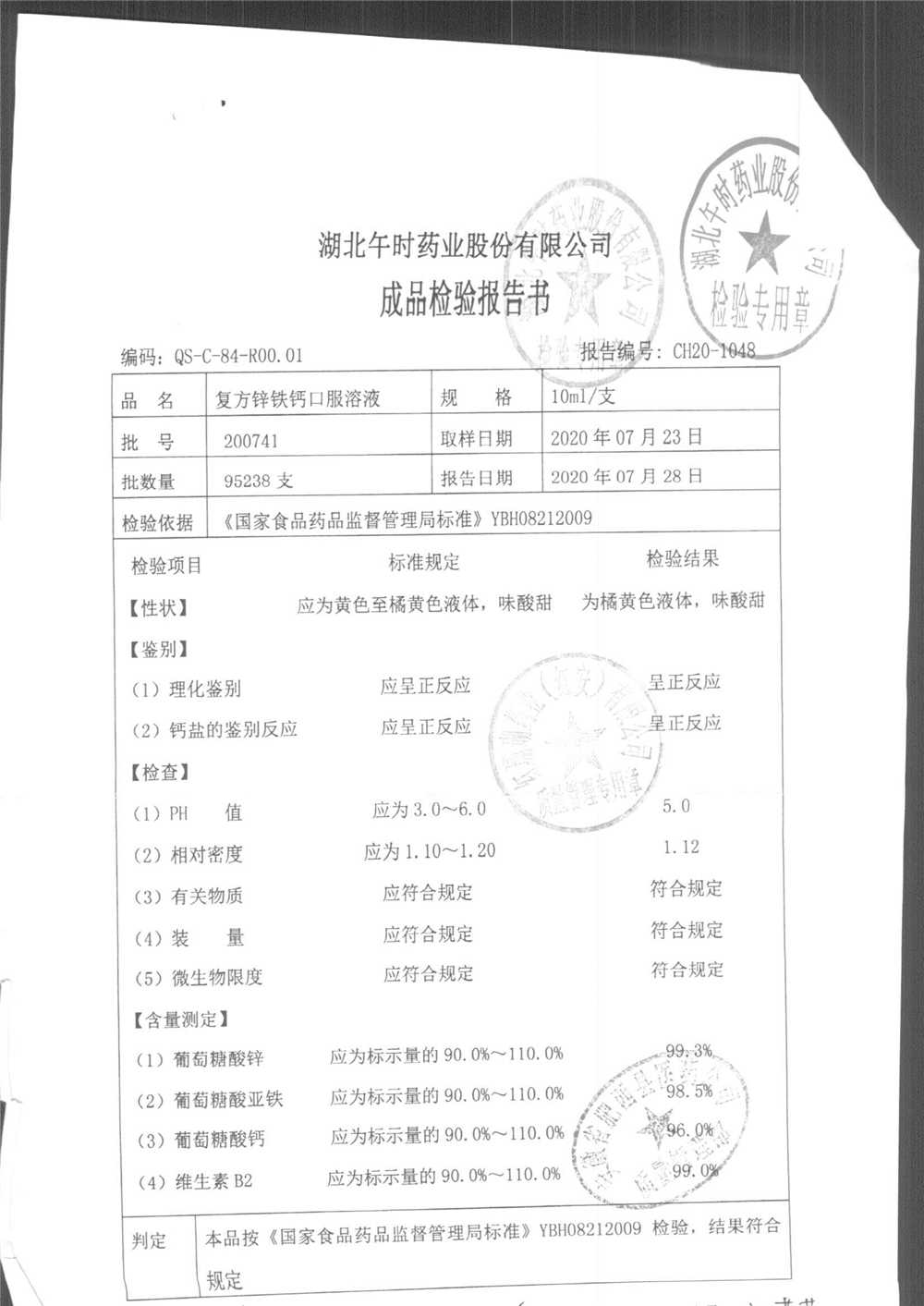 | 复方锌铁钙口服溶液 | 10ml*12支 | 200715 | 查看详情 |