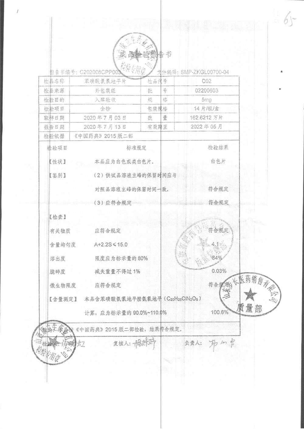 药检报告