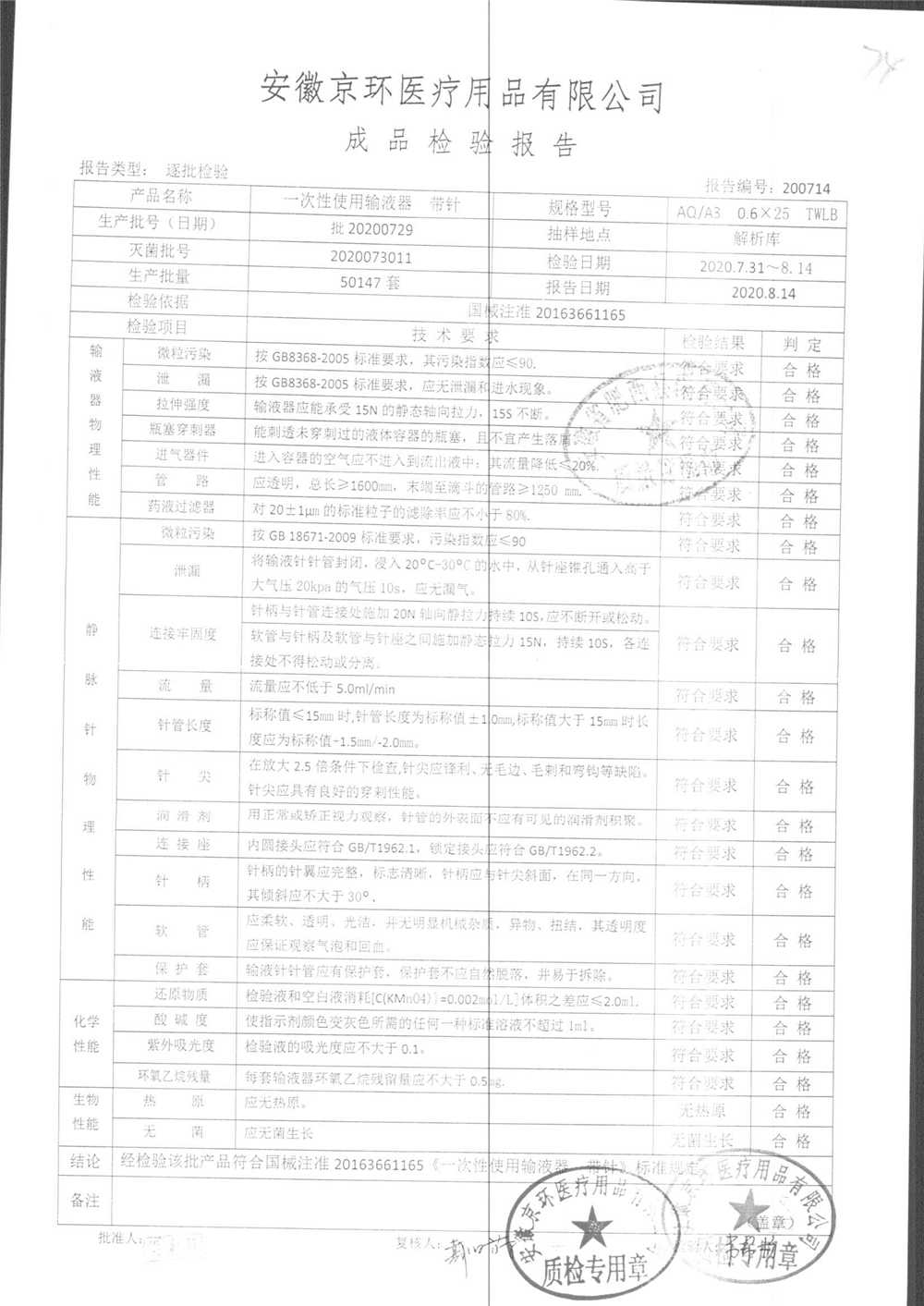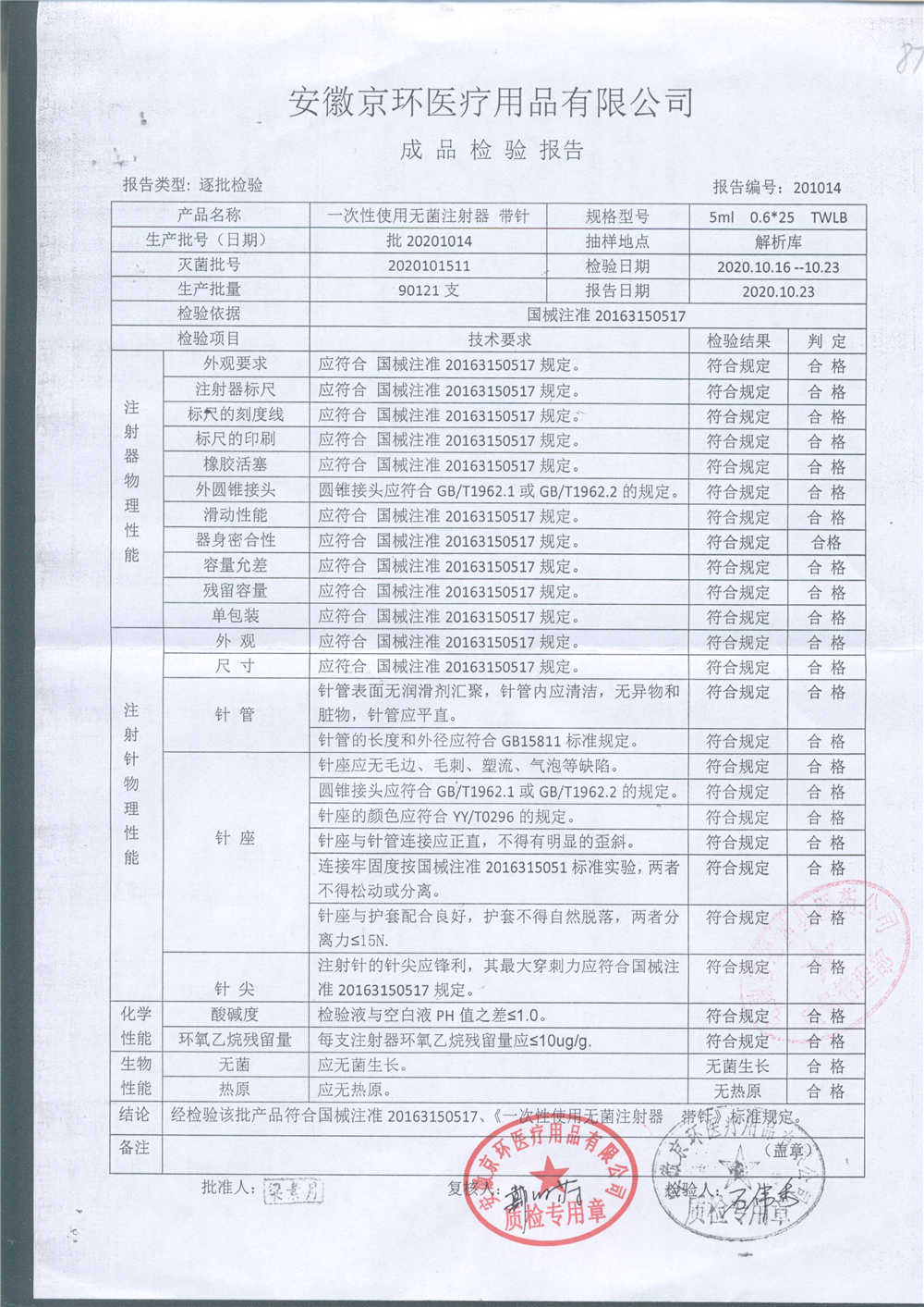 | 一次性使用无菌注射器 带针 | 0.6*25 | 批20201014 | 查看详情 |