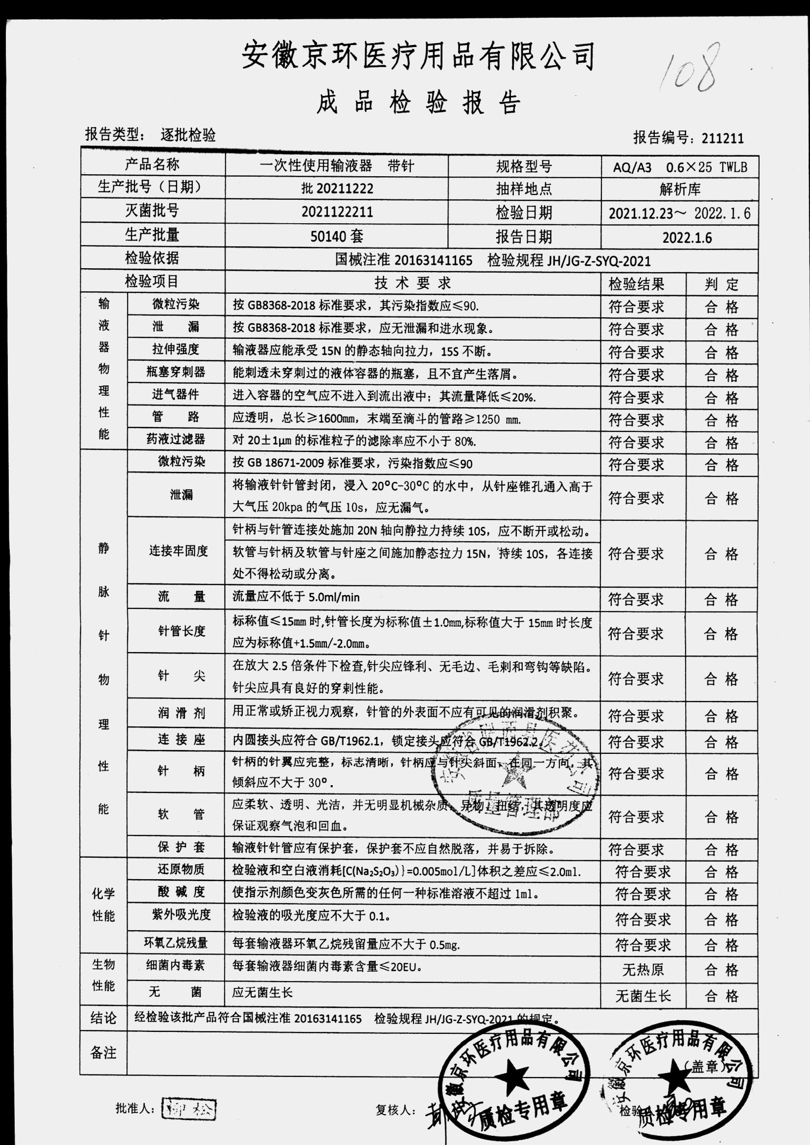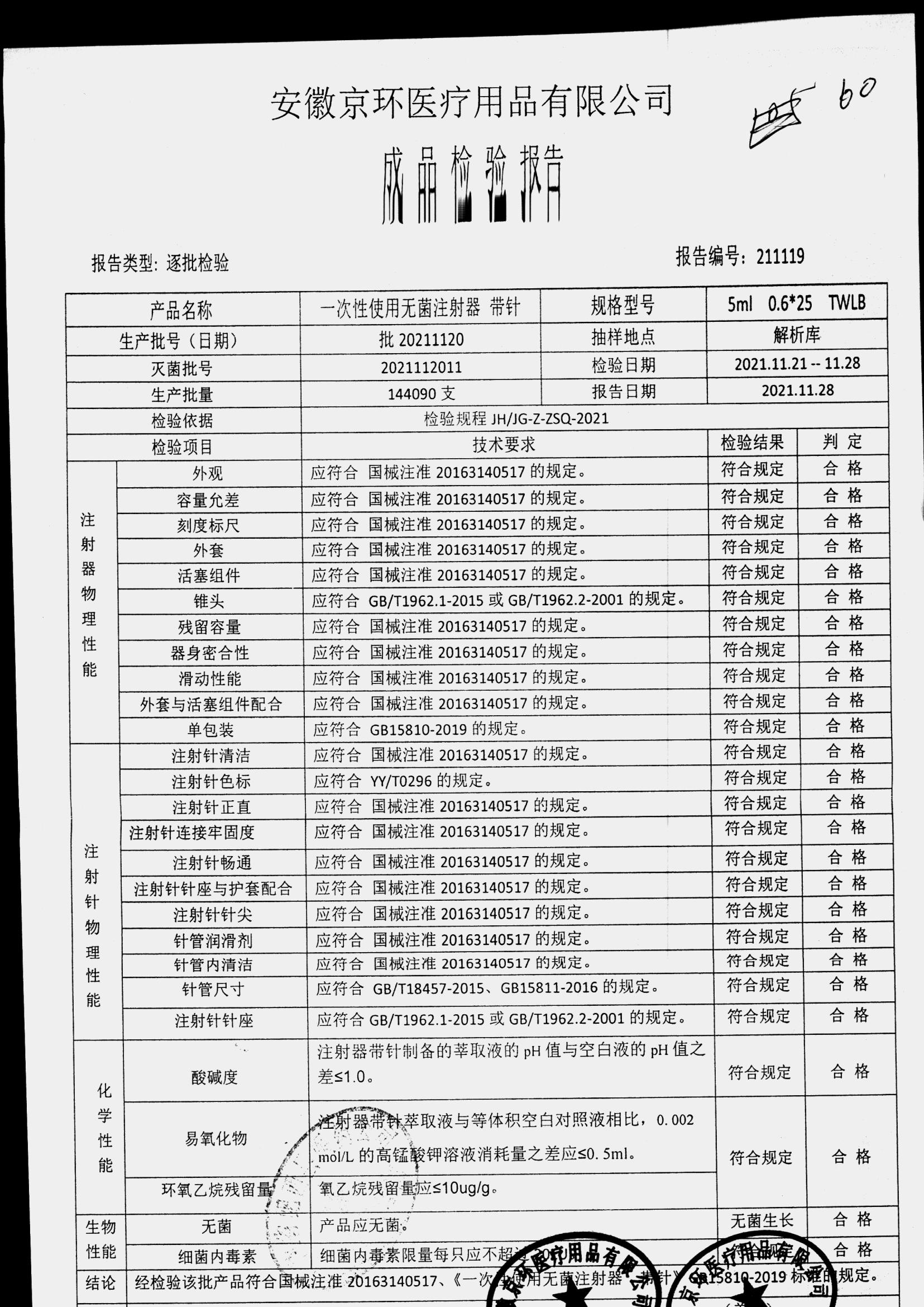 | 一次性使用无菌注射器 带针 | 0.6*25 | 批20211222 | 查看详情 |