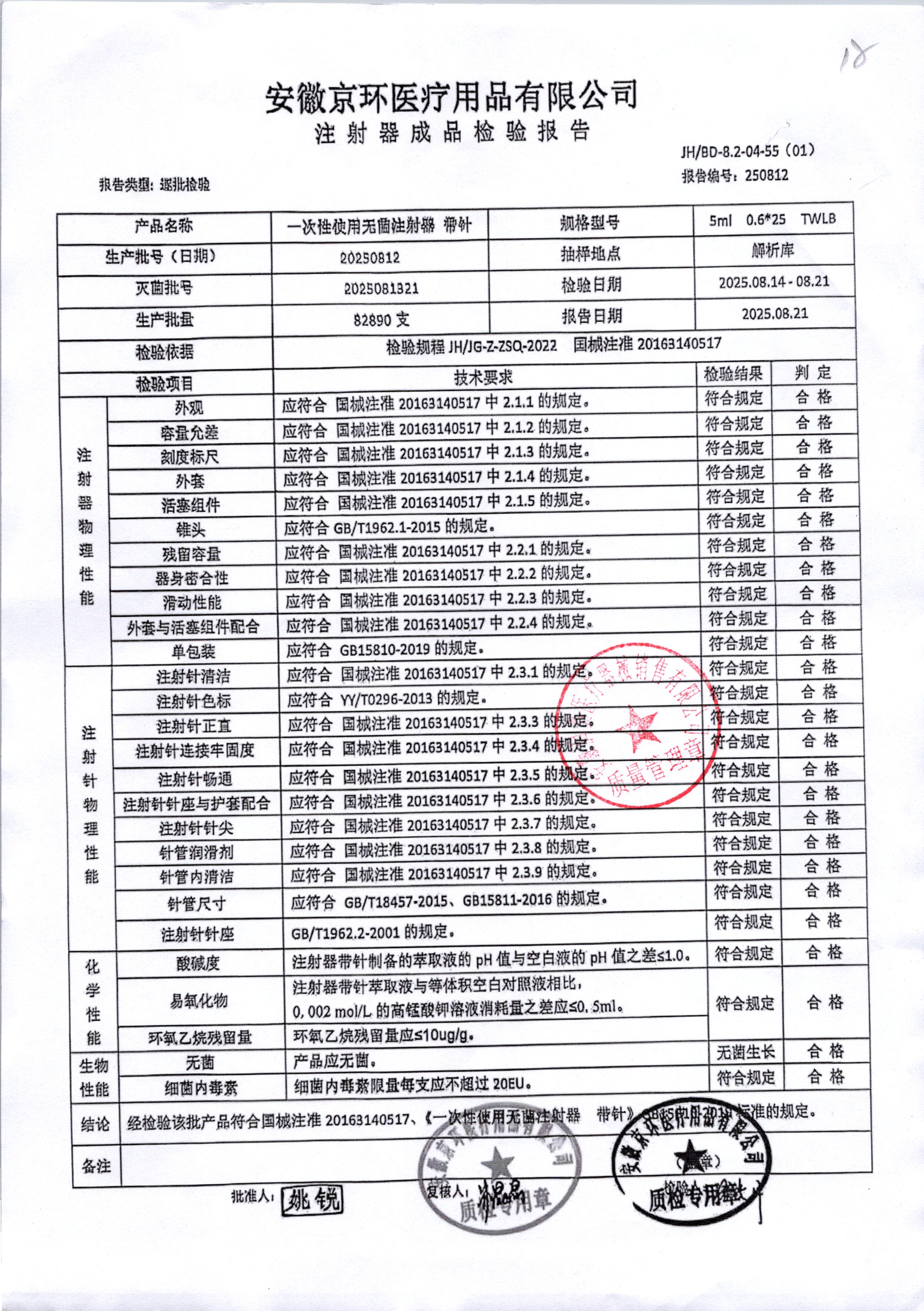 | 一次性使用无菌注射器 带针 | 0.6*25 | 20250812 | 查看详情 |