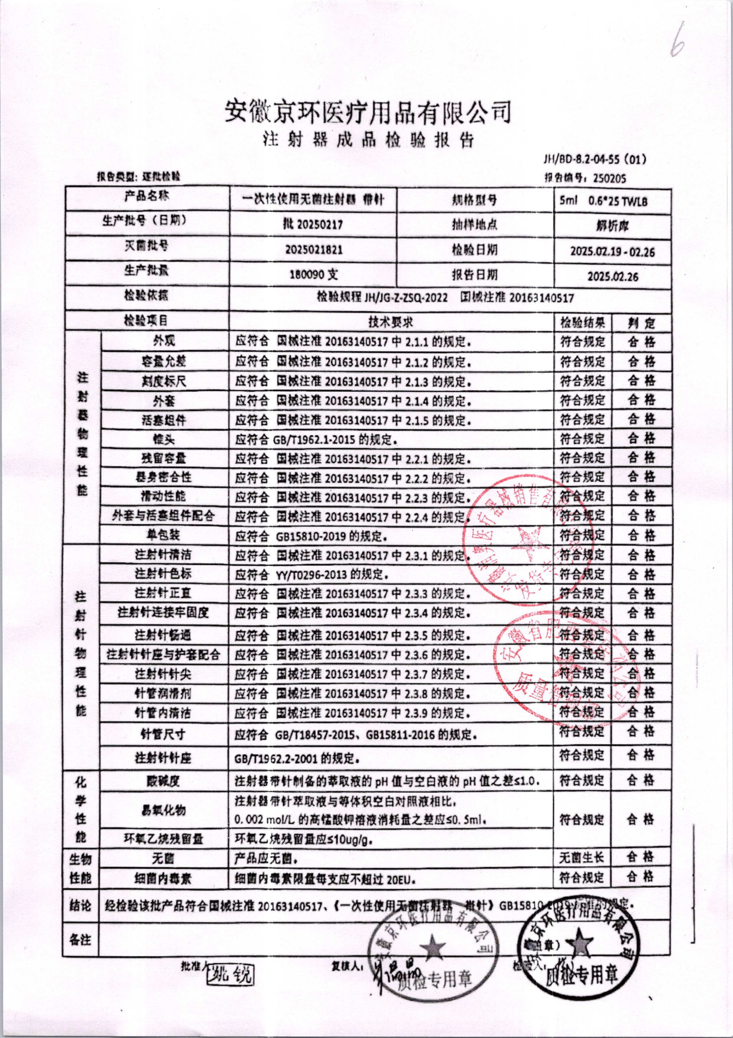 | 一次性使用无菌注射器 带针 | 0.6*25 | 批20250217 | 查看详情 |