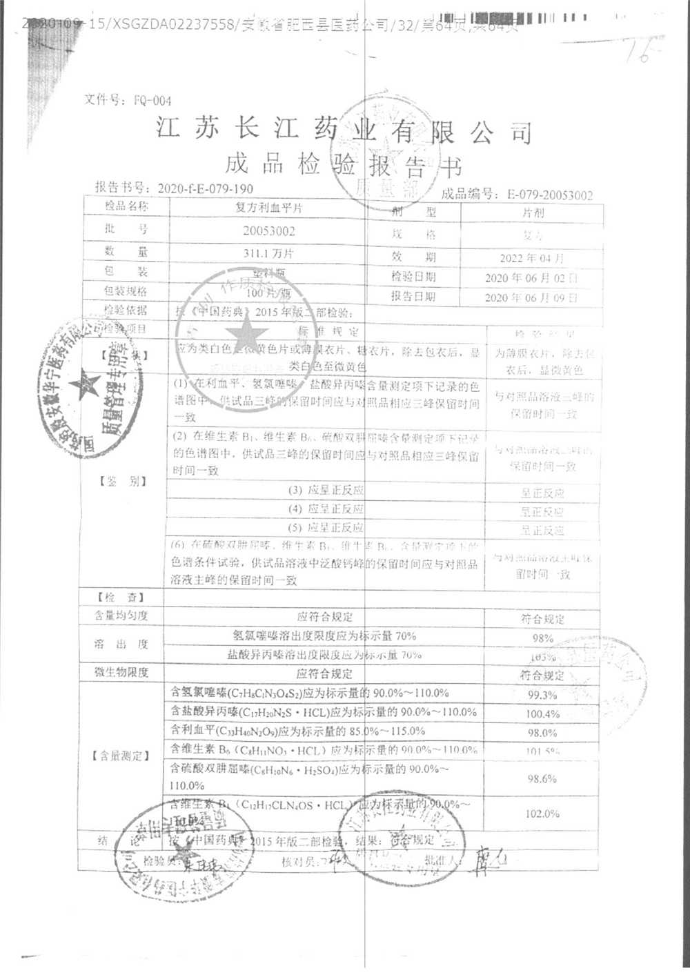| 复方利血平片 | 复方*100片 | 22052001 | 查看详情 |