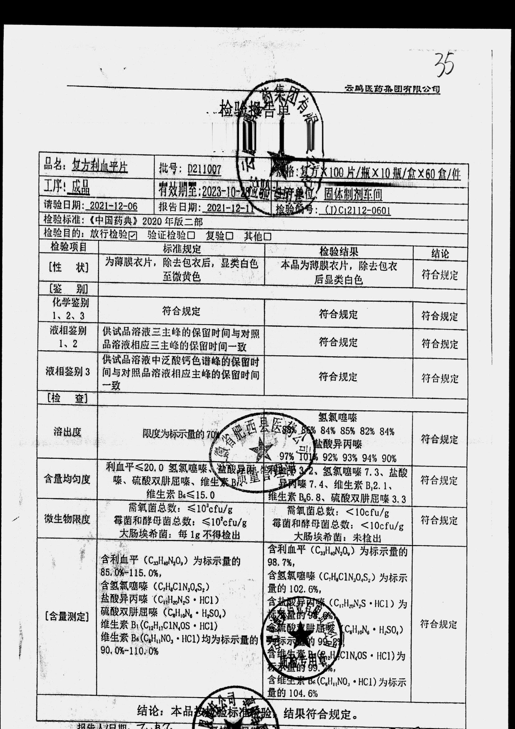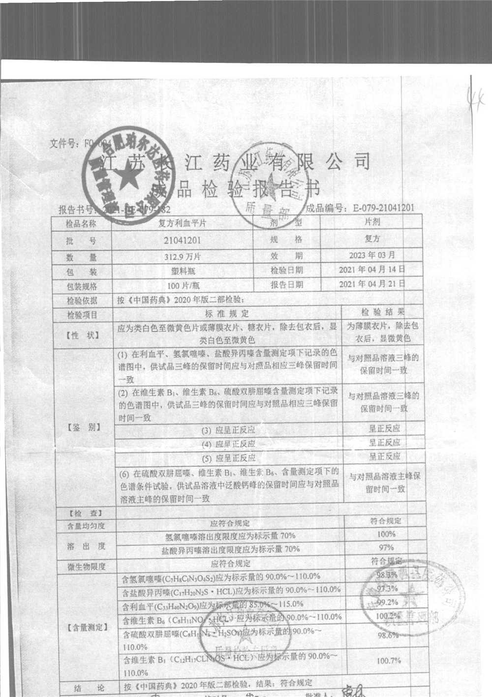 | 复方利血平片 | 复方*100片 | 21041201 | 查看详情 |