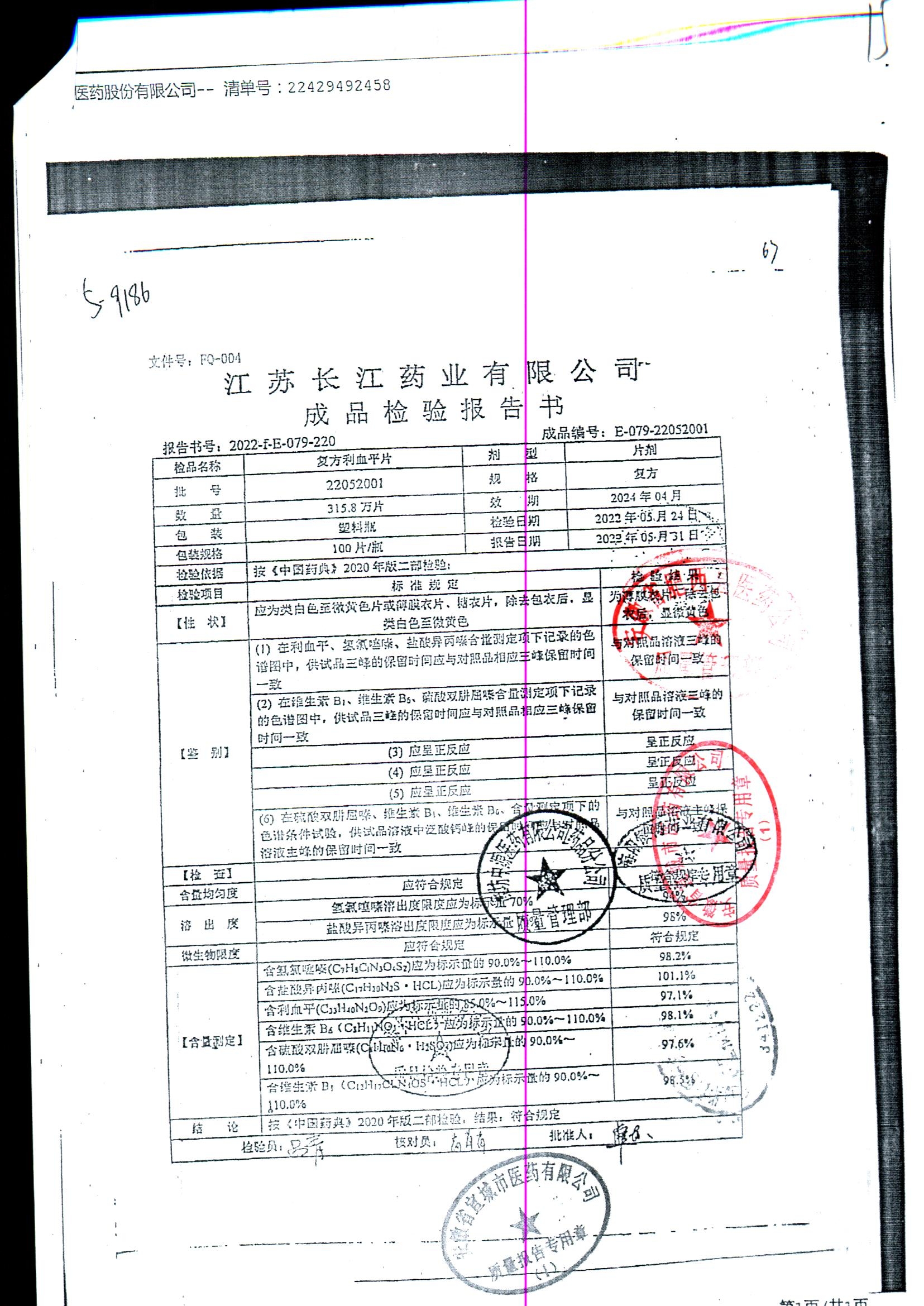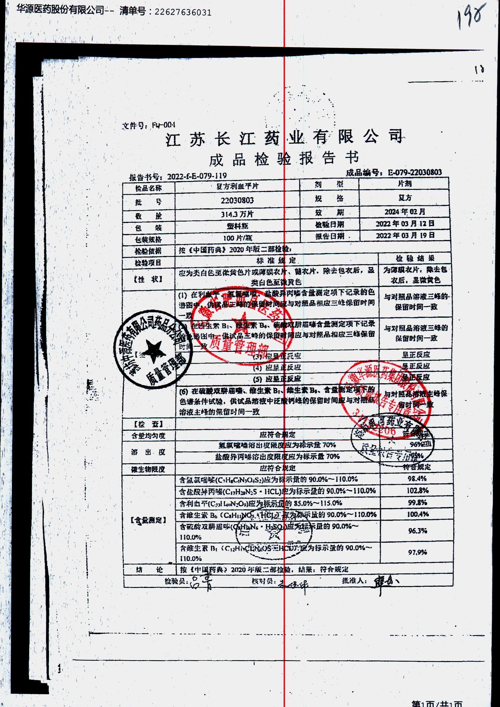 | 复方利血平片 | 复方*100片 | 22030803 | 查看详情 |