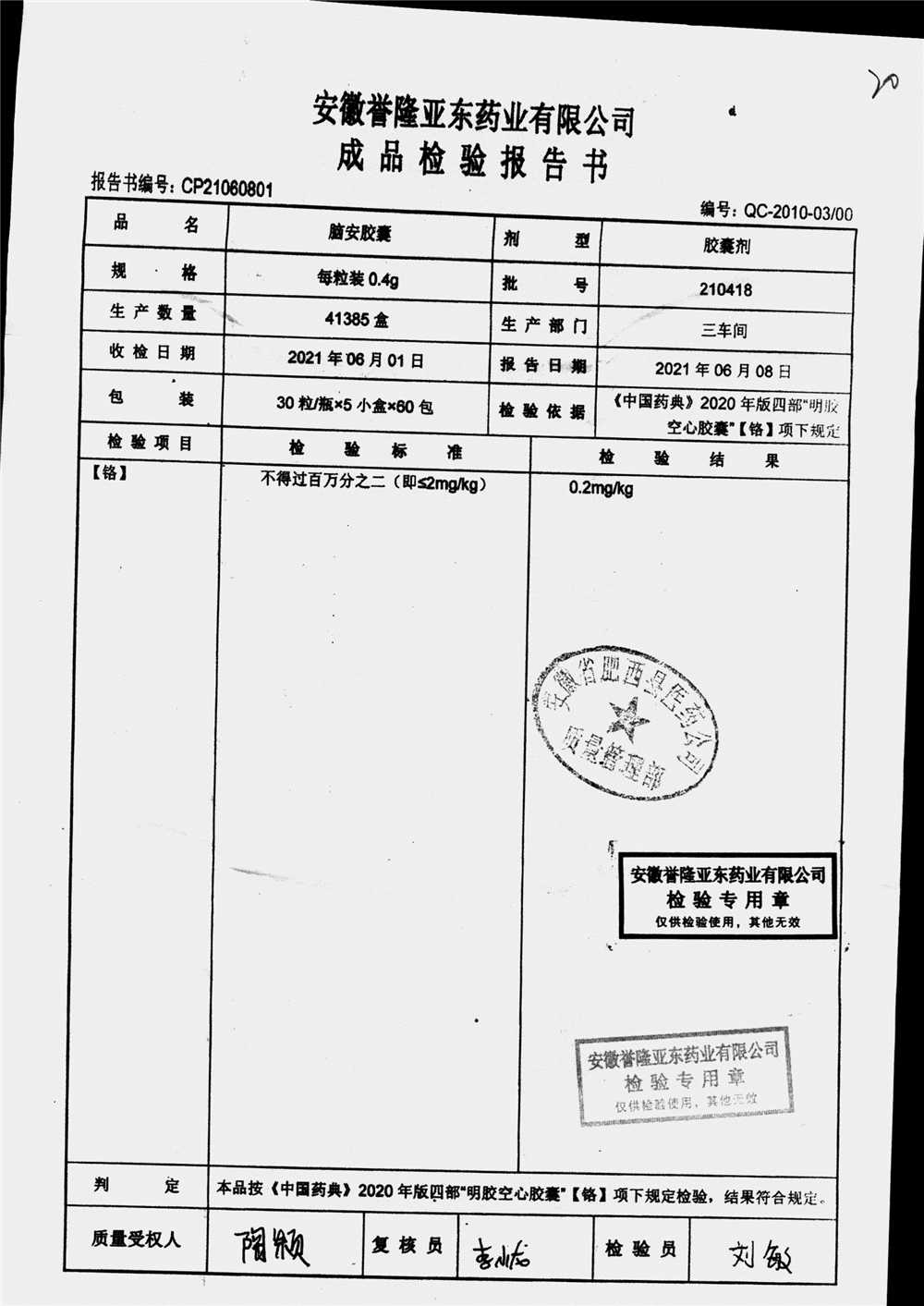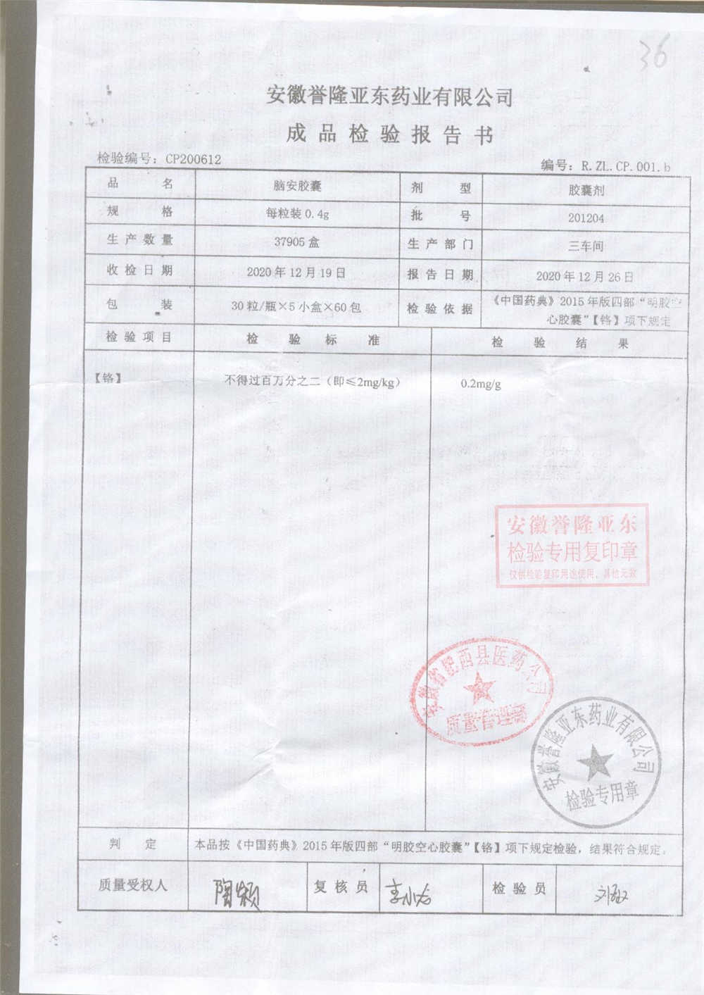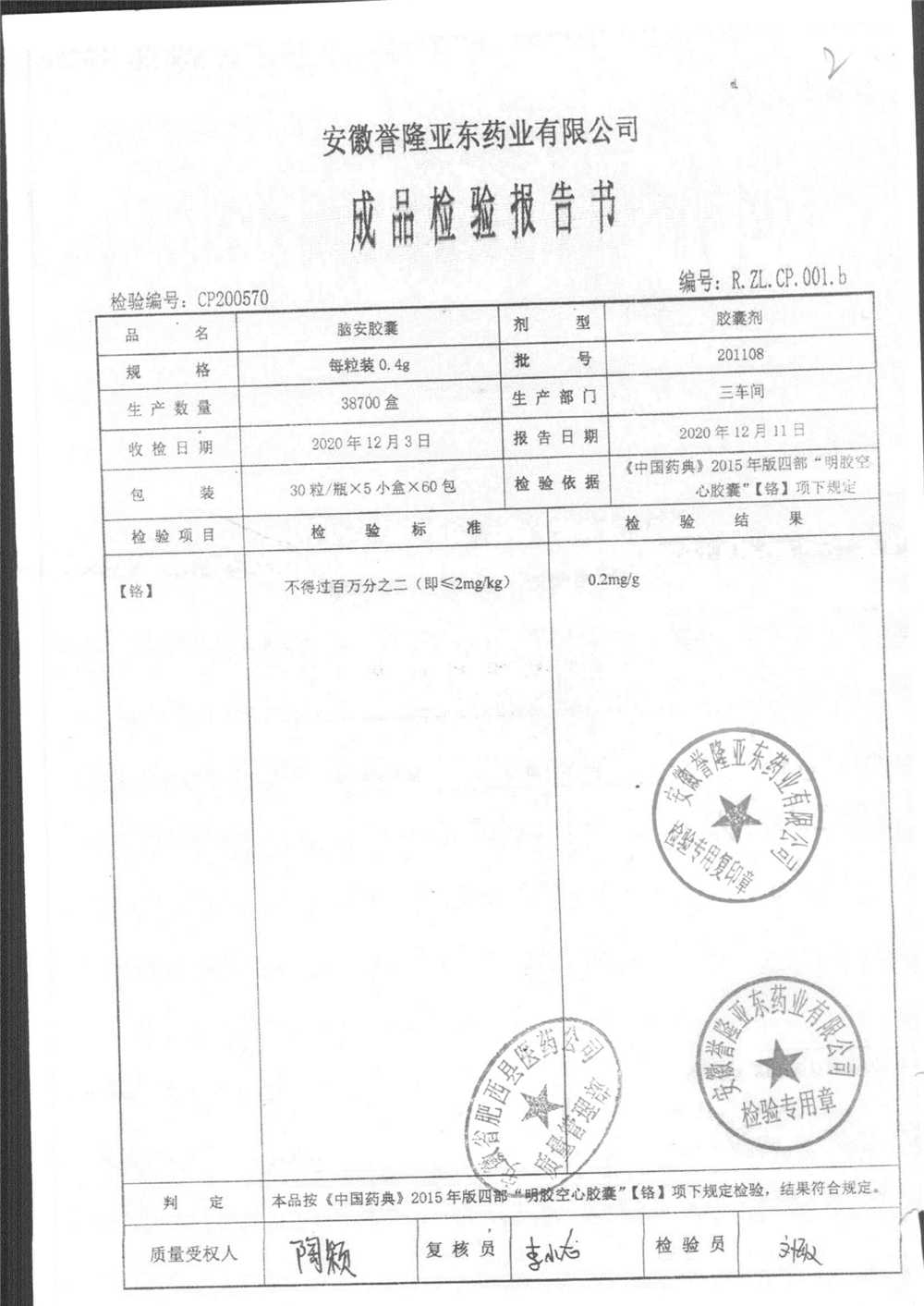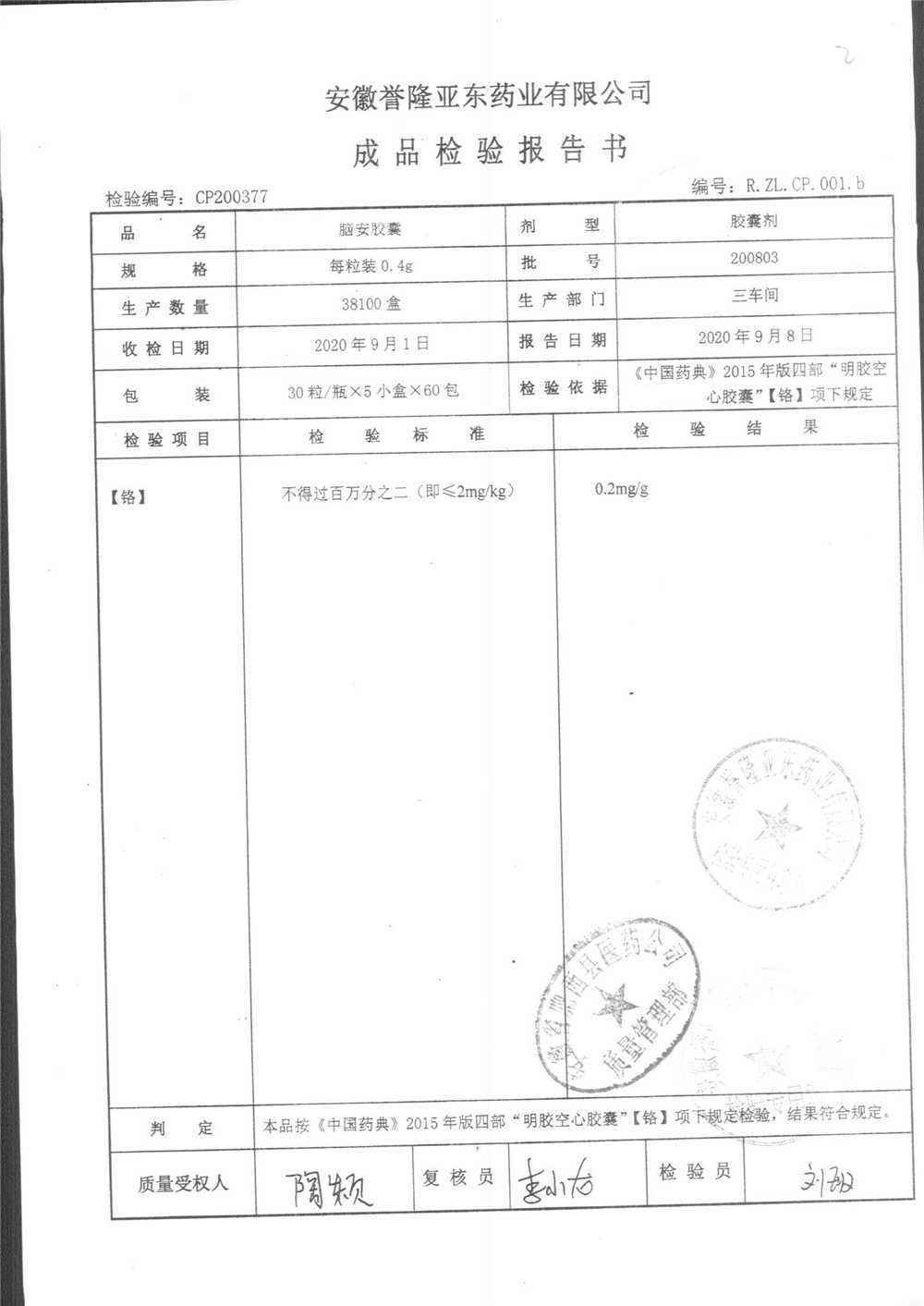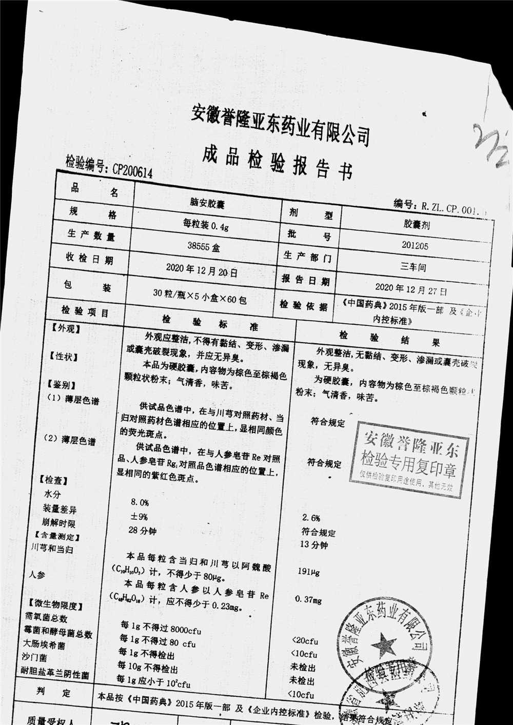 | 脑安胶囊 | 0.4g*30s | 210418(2/2) | 查看详情 |
