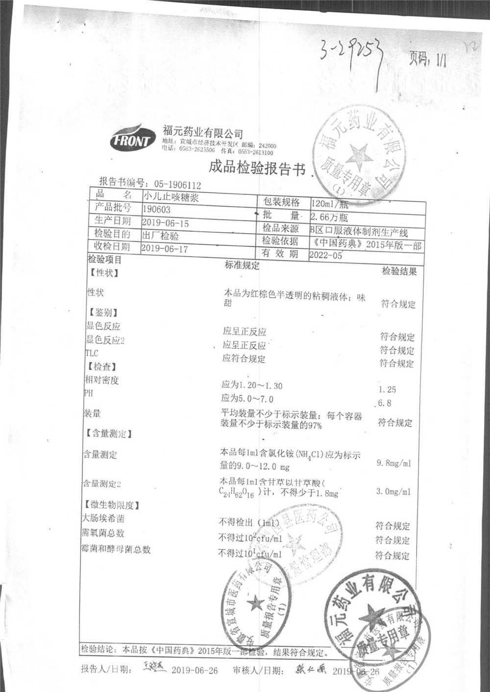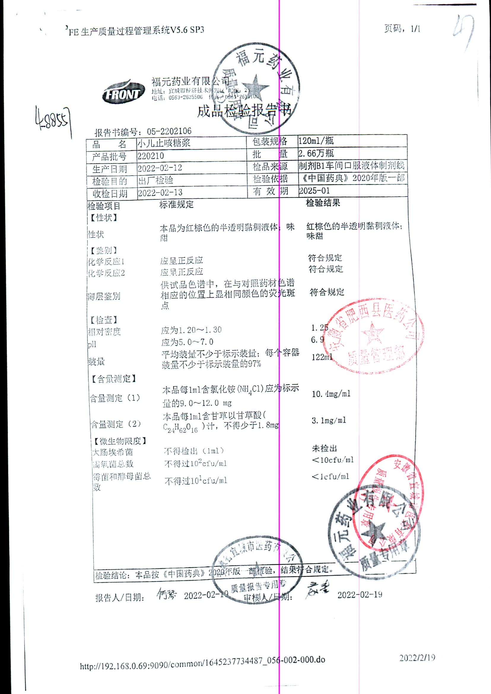 | 小儿止咳糖浆 | 120ml | 190603 | 查看详情 |
