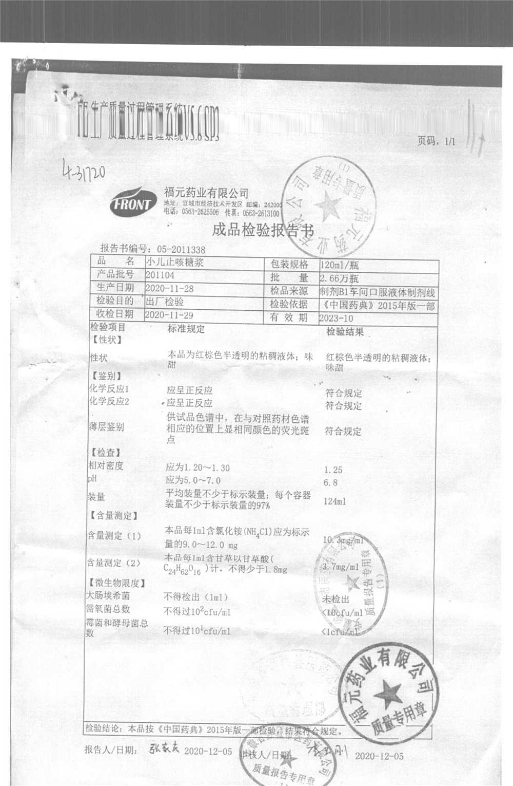 | 小儿止咳糖浆 | 120ml | 201104 | 查看详情 |