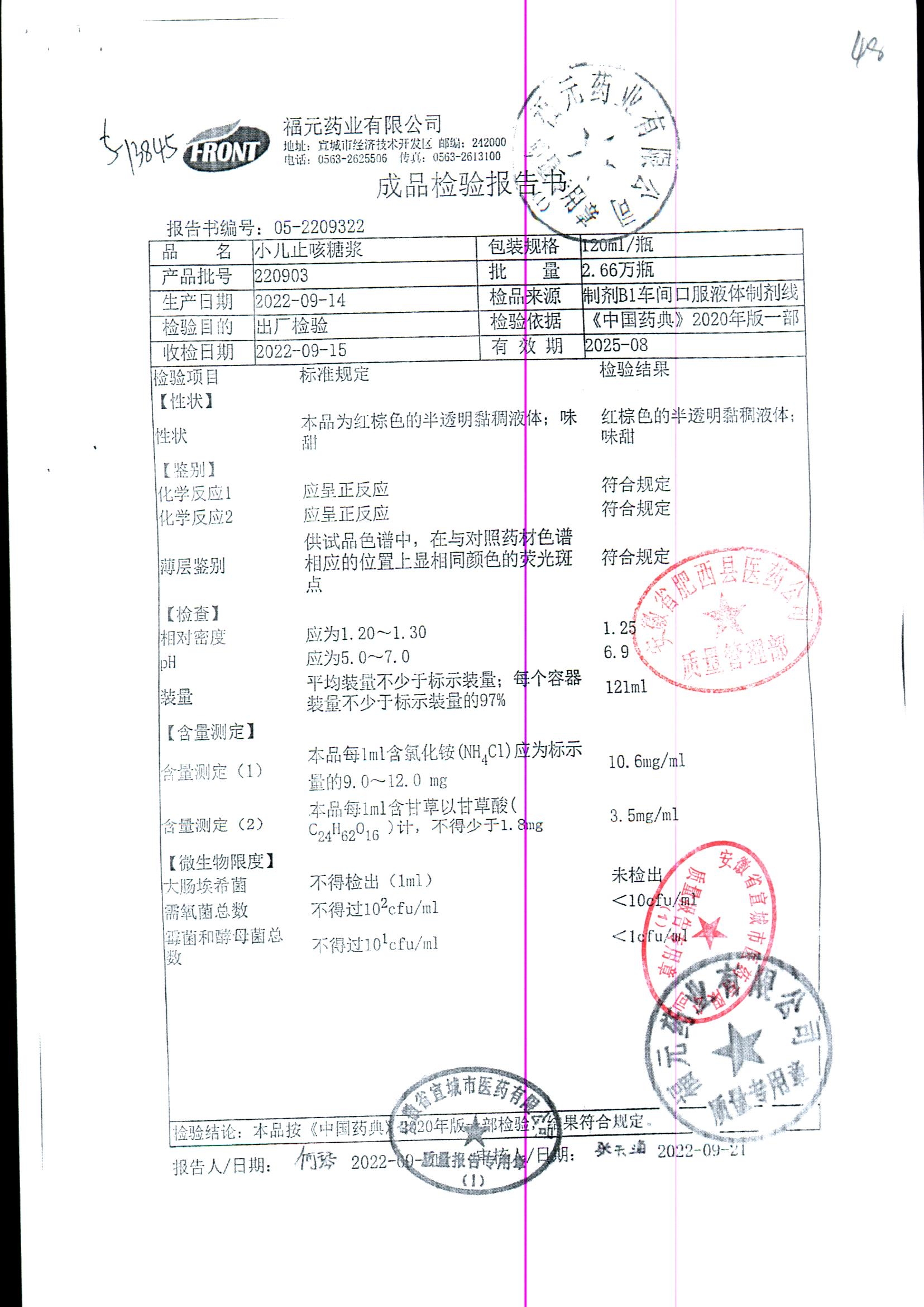 | 小儿止咳糖浆 | 120ml | 220902 | 查看详情 |