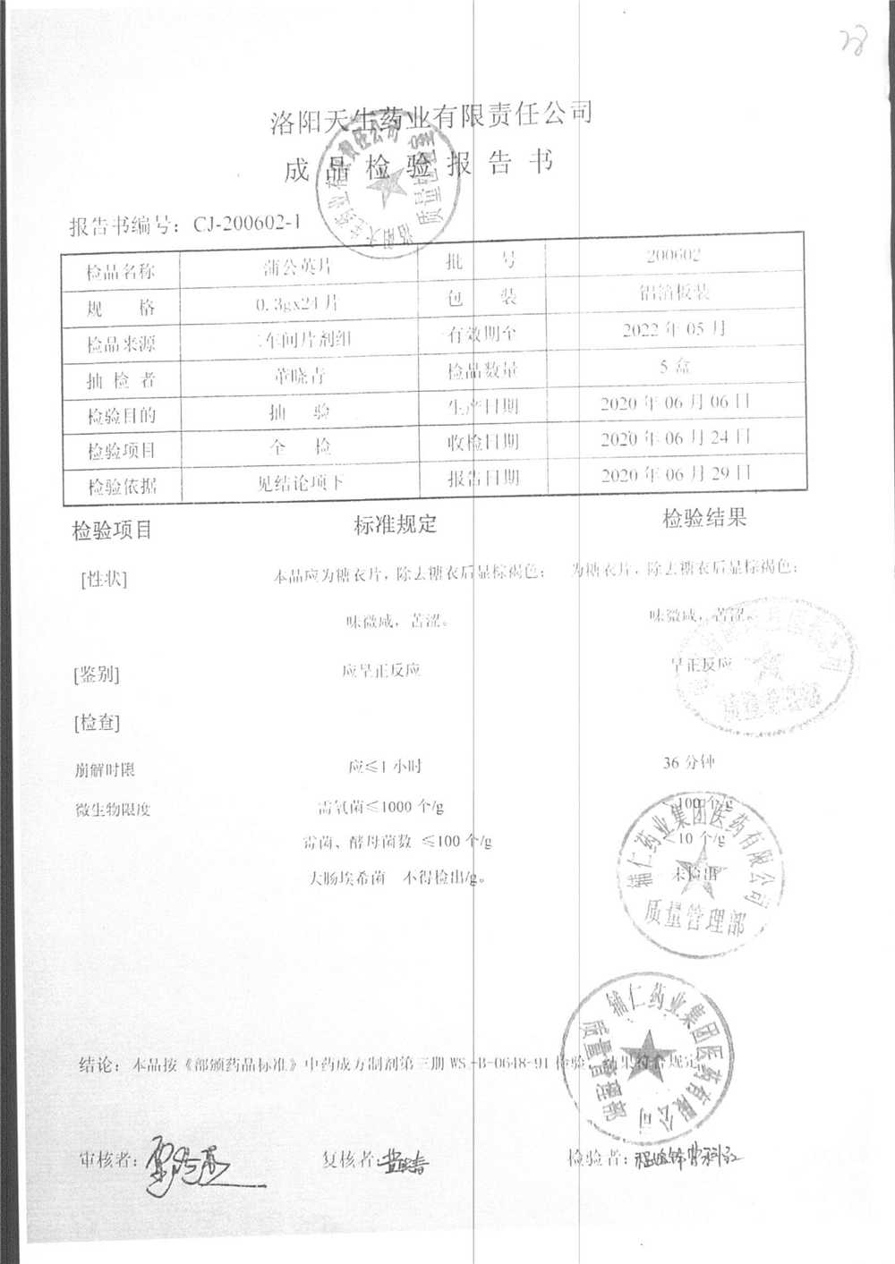 药检报告