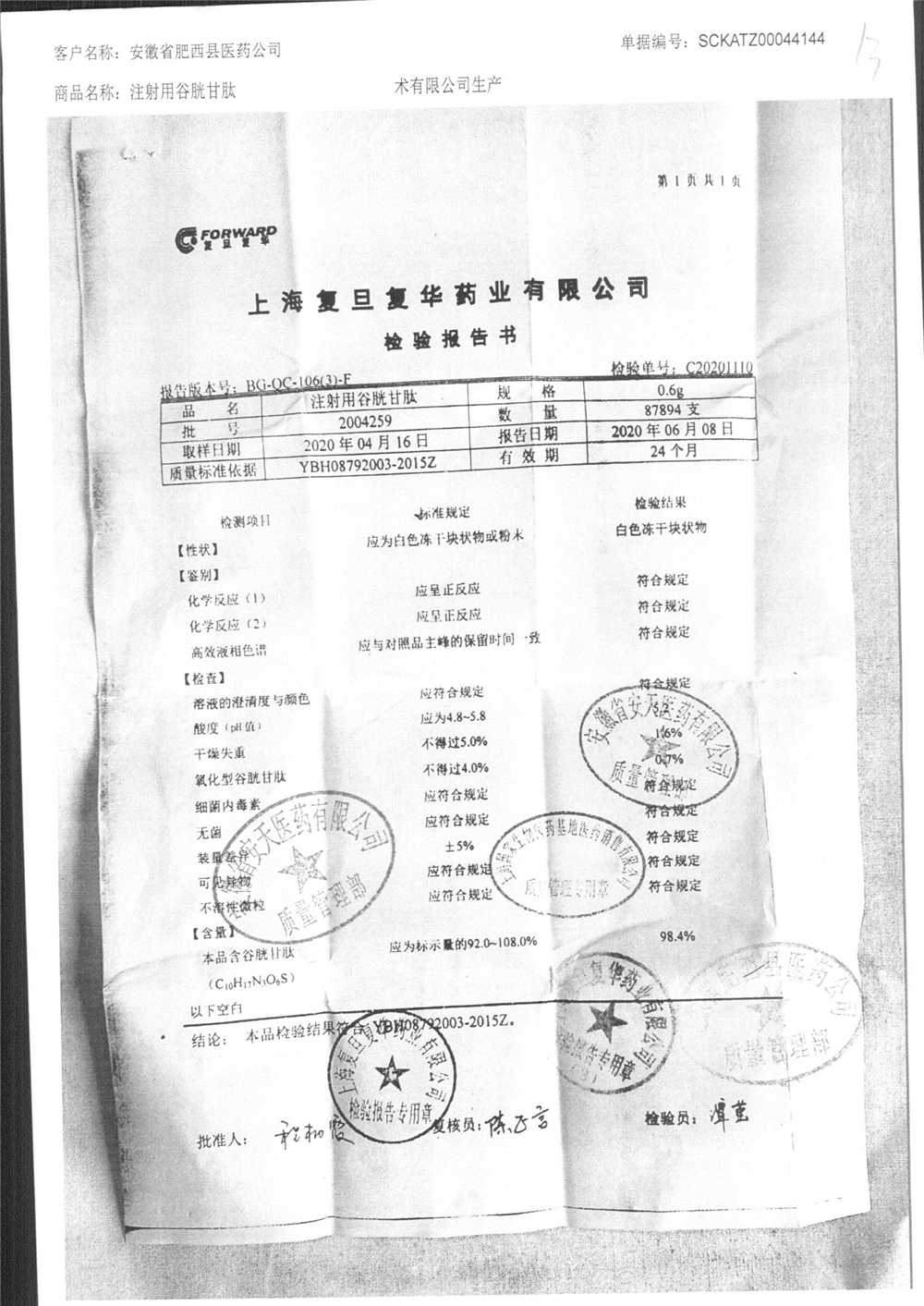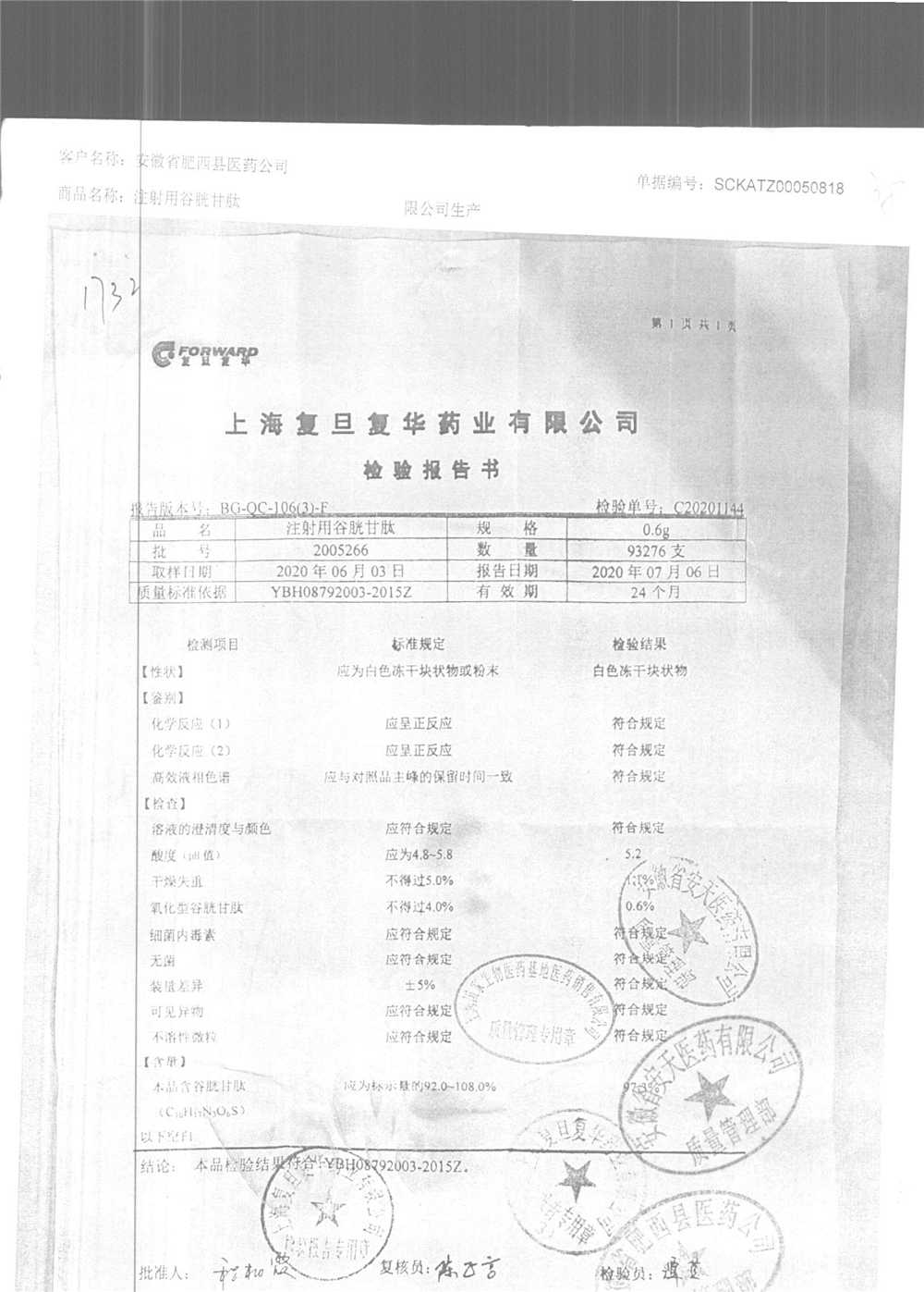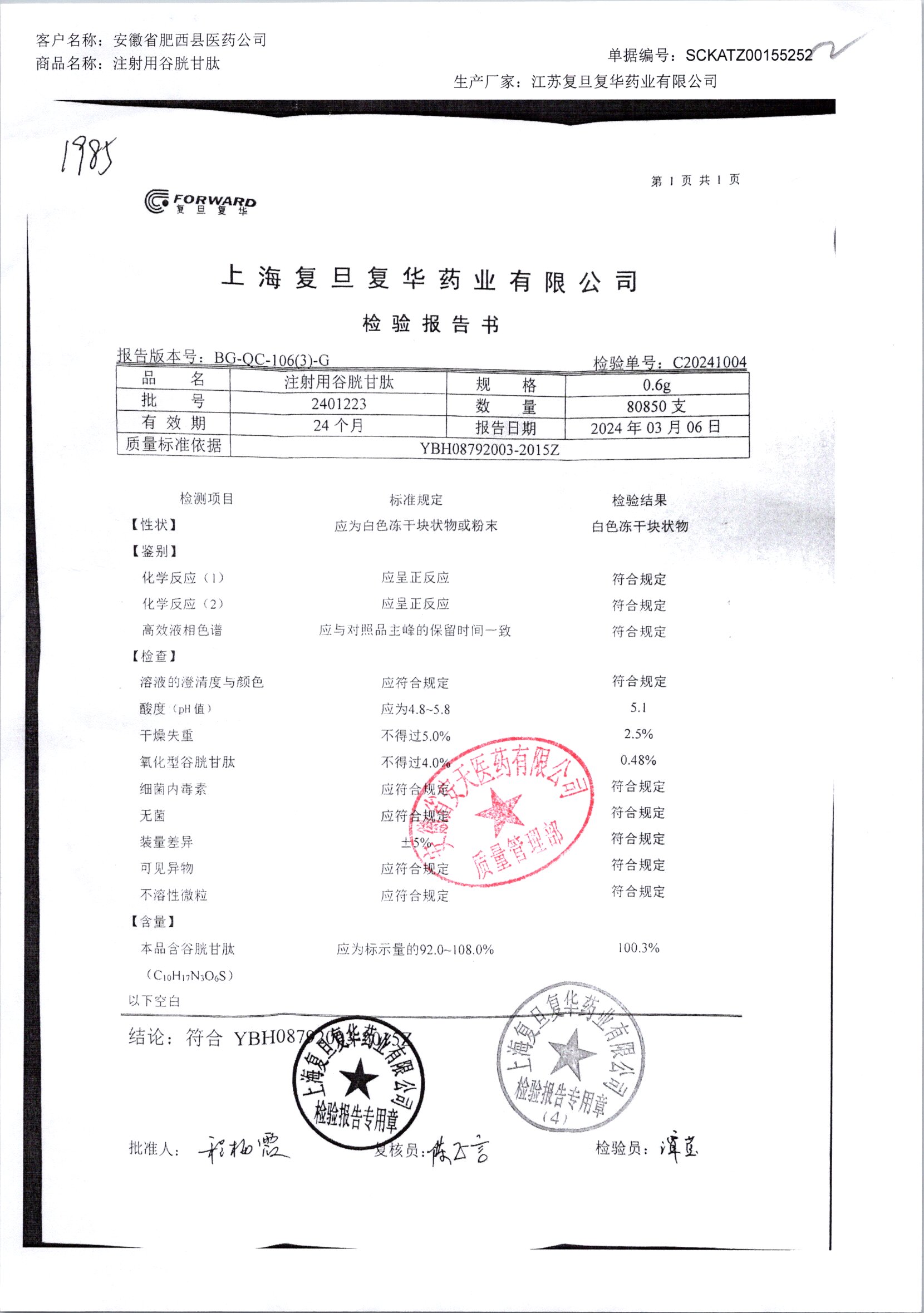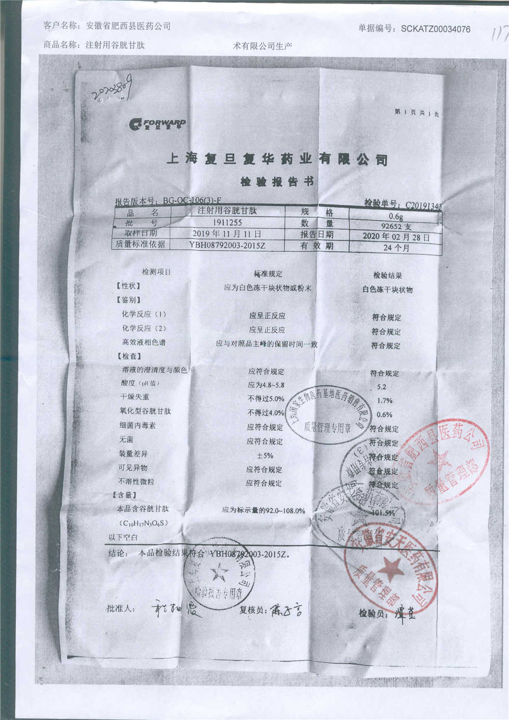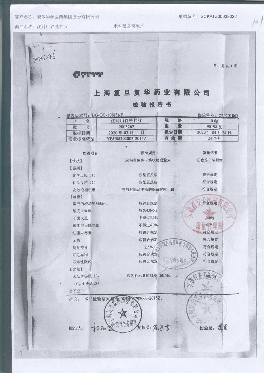 | 注射用谷胱甘肽 | 0.6g | 1911255 | 查看详情 |