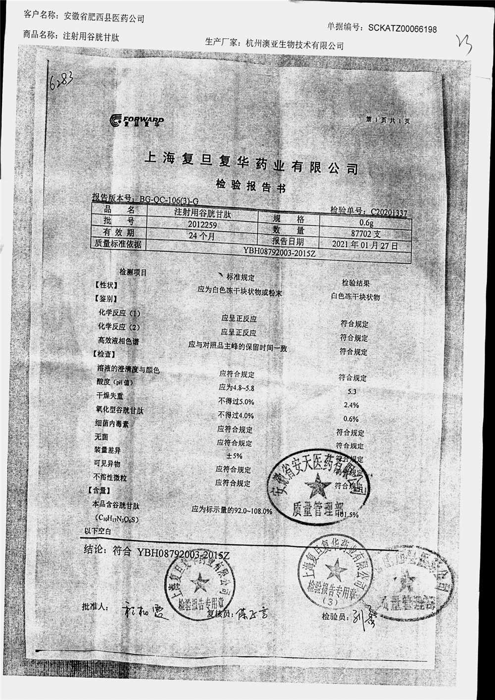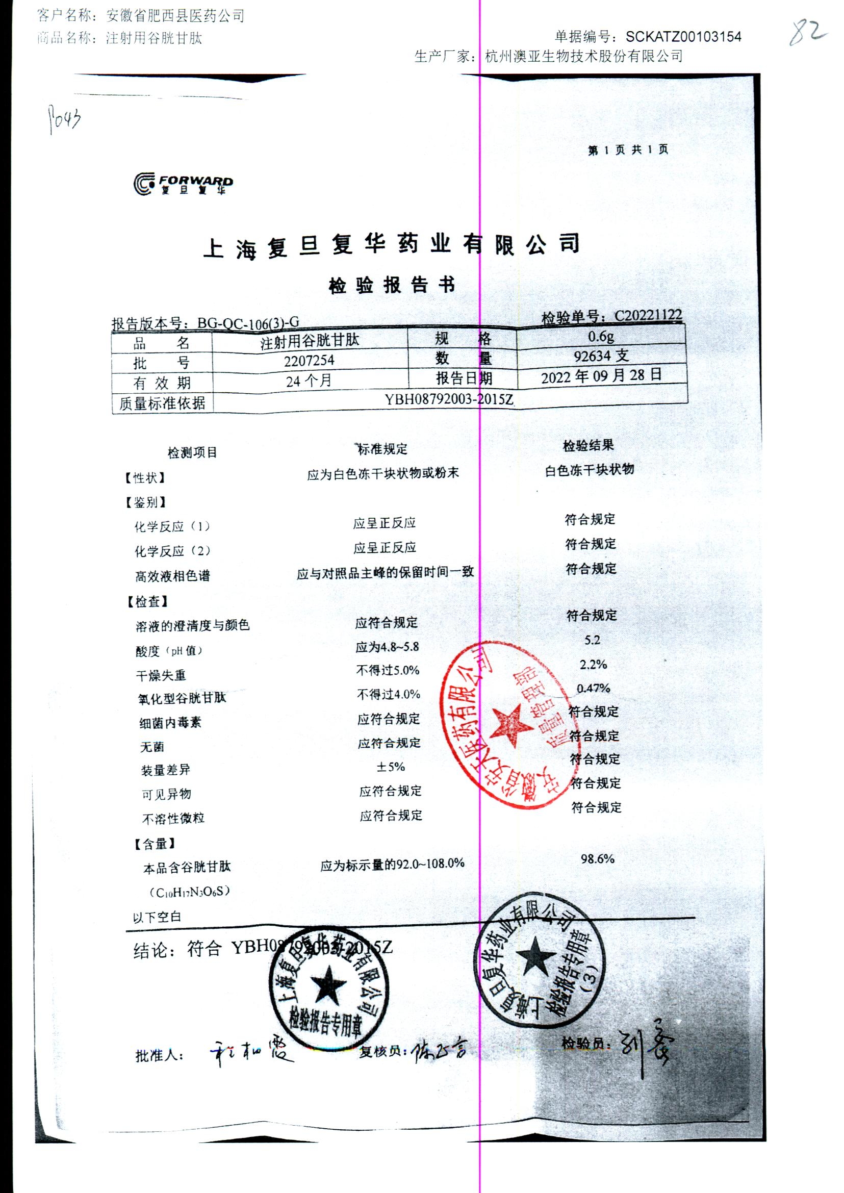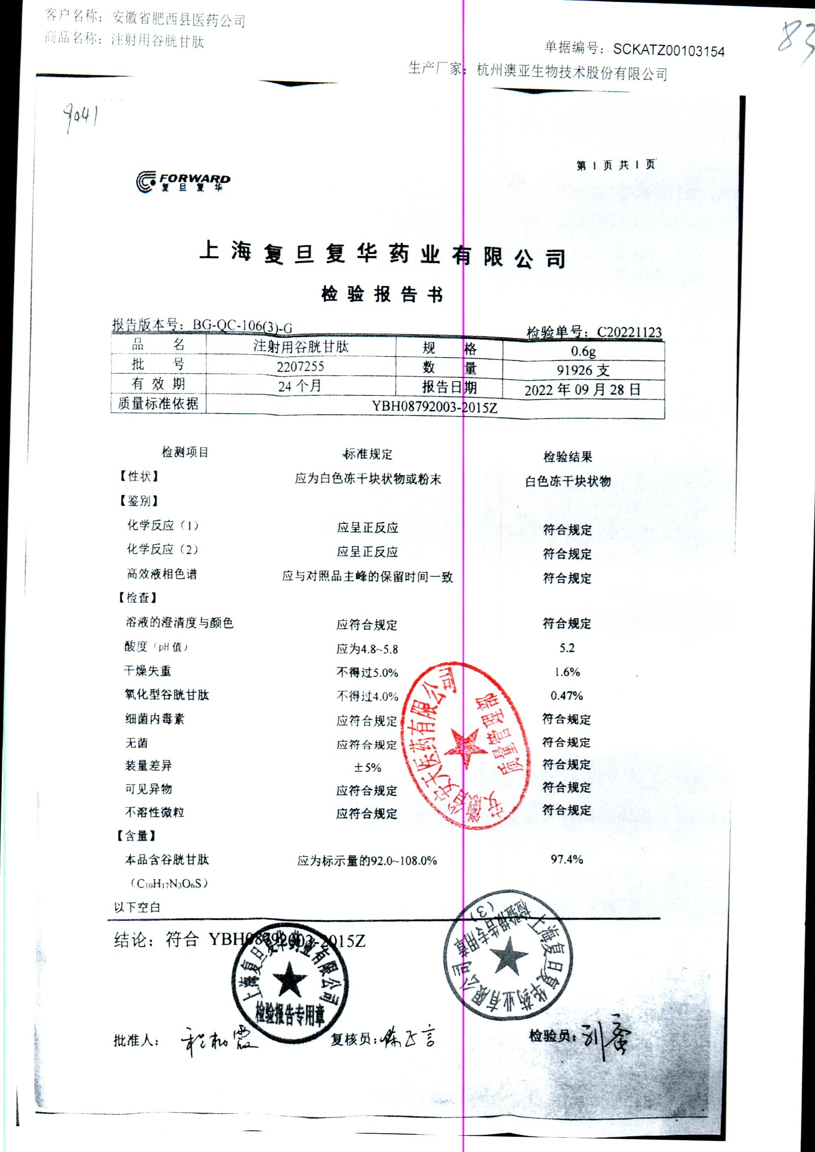 | 注射用谷胱甘肽 | 0.6g | 2207254 | 查看详情 |