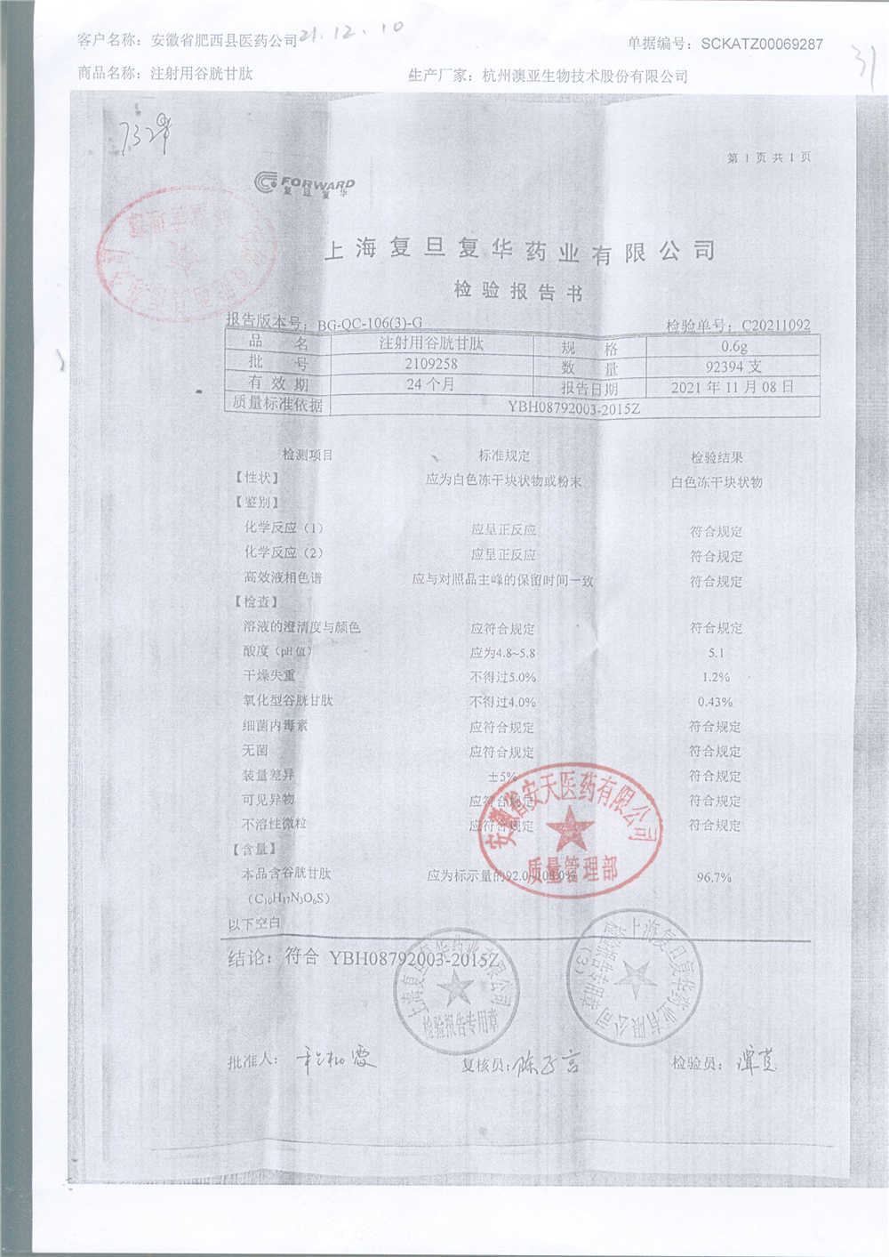 | 注射用谷胱甘肽 | 0.6g | 2109251 | 查看详情 |