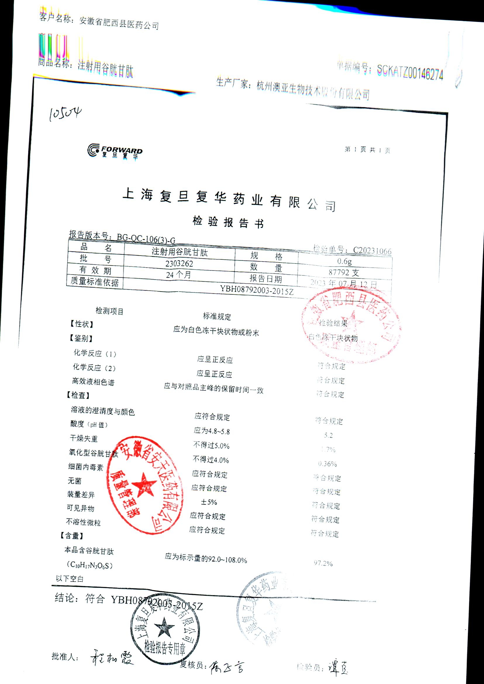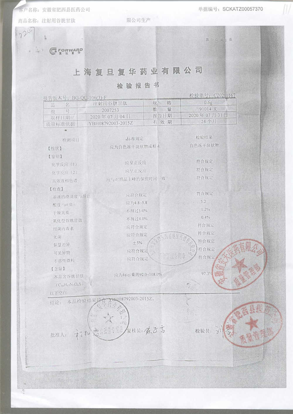 | 注射用谷胱甘肽 | 0.6g | 2007253 | 查看详情 |