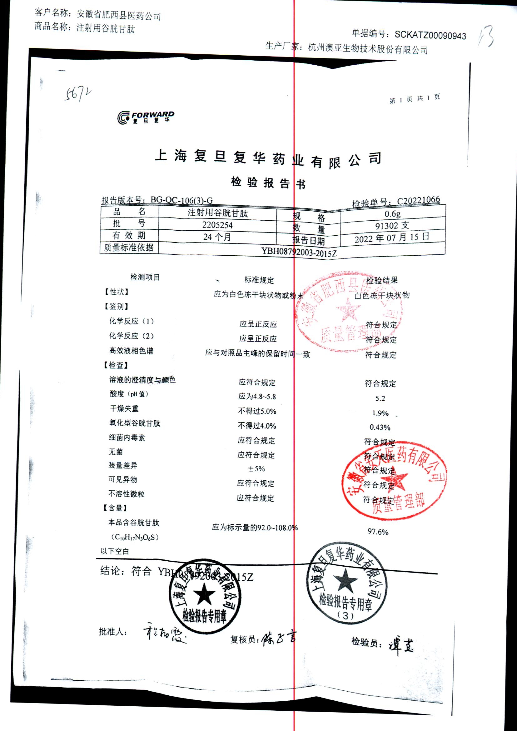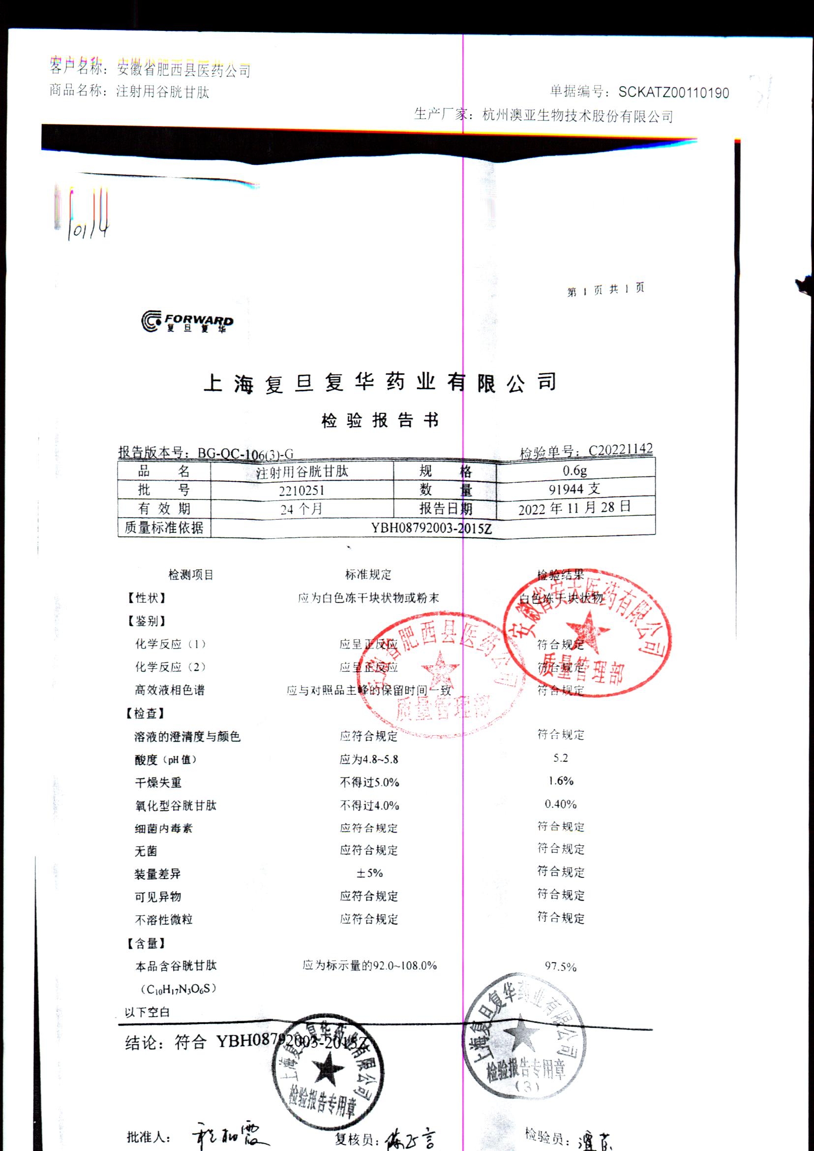 | 注射用谷胱甘肽 | 0.6g | 2210251 | 查看详情 |