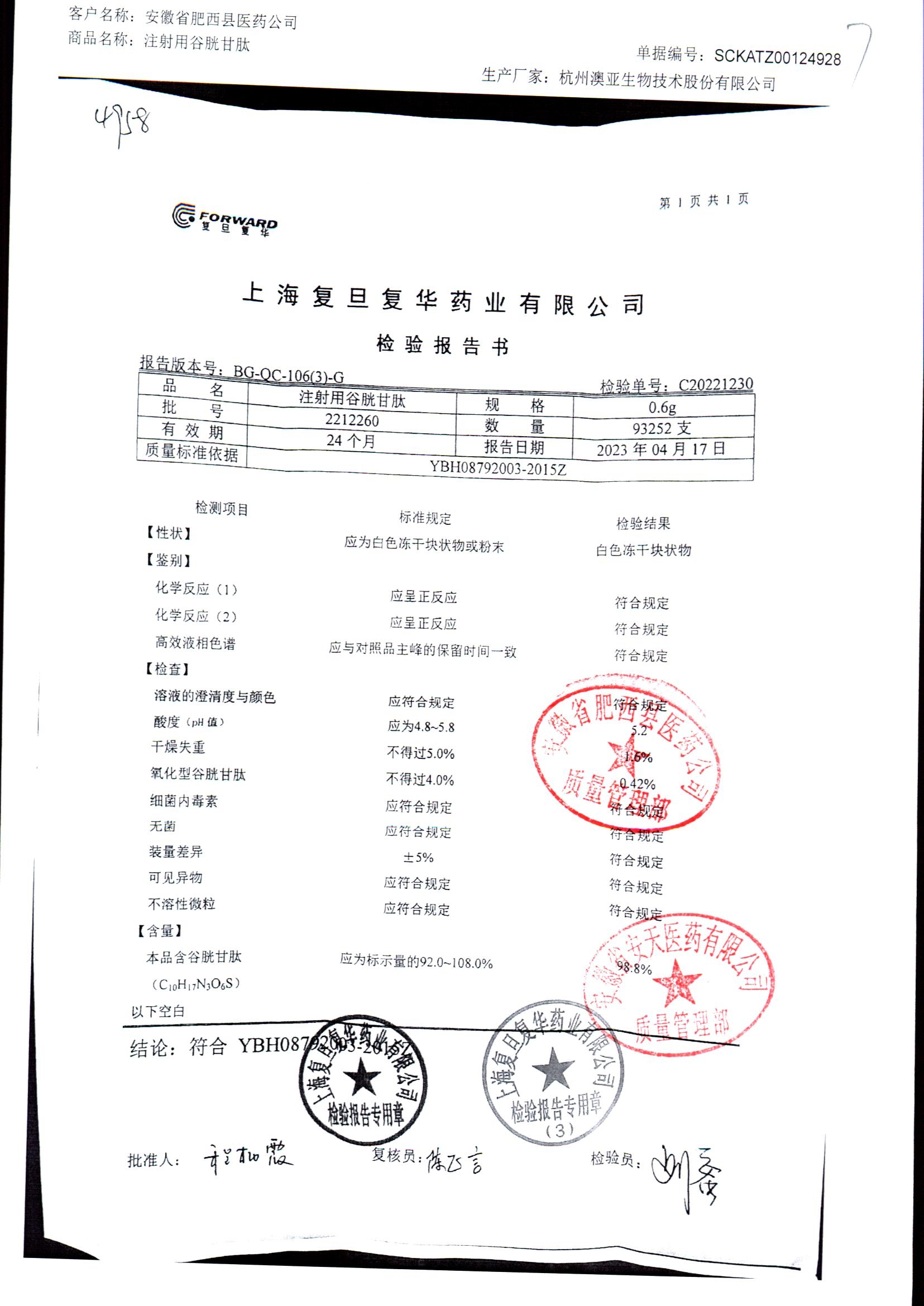 | 注射用谷胱甘肽 | 0.6g | 2210258 | 查看详情 |