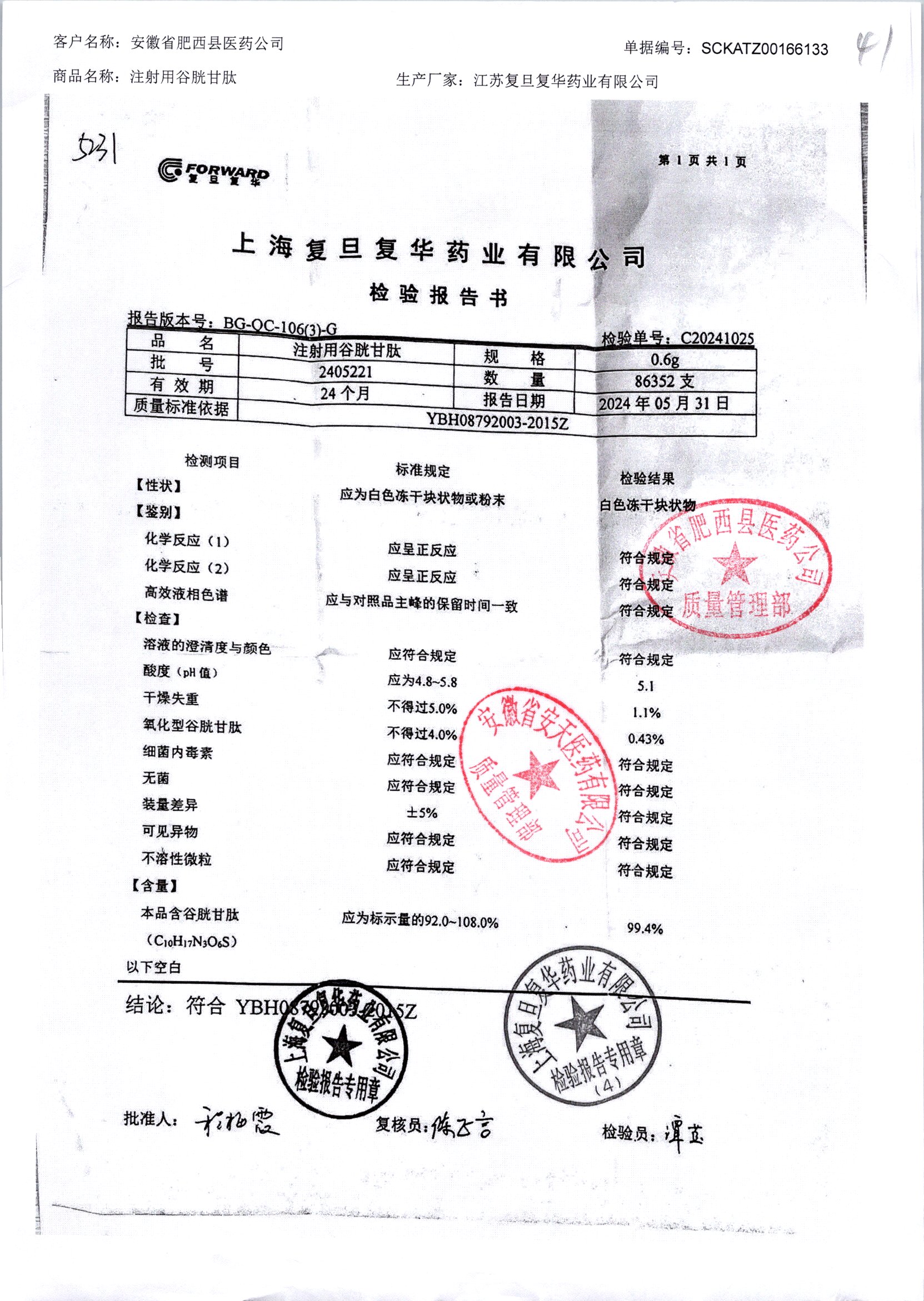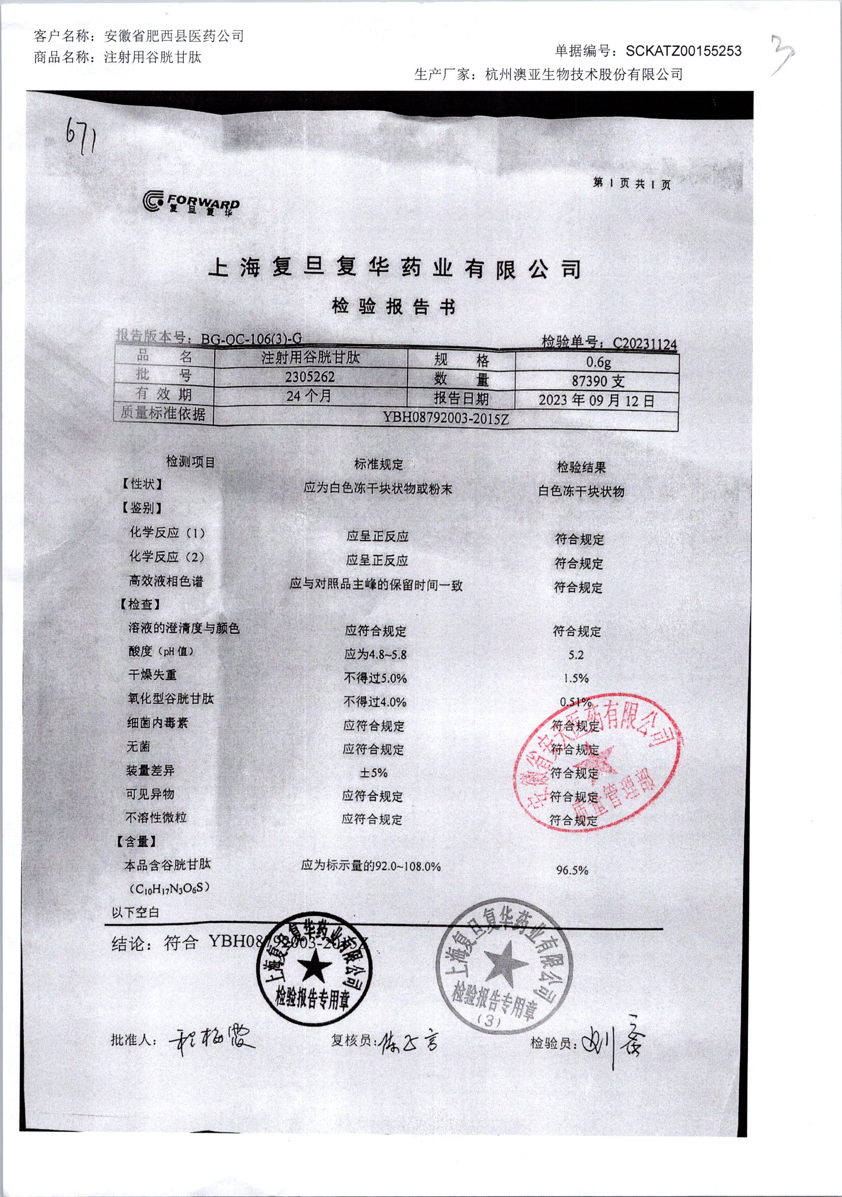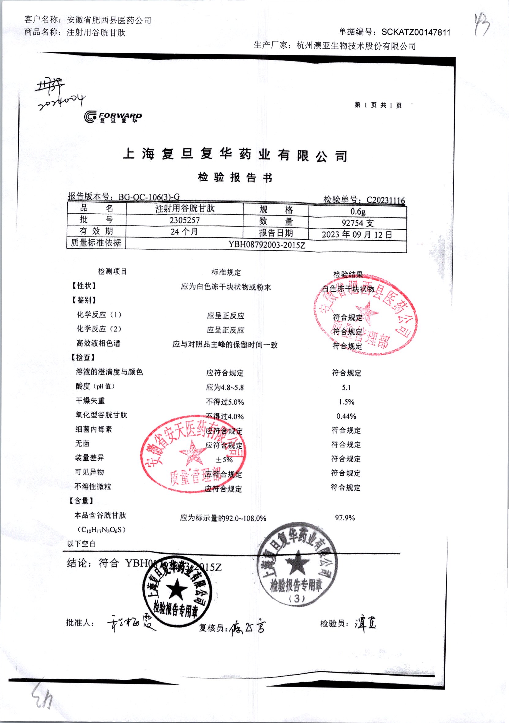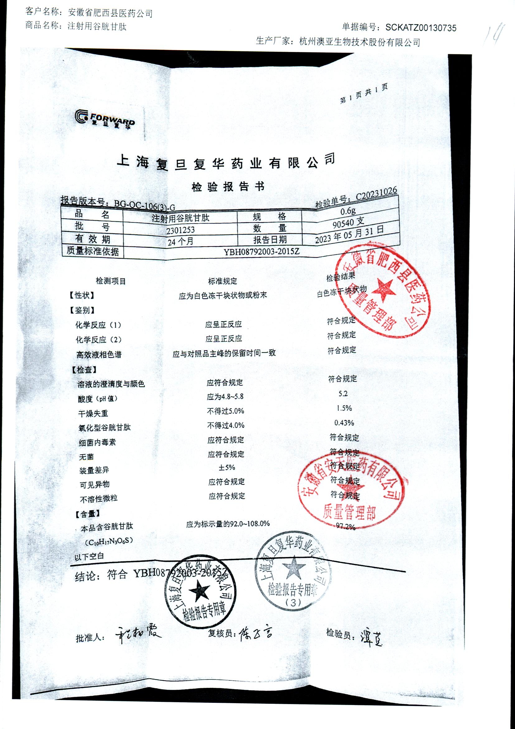 | 注射用谷胱甘肽 | 0.6g | 2401223 | 查看详情 |