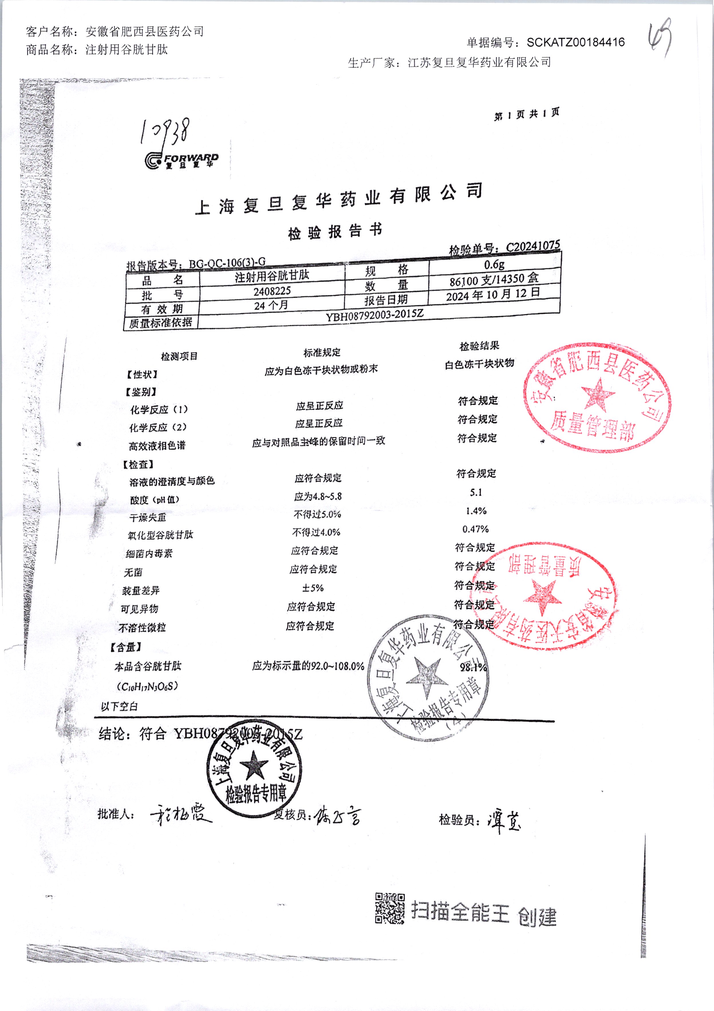 | 注射用谷胱甘肽 | 0.6g | 2408225 | 查看详情 |