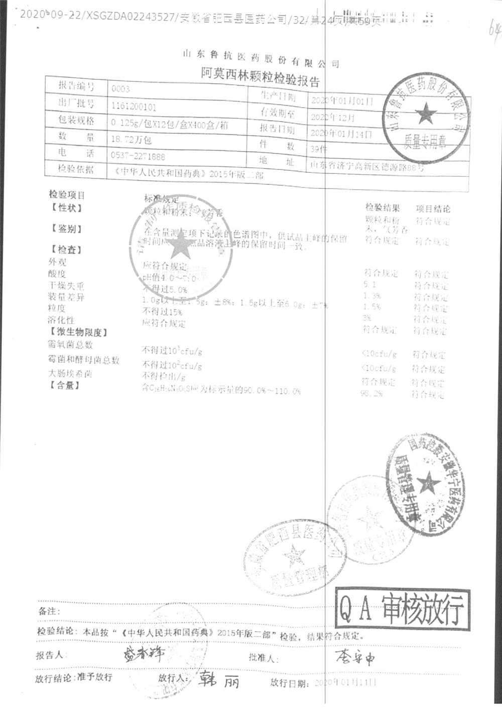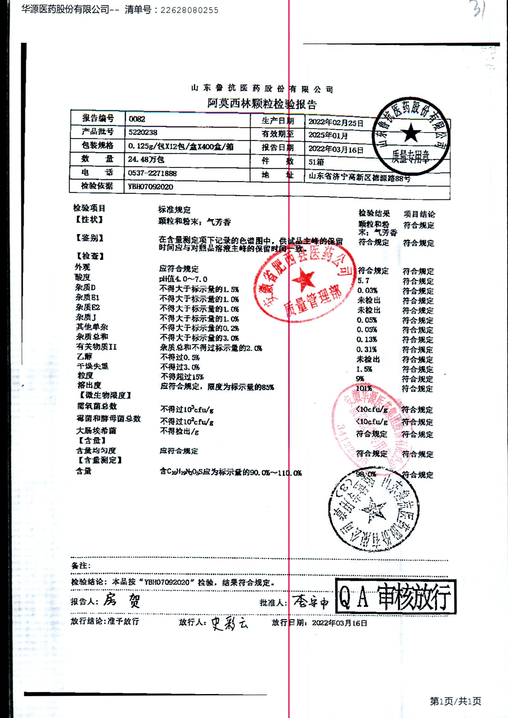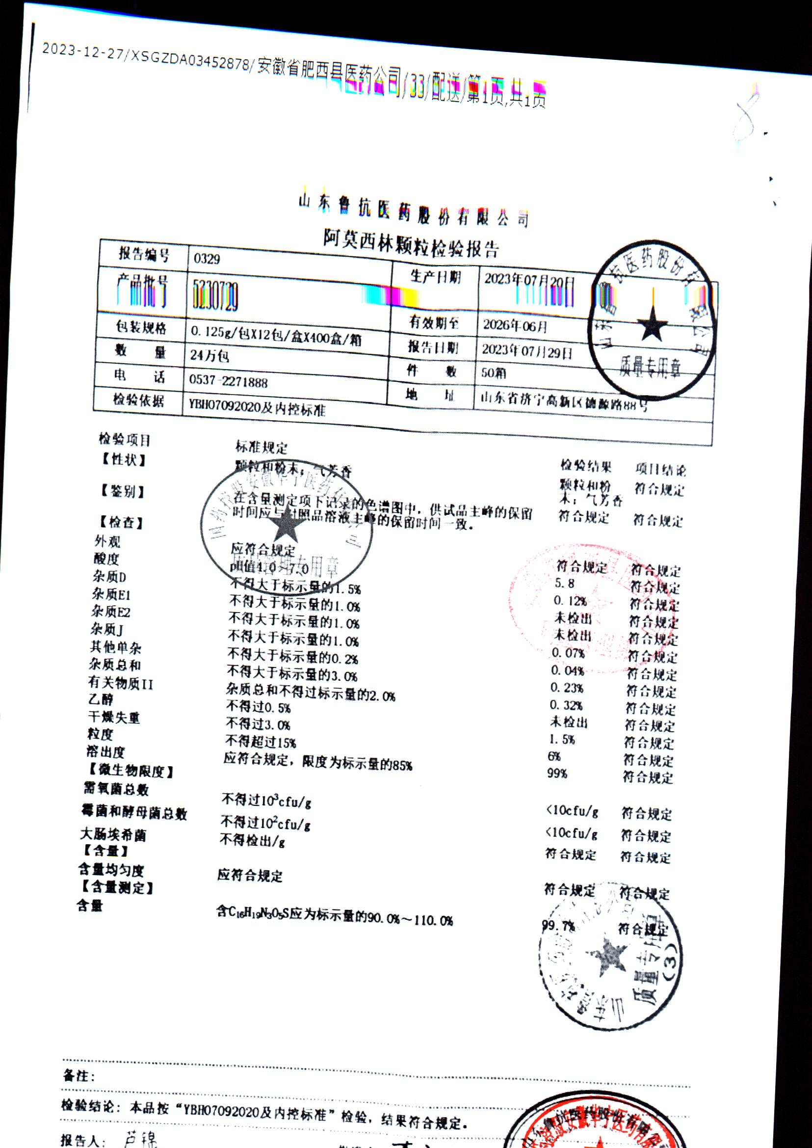 药检报告