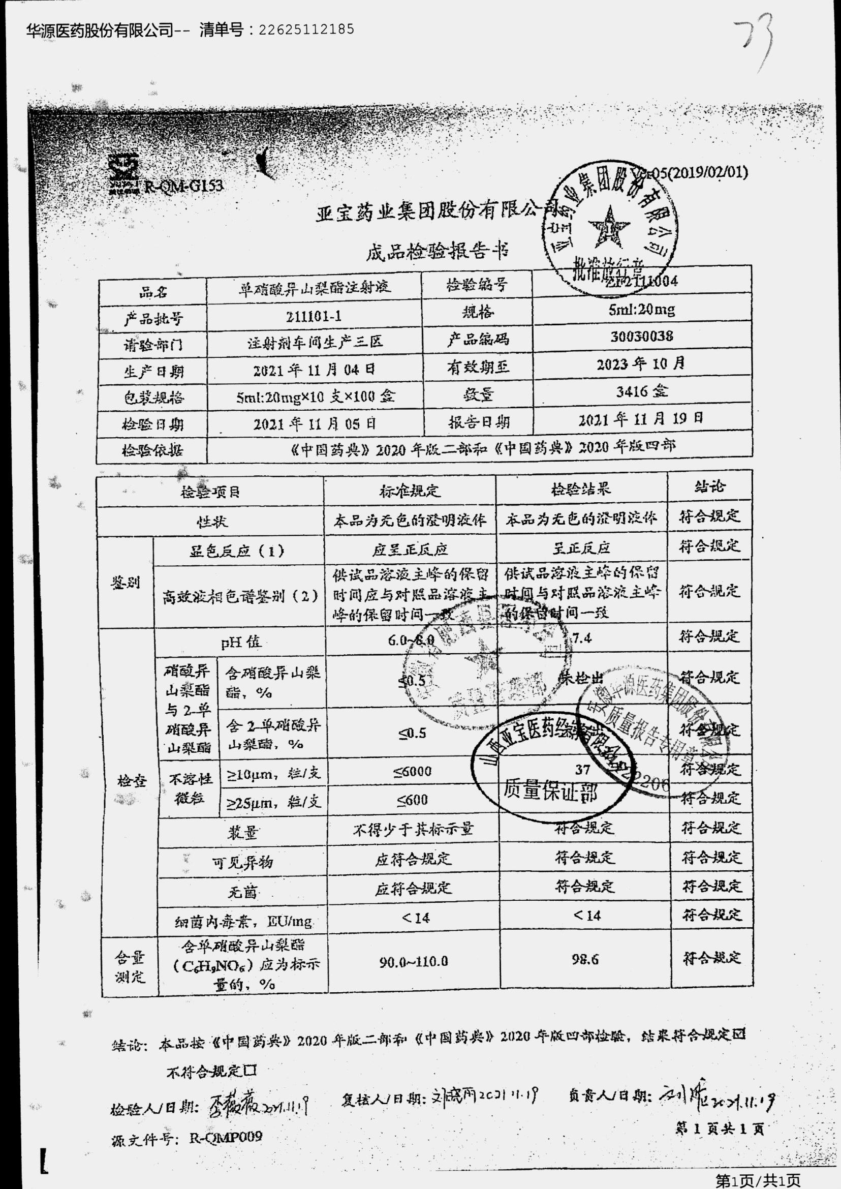 | 单硝酸异山梨酯注射液 | 5ml | 210104-1 | 查看详情 |