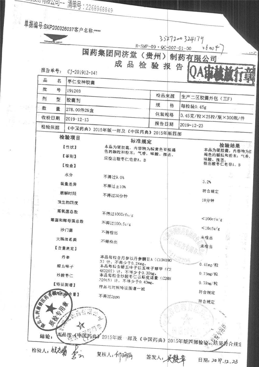 | 枣仁安神胶囊 | 0.45g*25s | 191203 | 查看详情 |