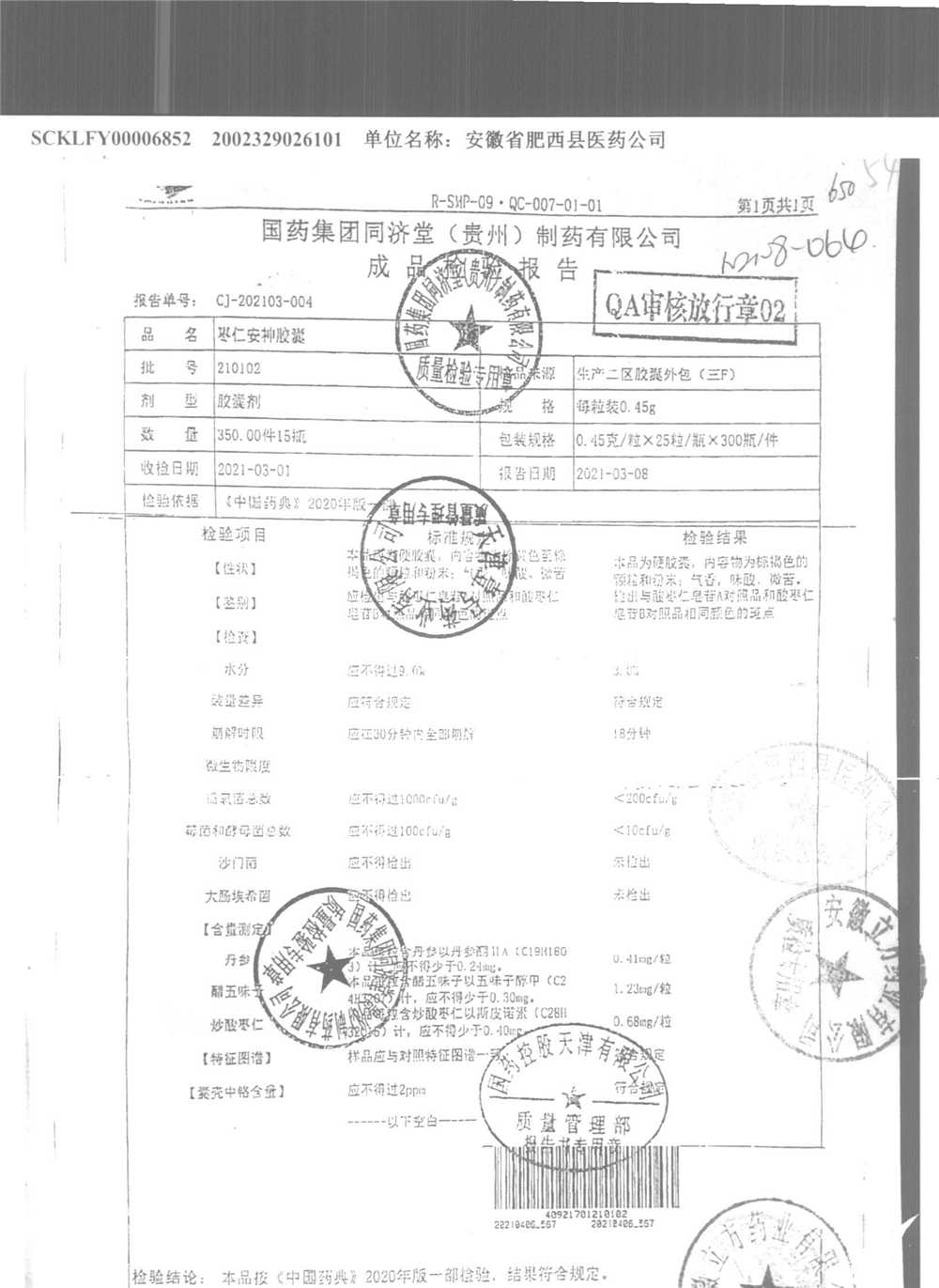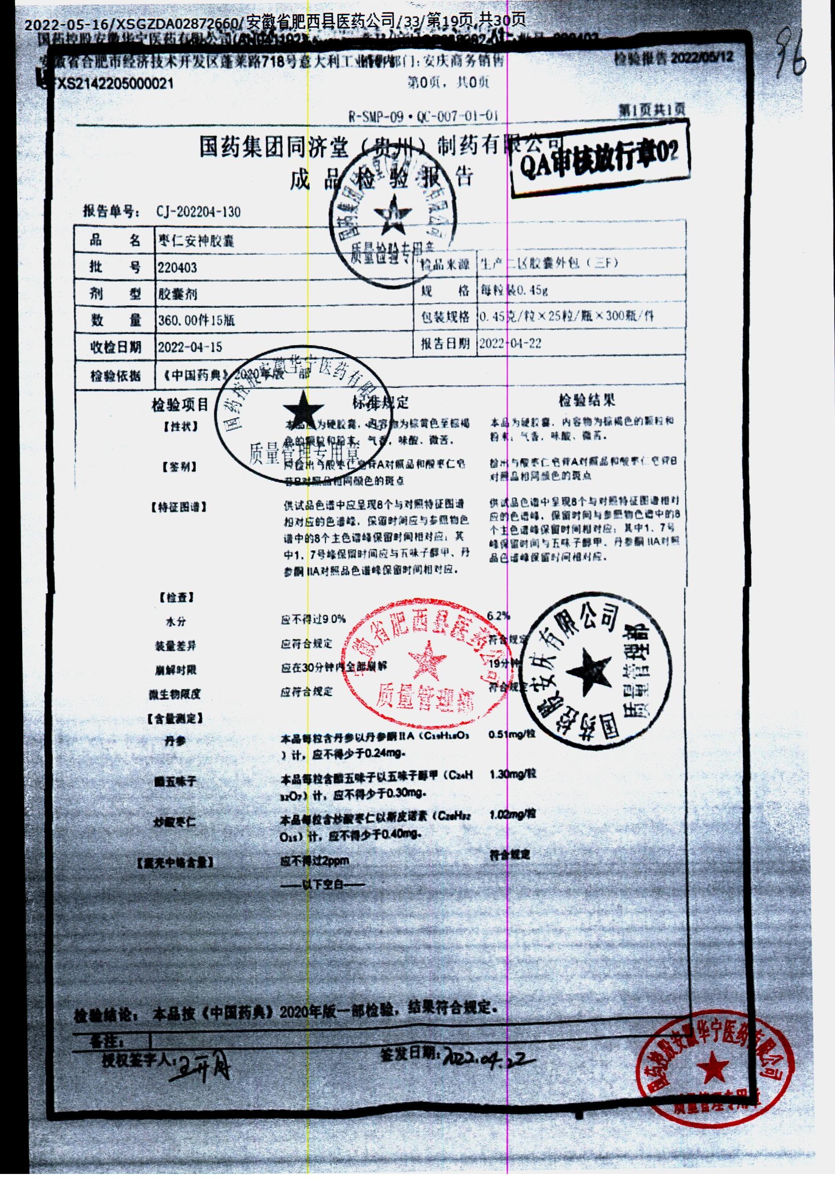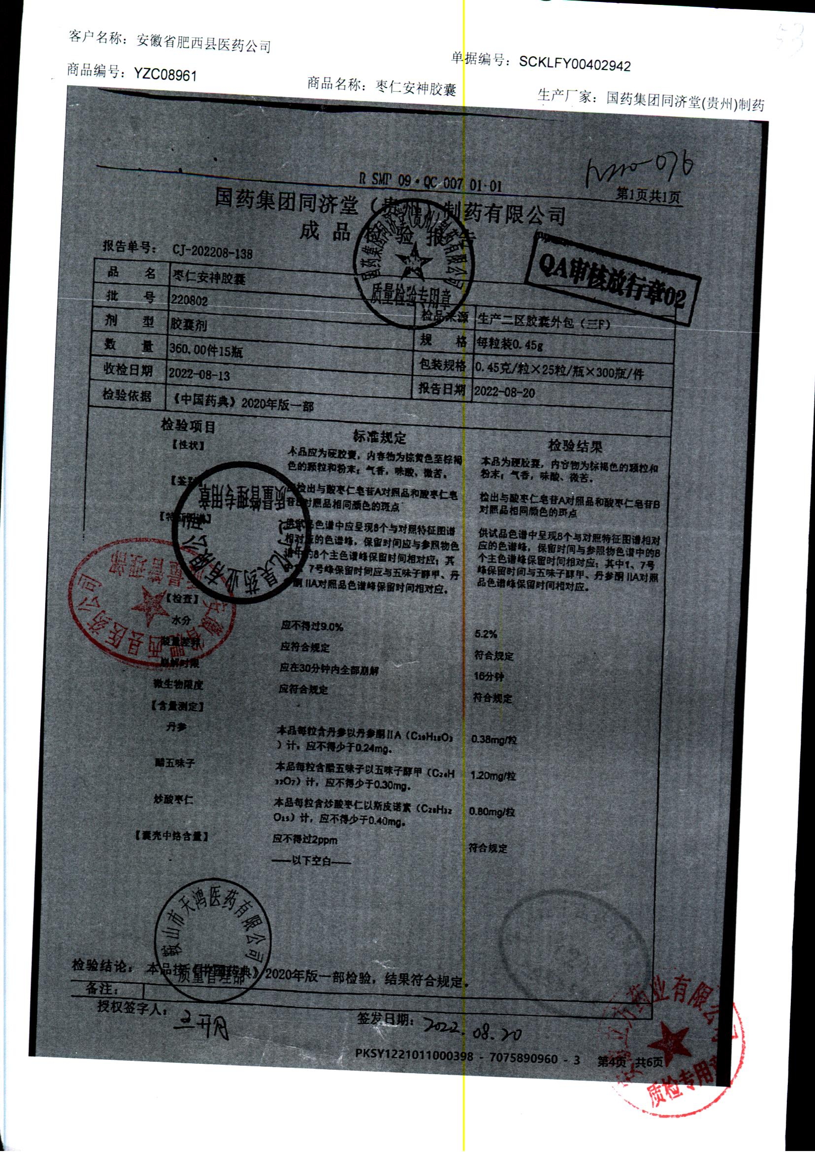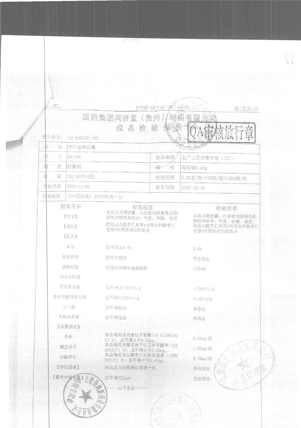 | 枣仁安神胶囊 | 0.45g*25s | 201106 | 查看详情 |
