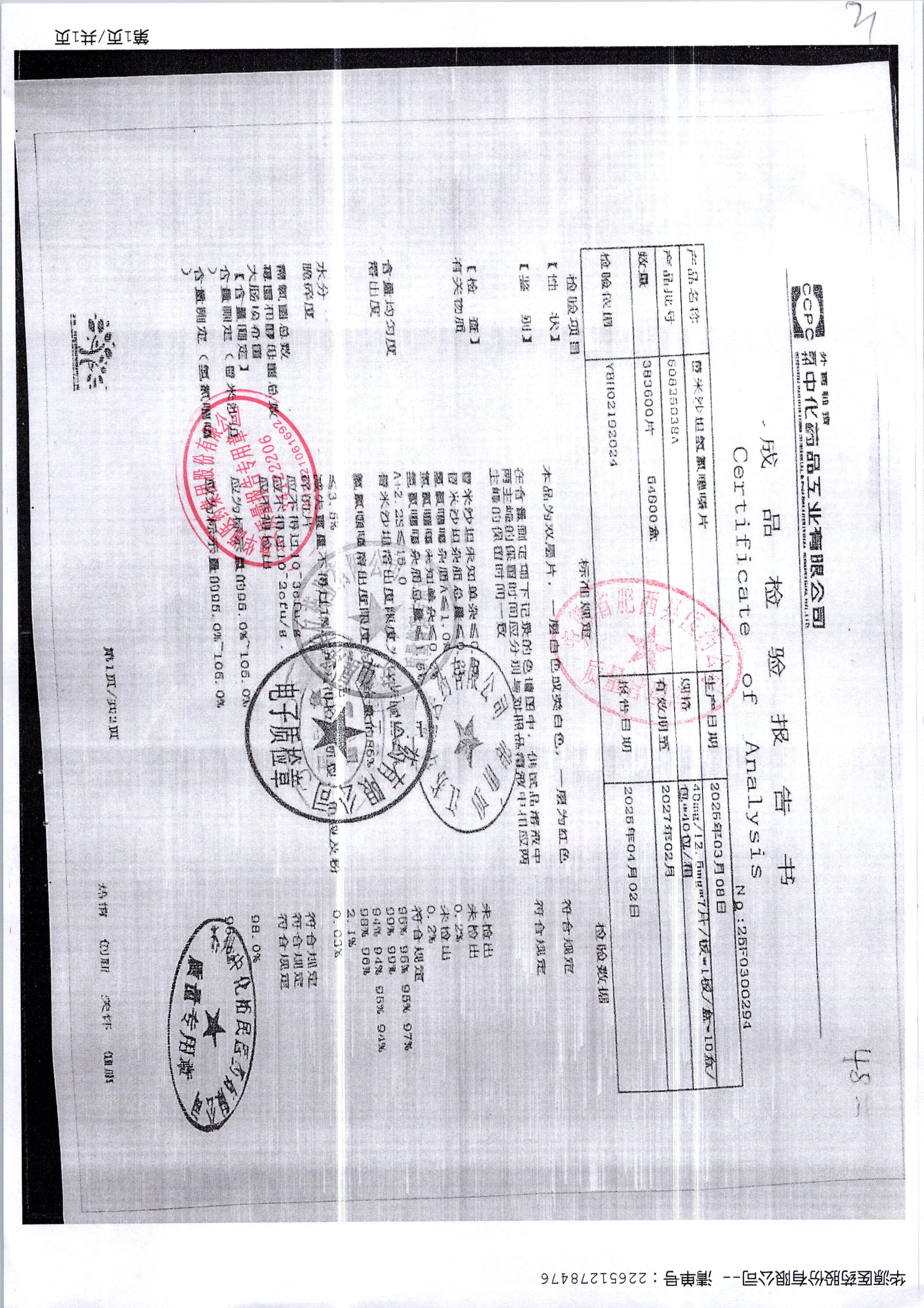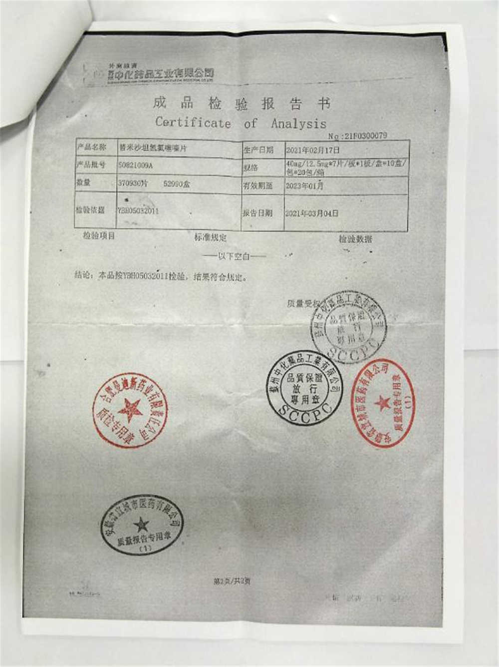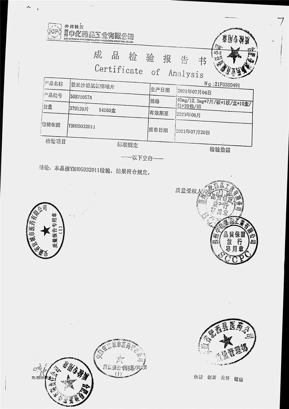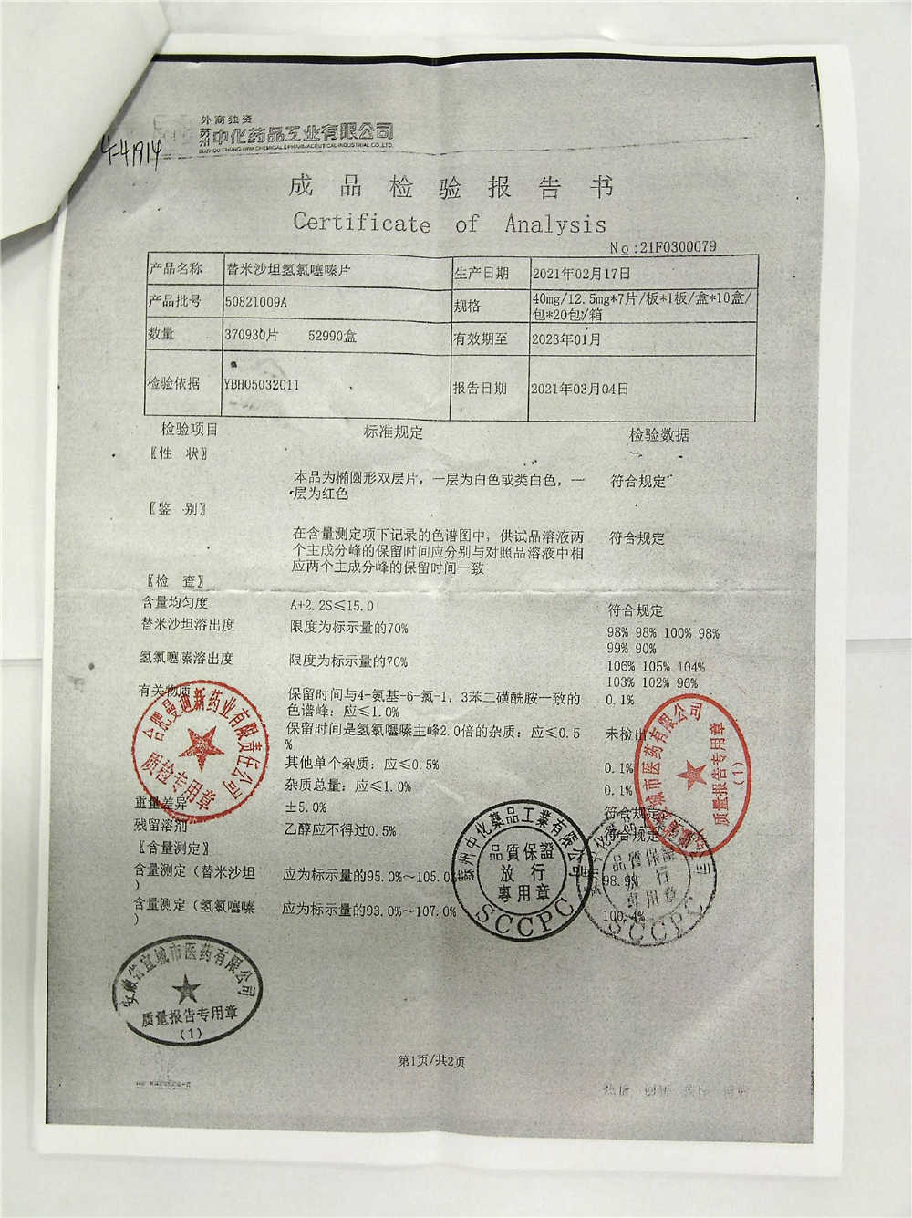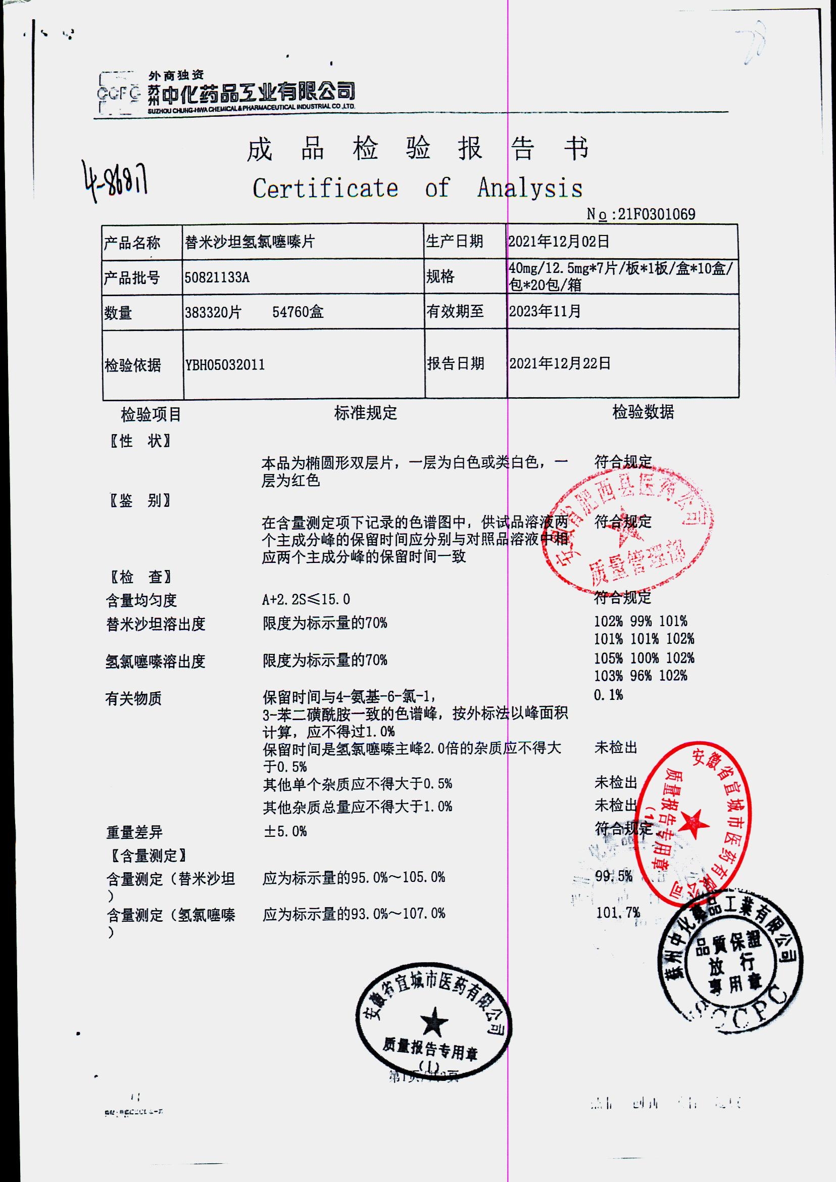 | 替米沙坦氢氯噻嗪片 | 7s | 50821133A/1 | 查看详情 |