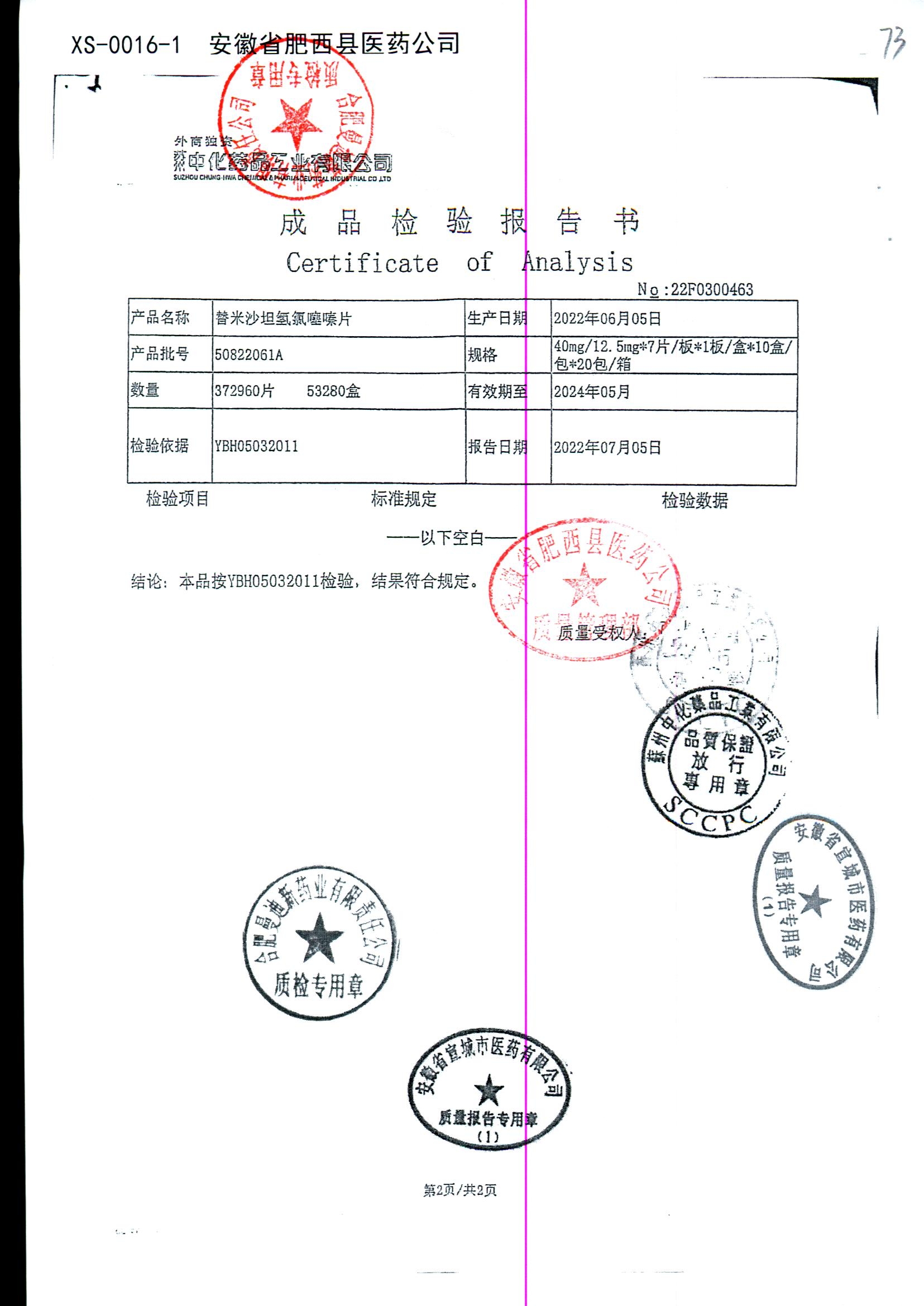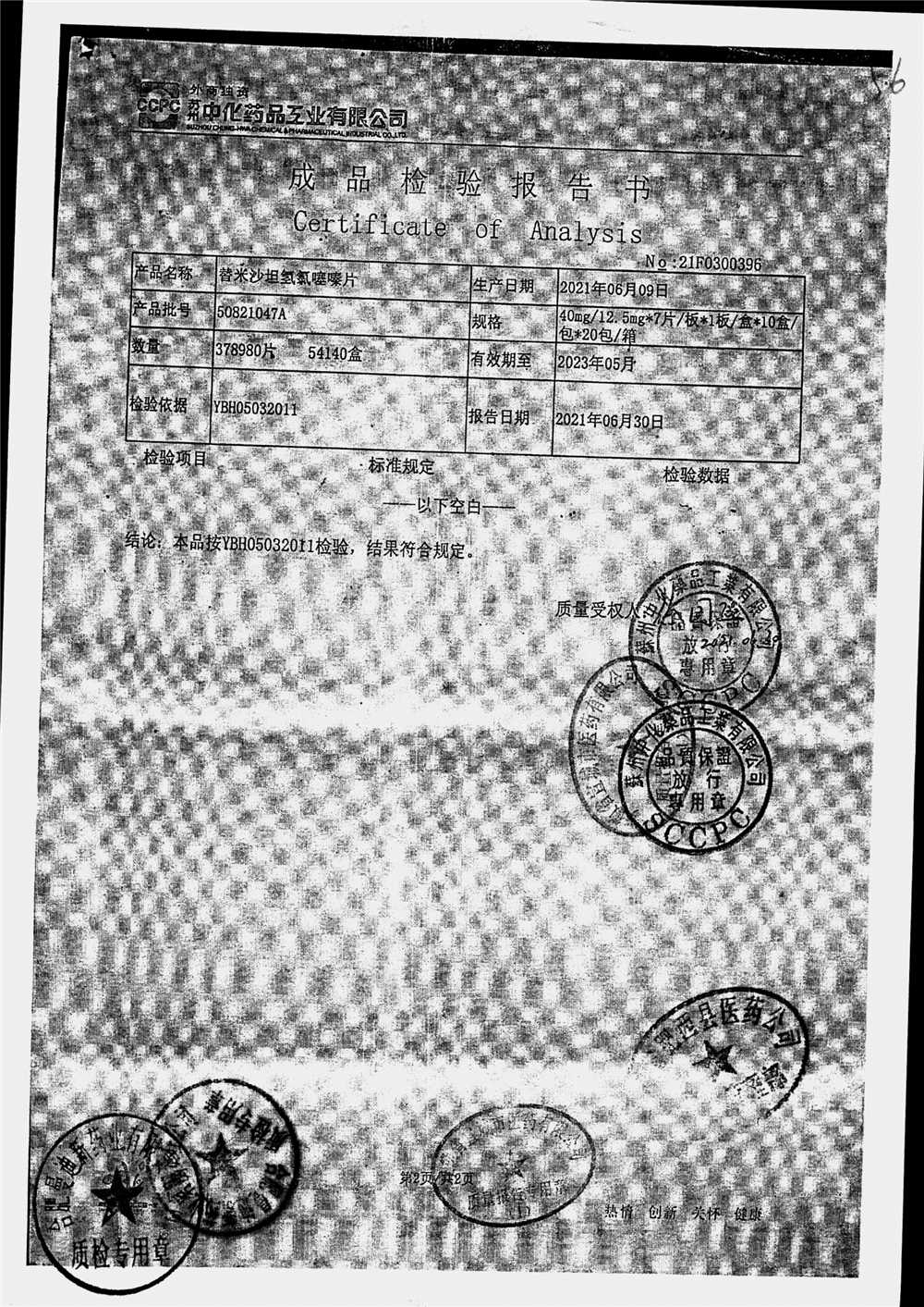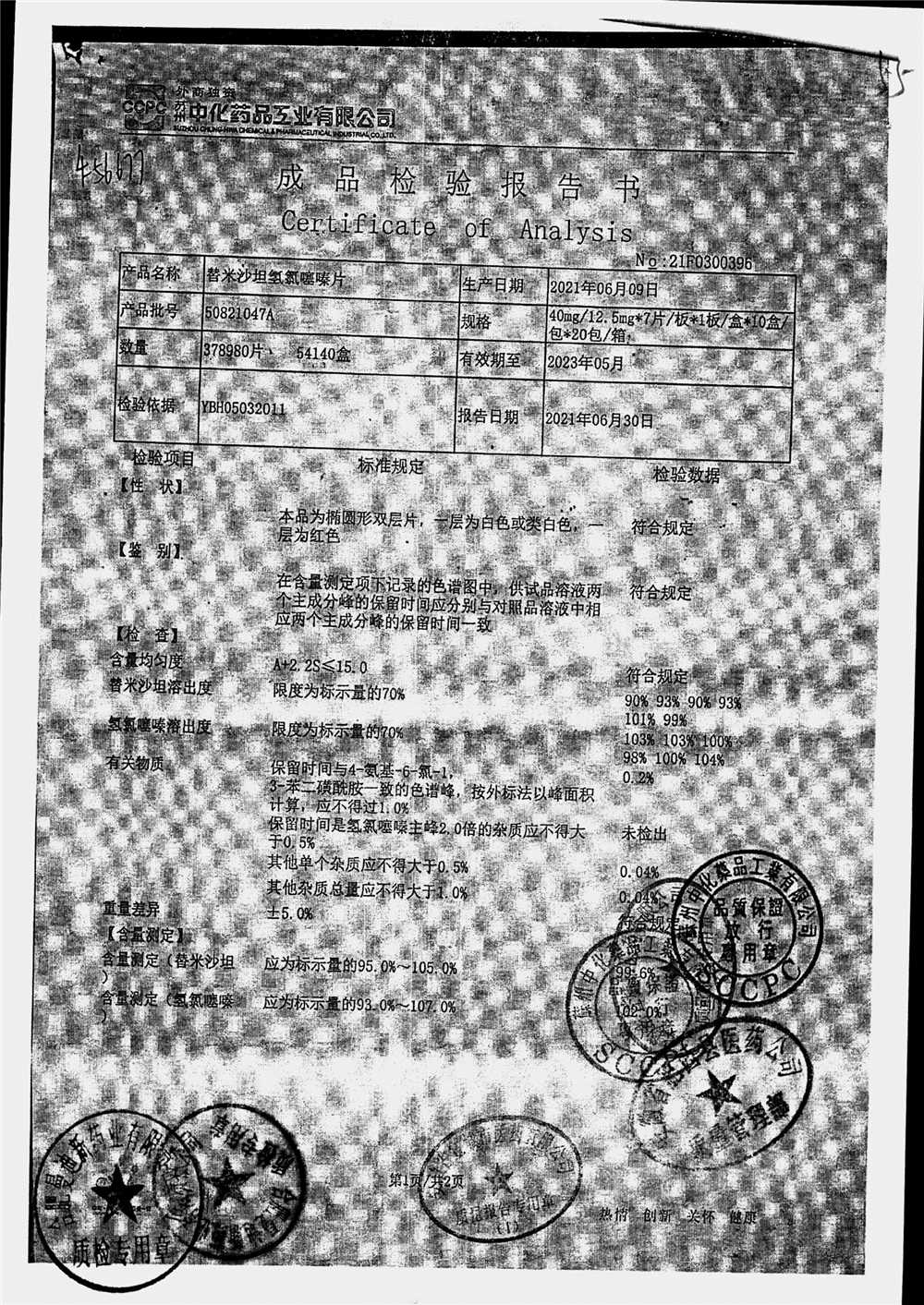 | 替米沙坦氢氯噻嗪片 | 7s | 50822061A/1 | 查看详情 |