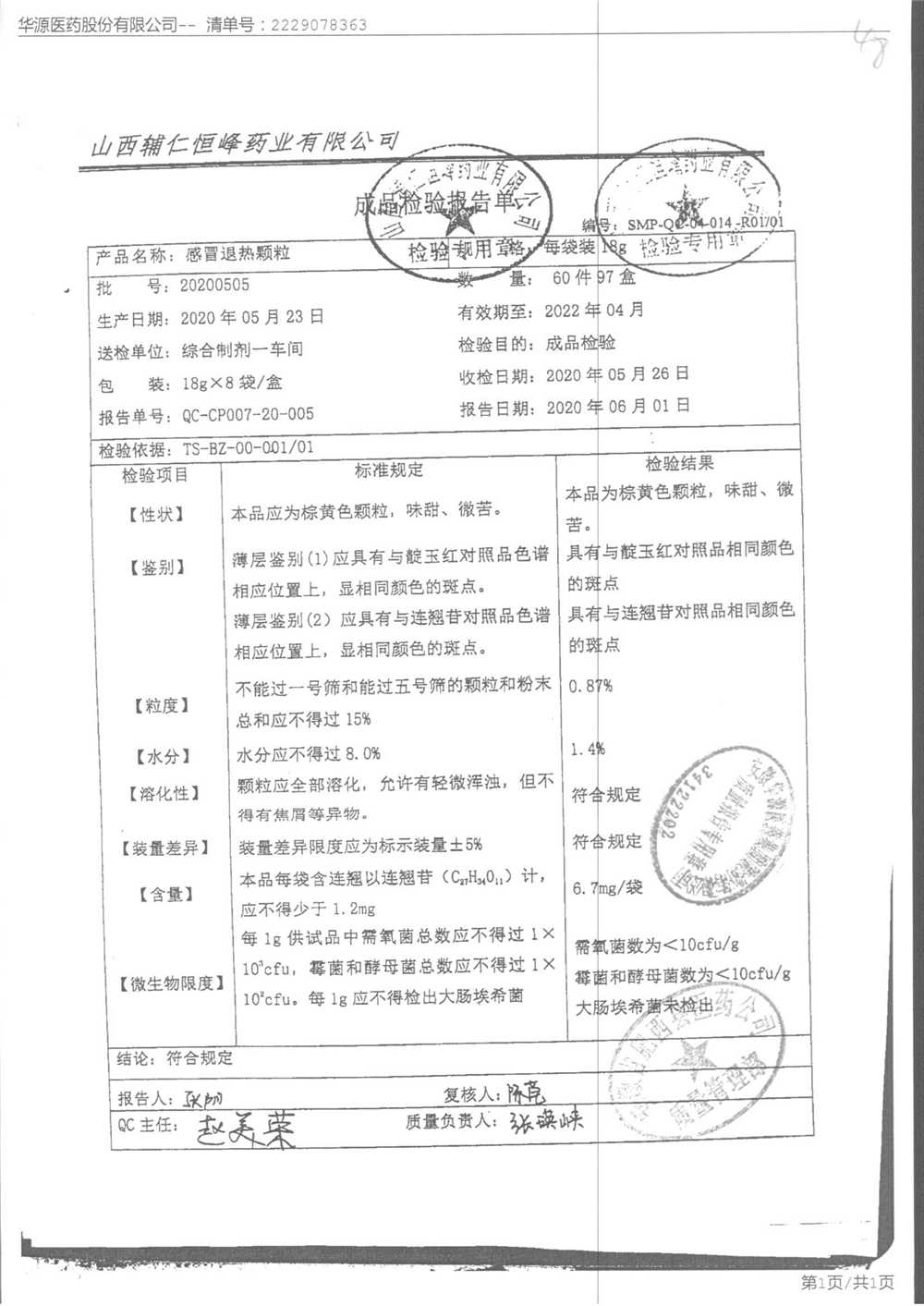 药检报告