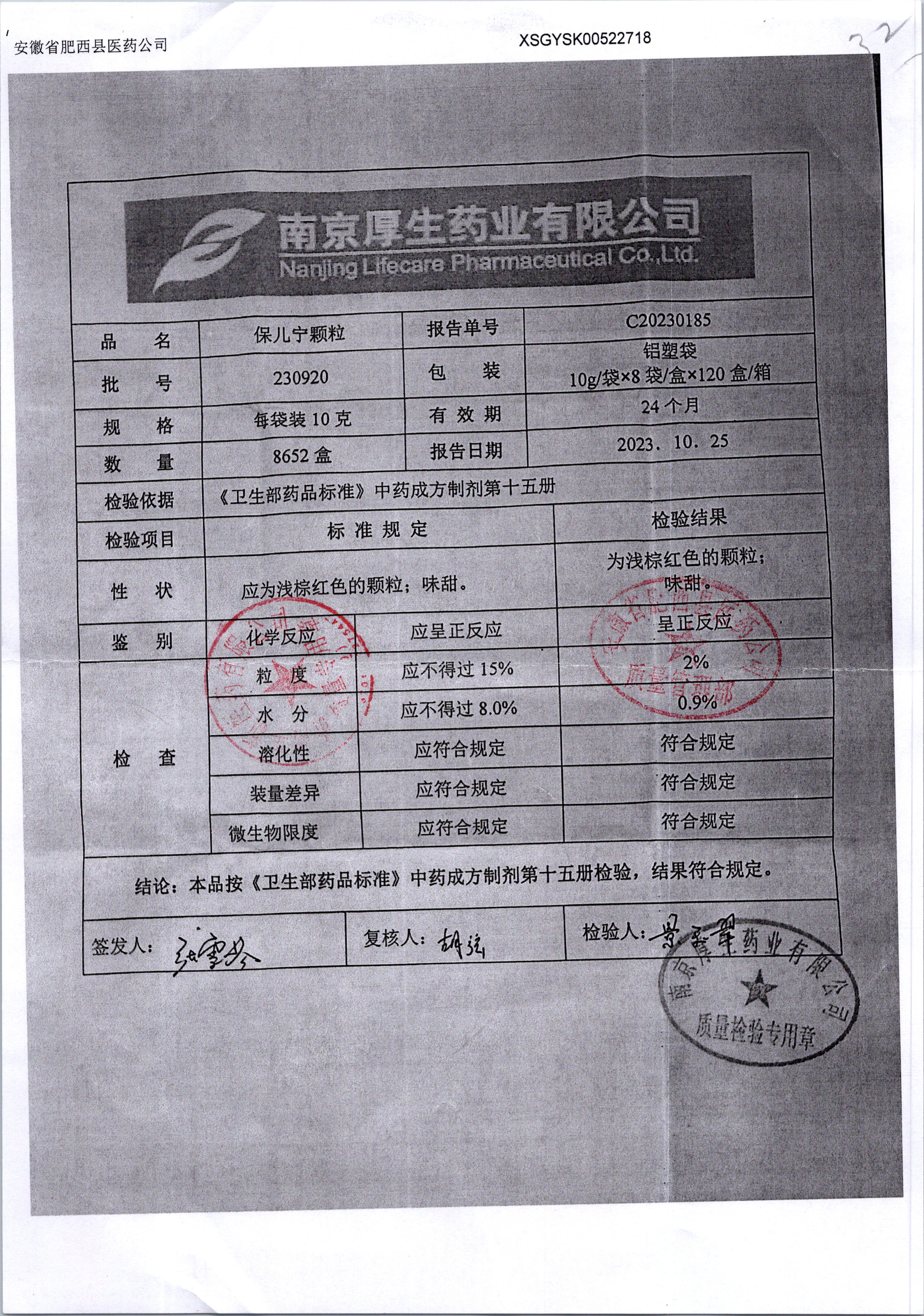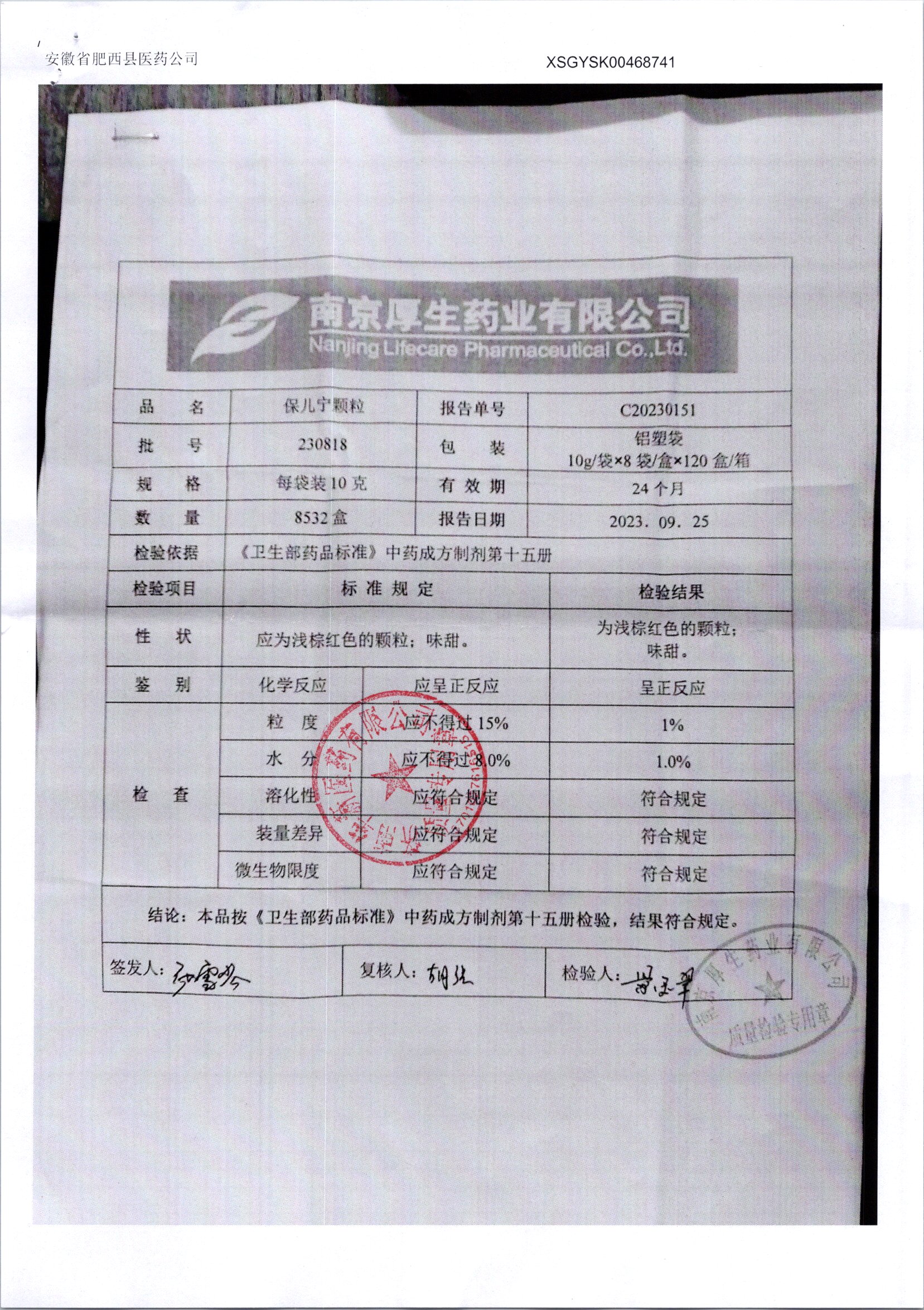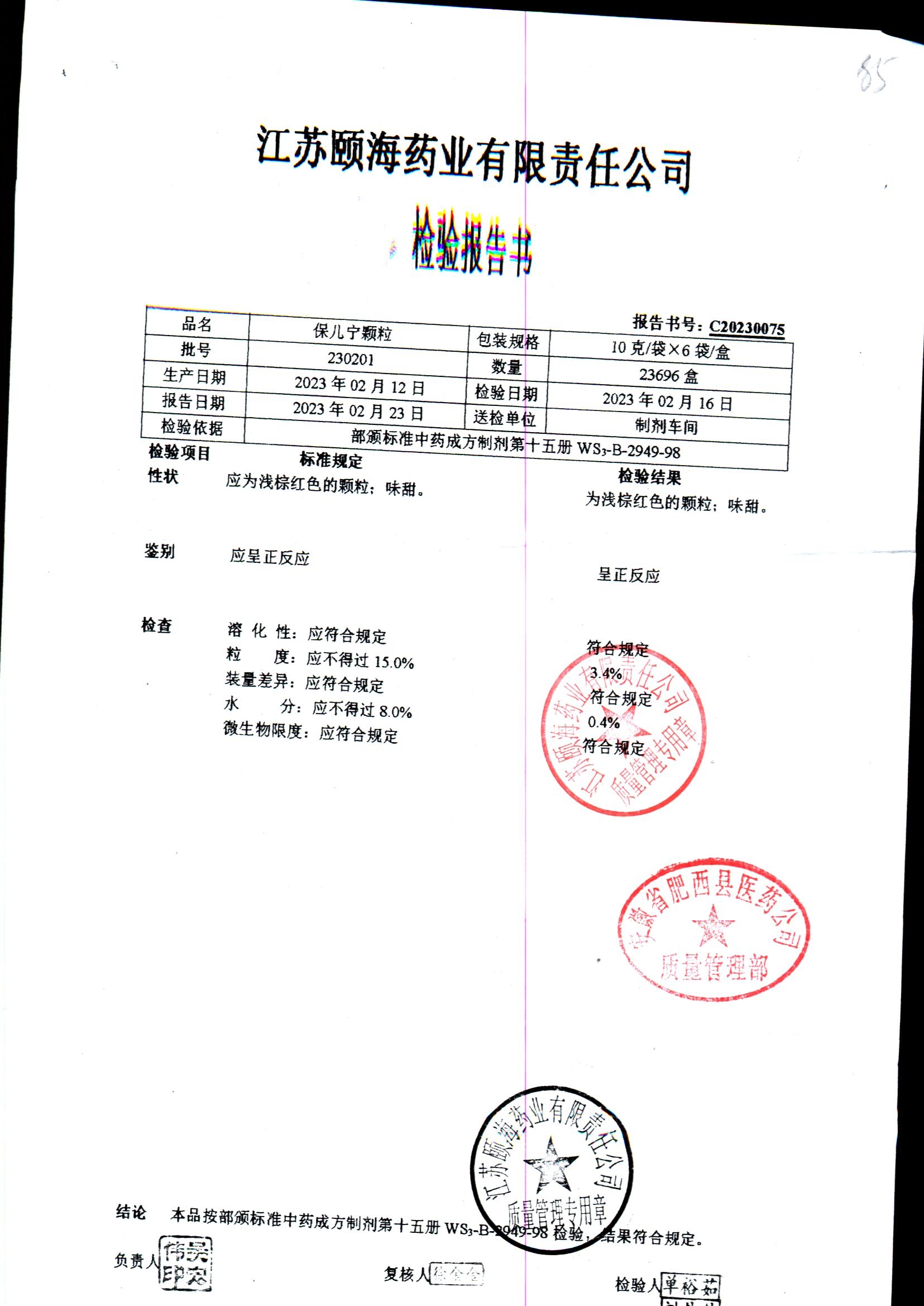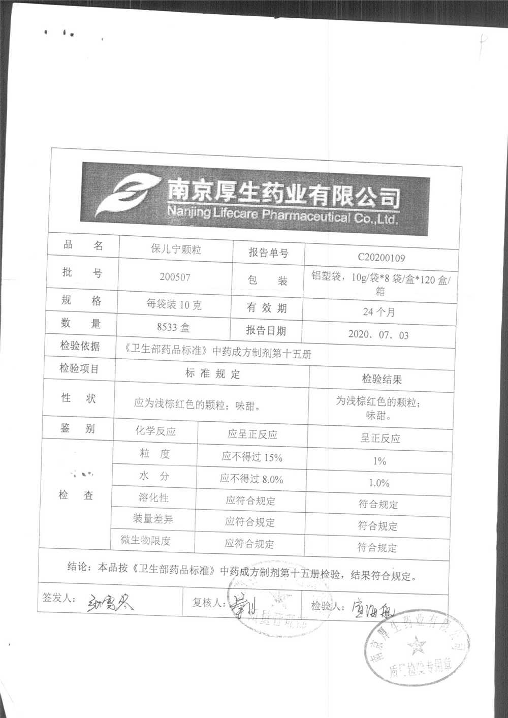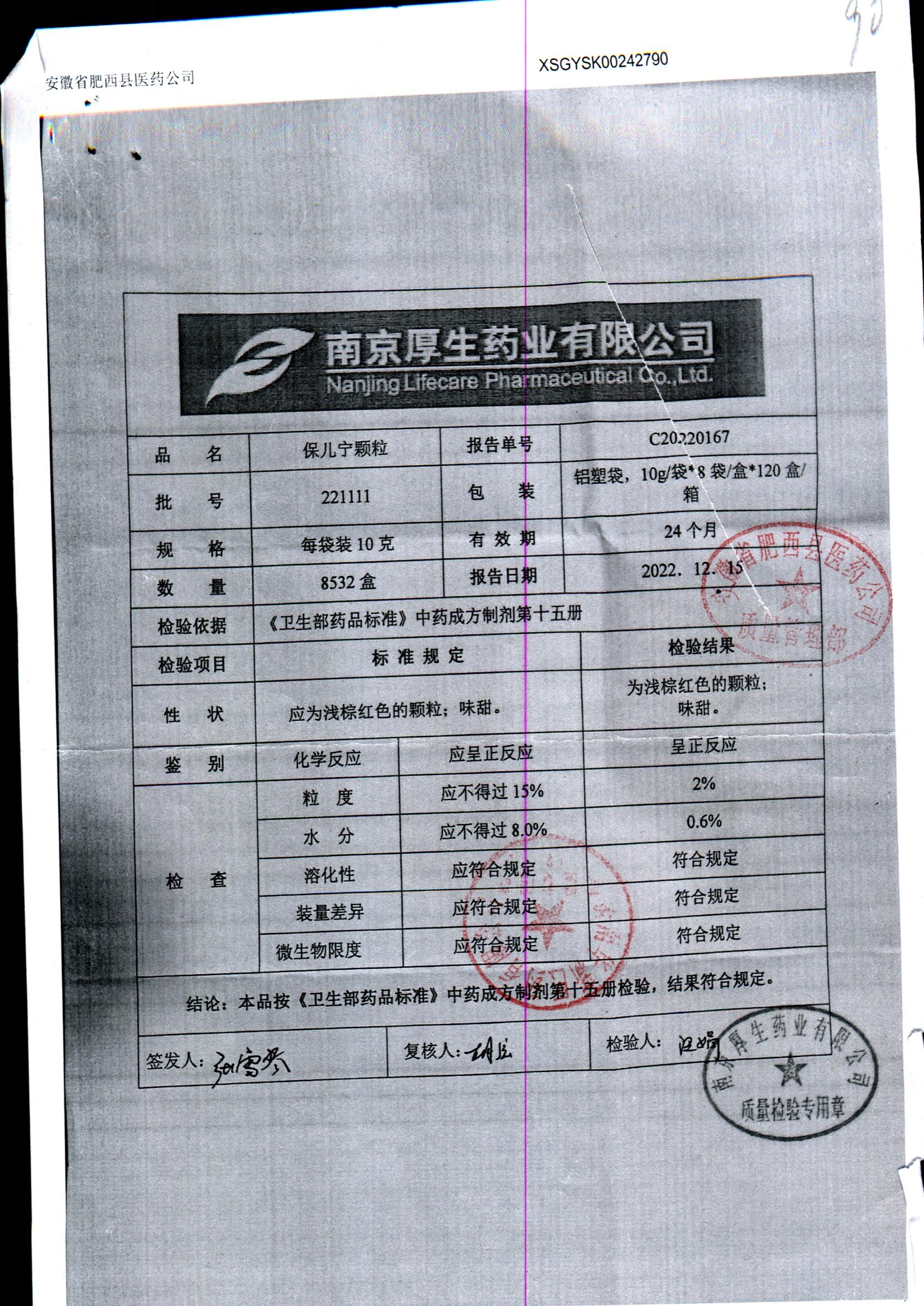 | 保儿宁颗粒 | 10g | 200506 | 查看详情 |