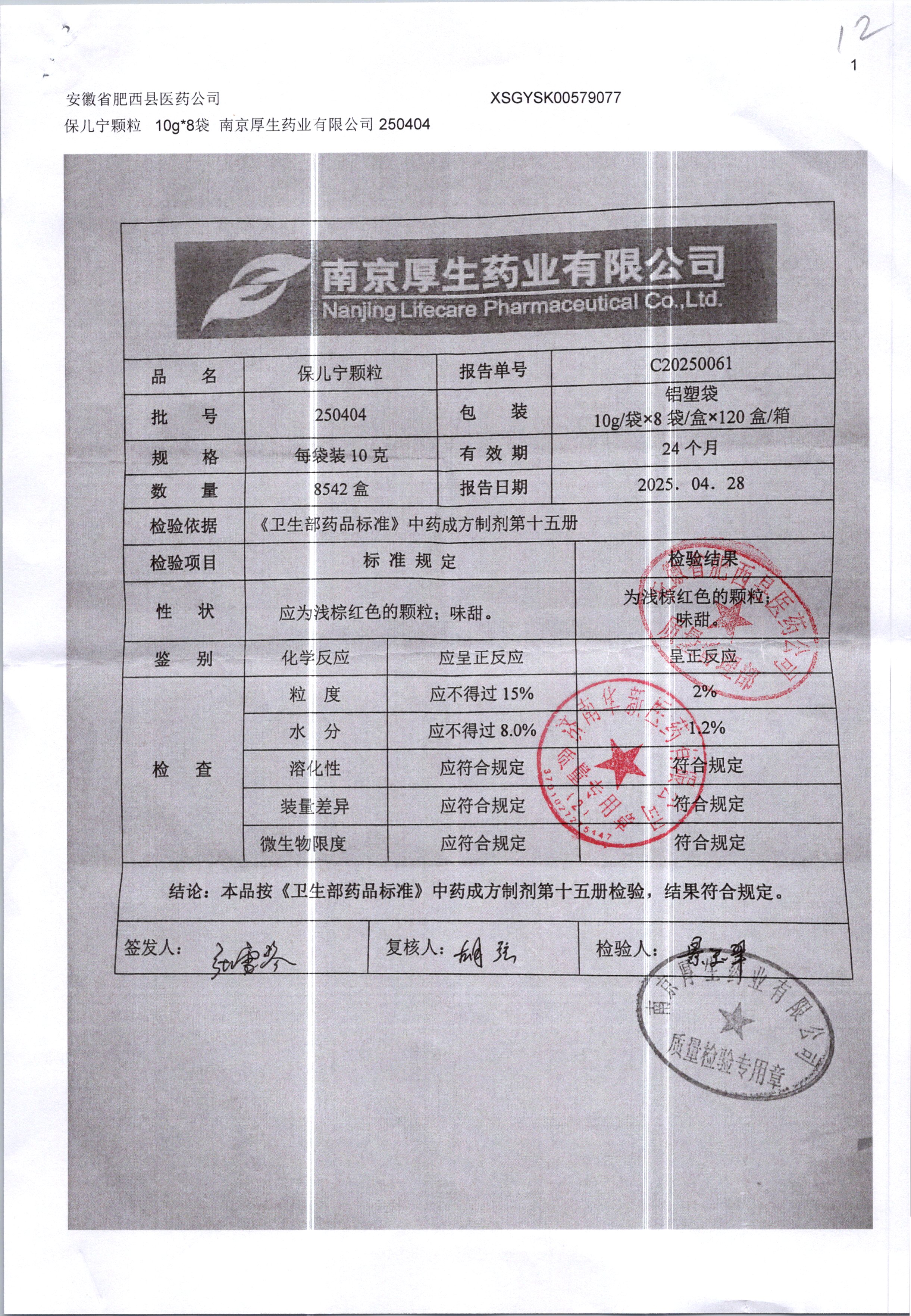 | 保儿宁颗粒 | 10g | 250404 | 查看详情 |