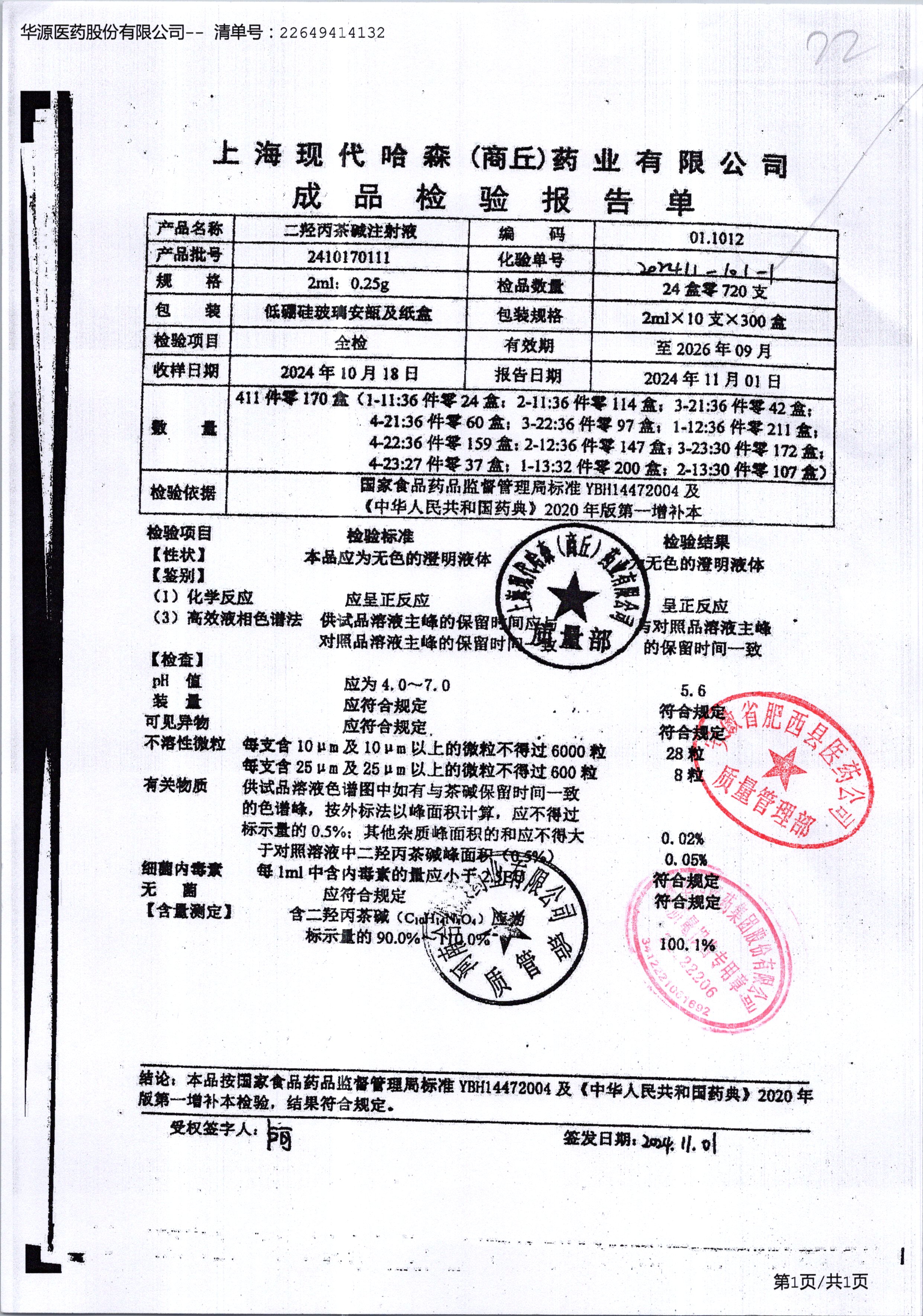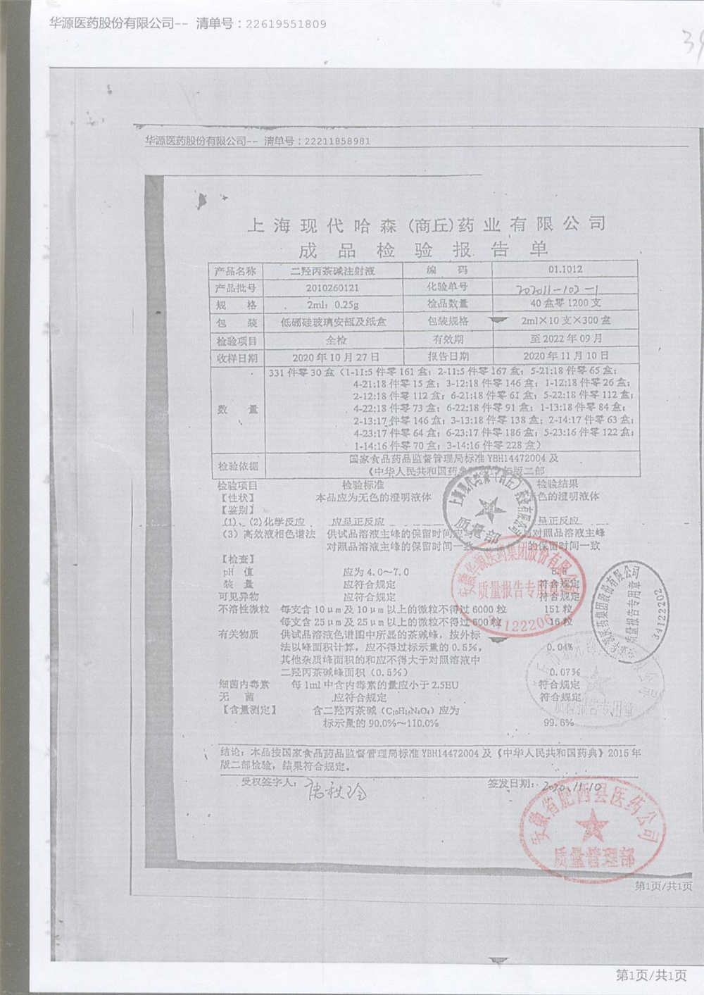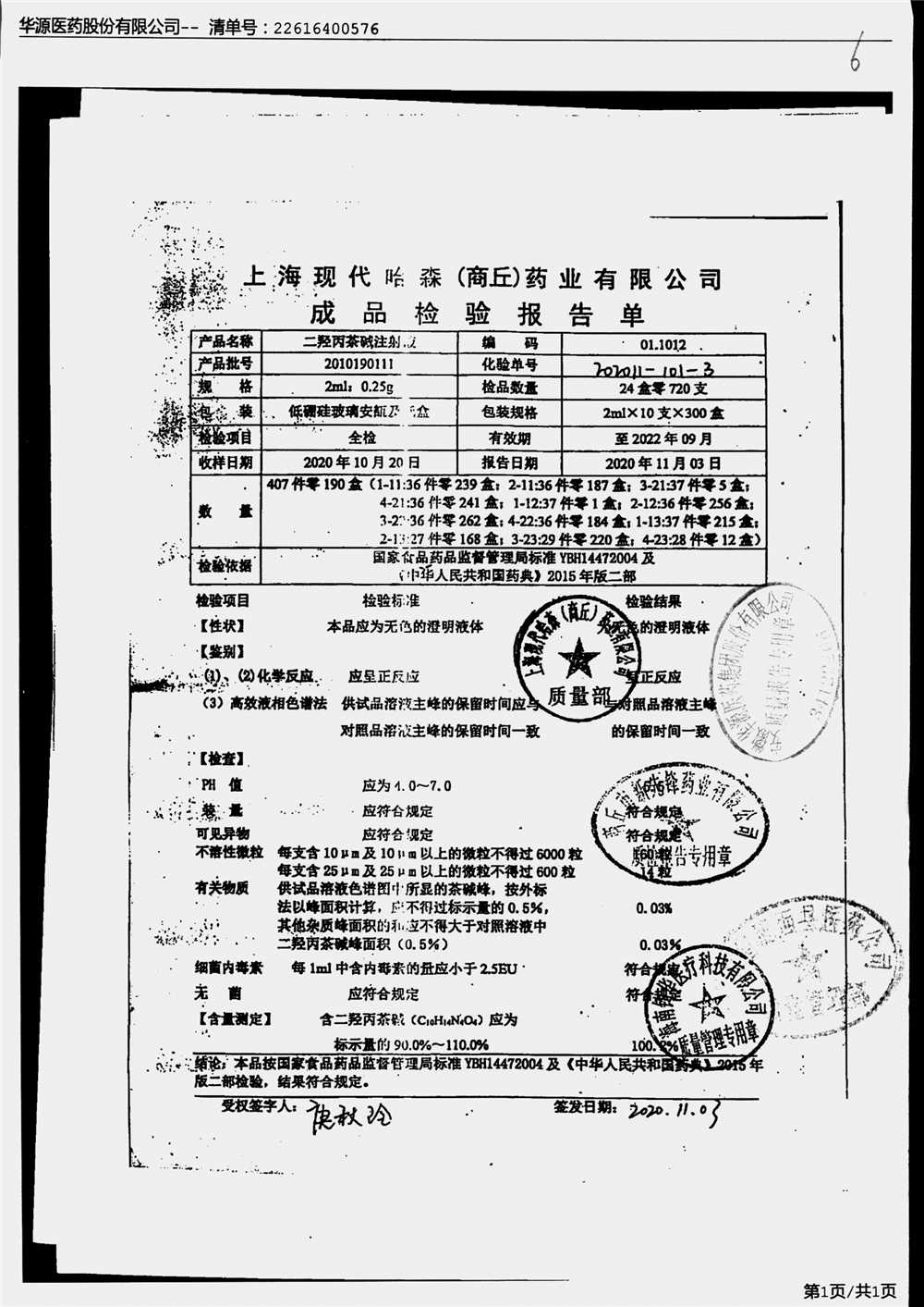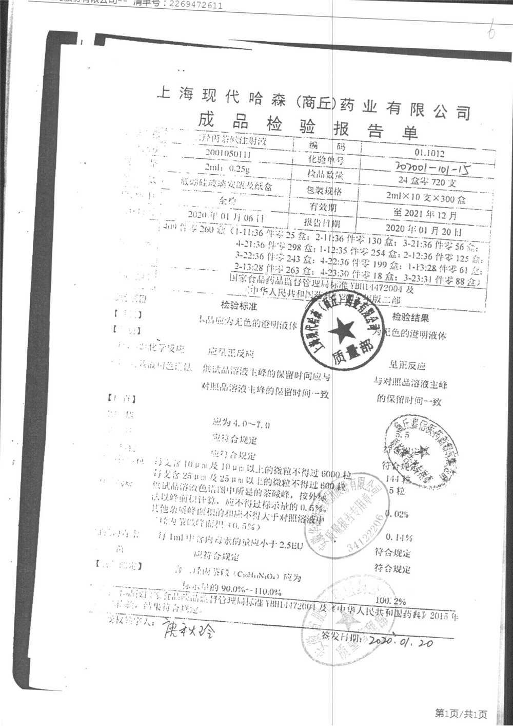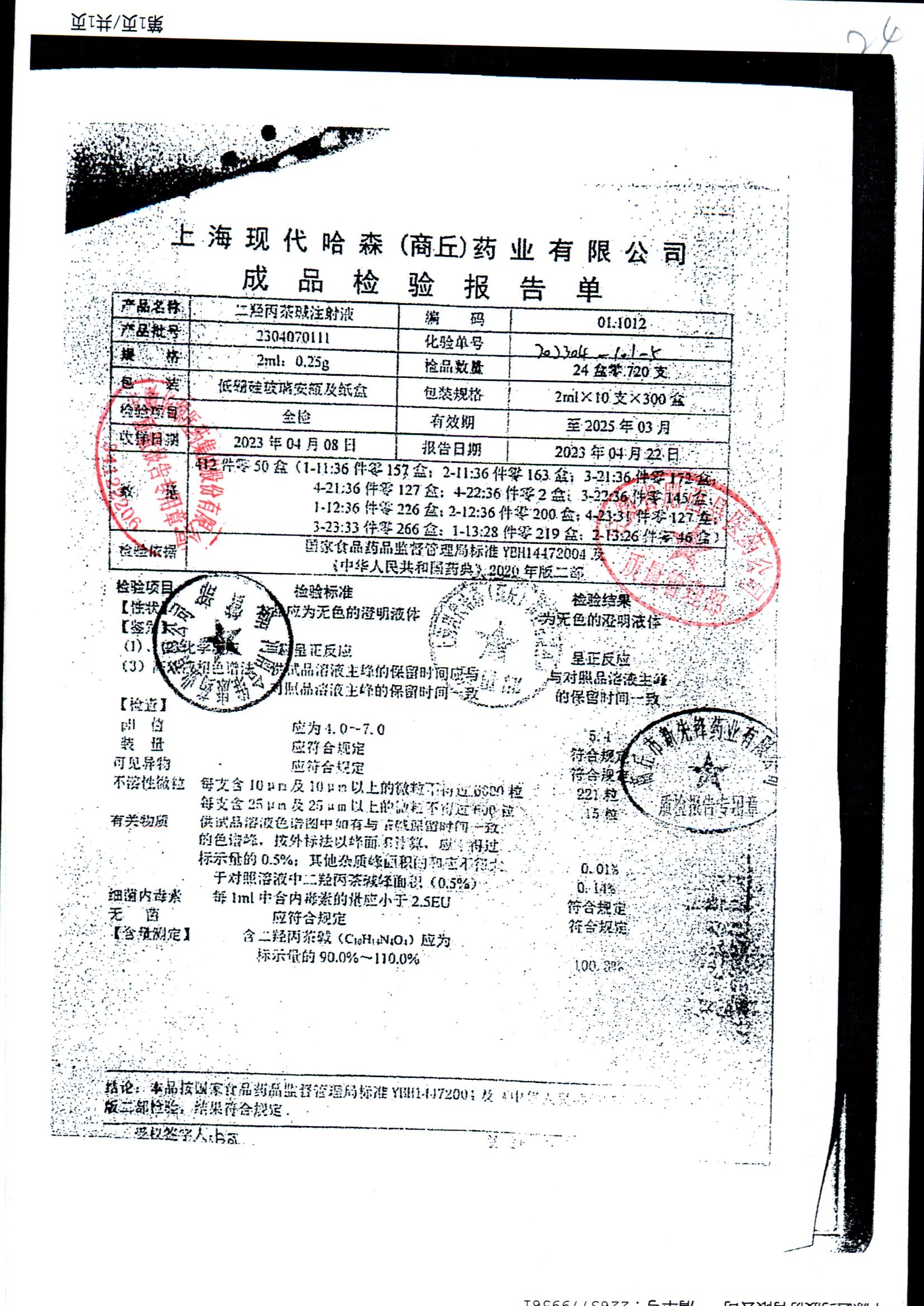 | 名称 | 规格 | 批号 | 药检报告 |