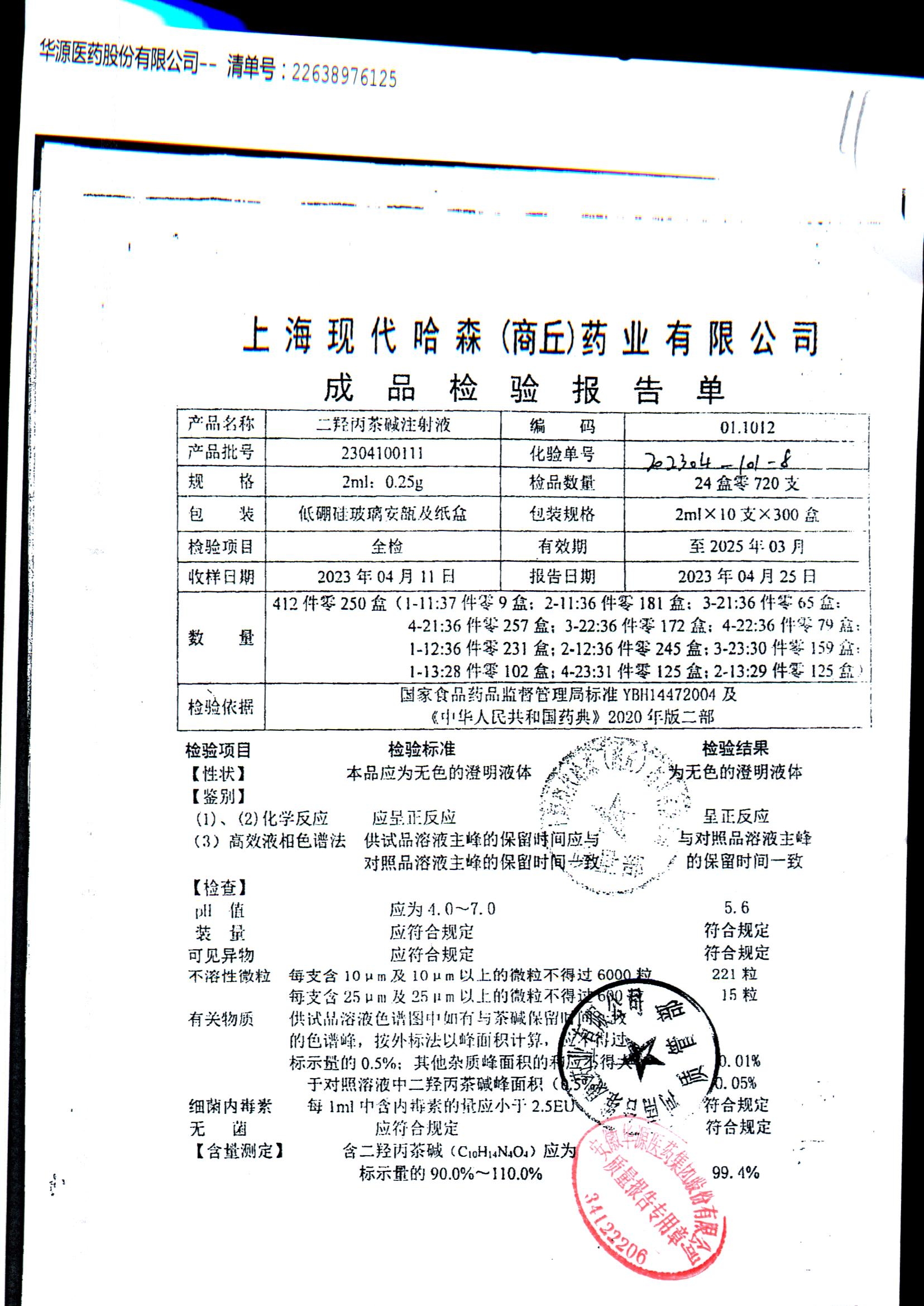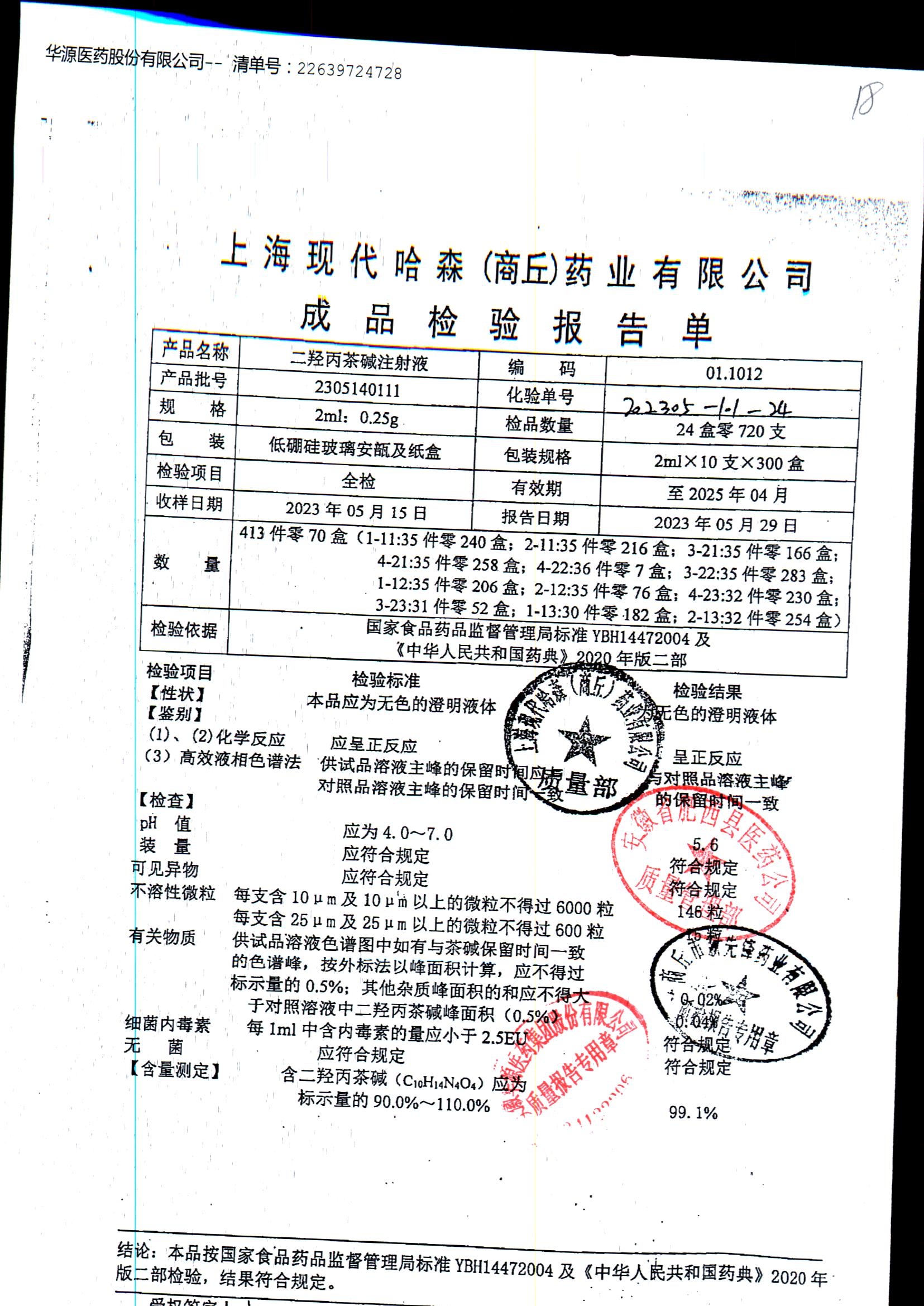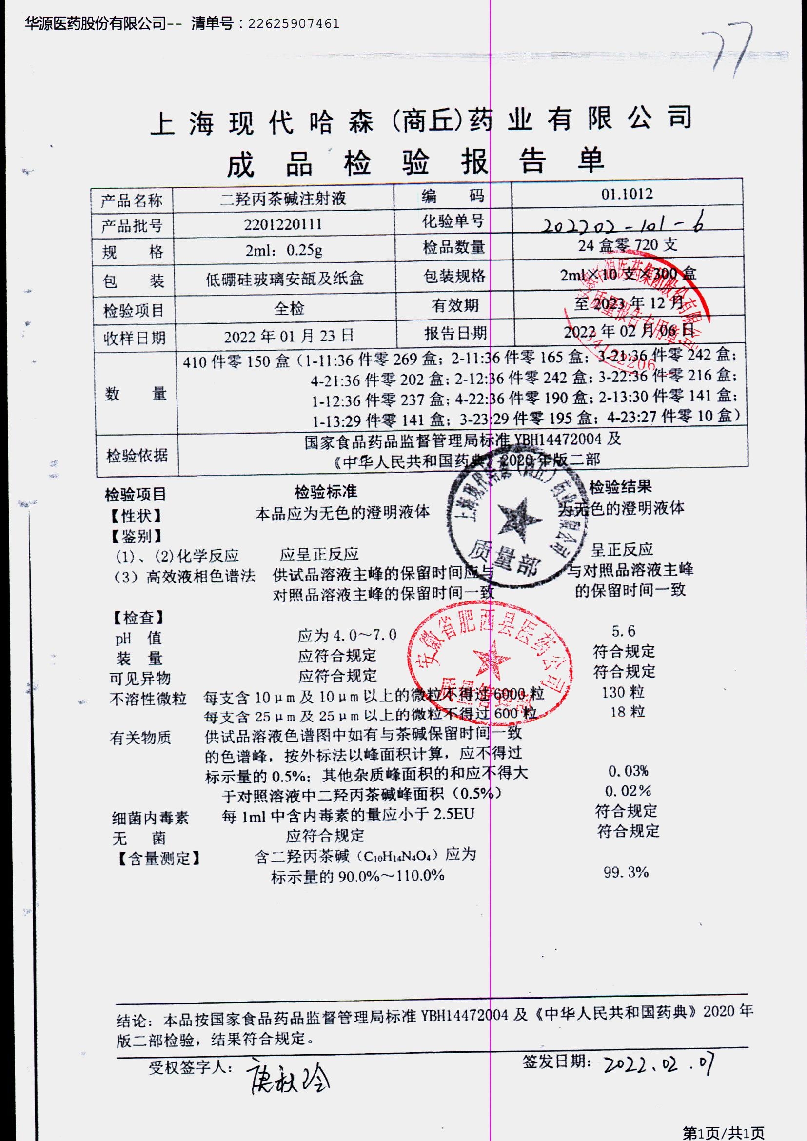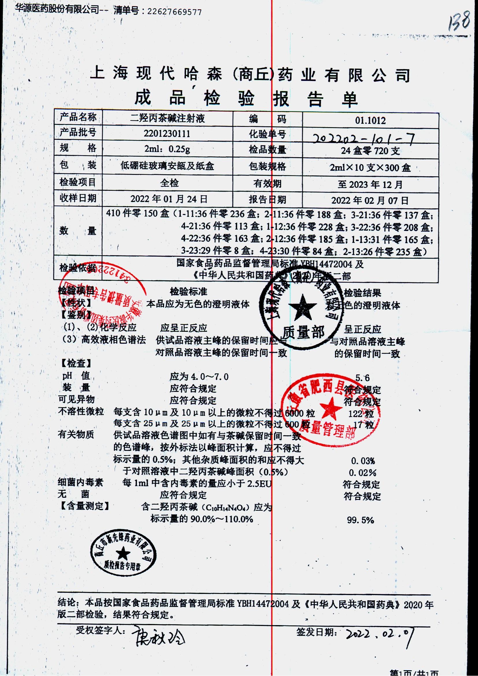 | 二羟丙茶碱注射液/喘定针 | 2ml:0.25g | 2110160111 | 查看详情 |