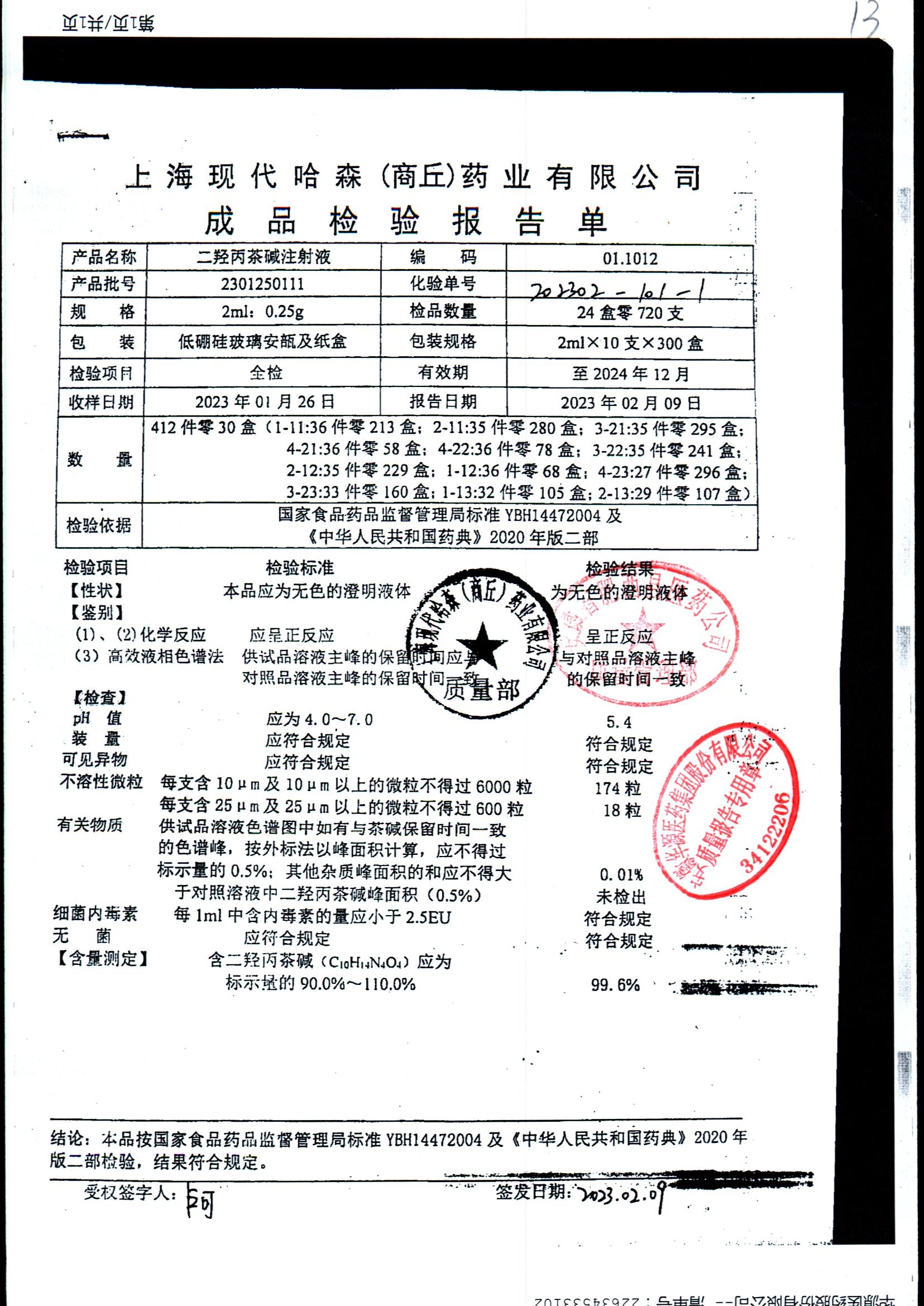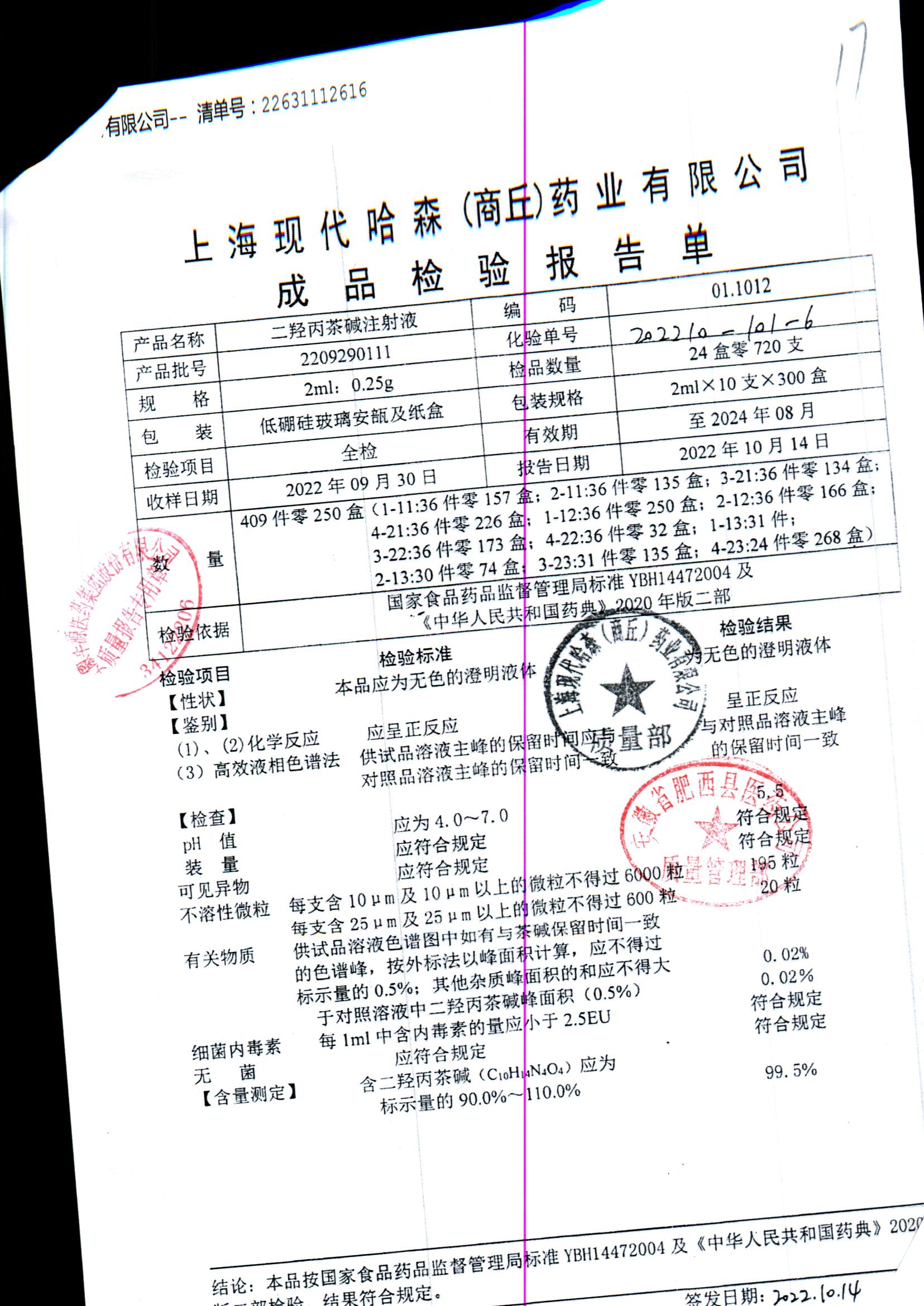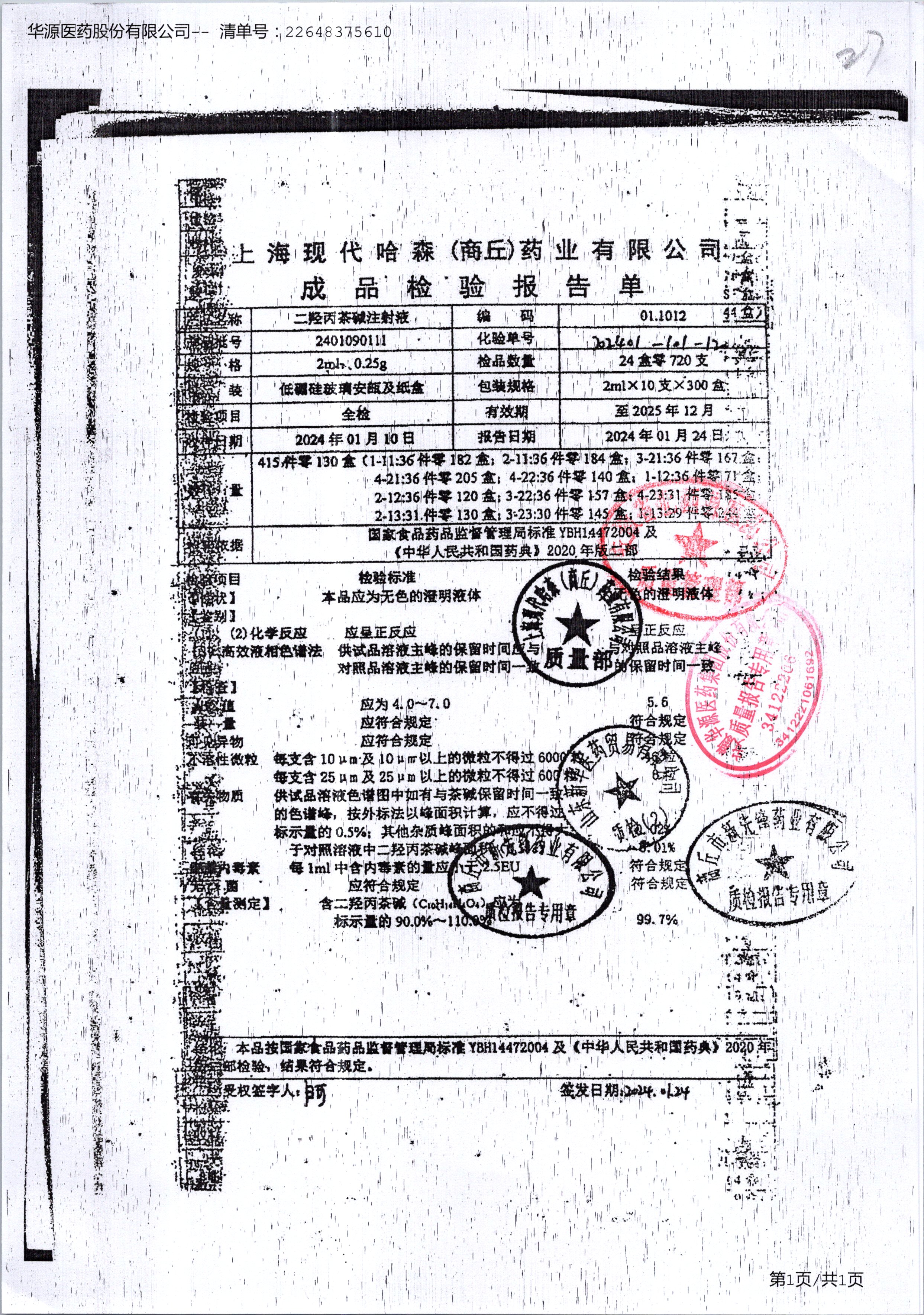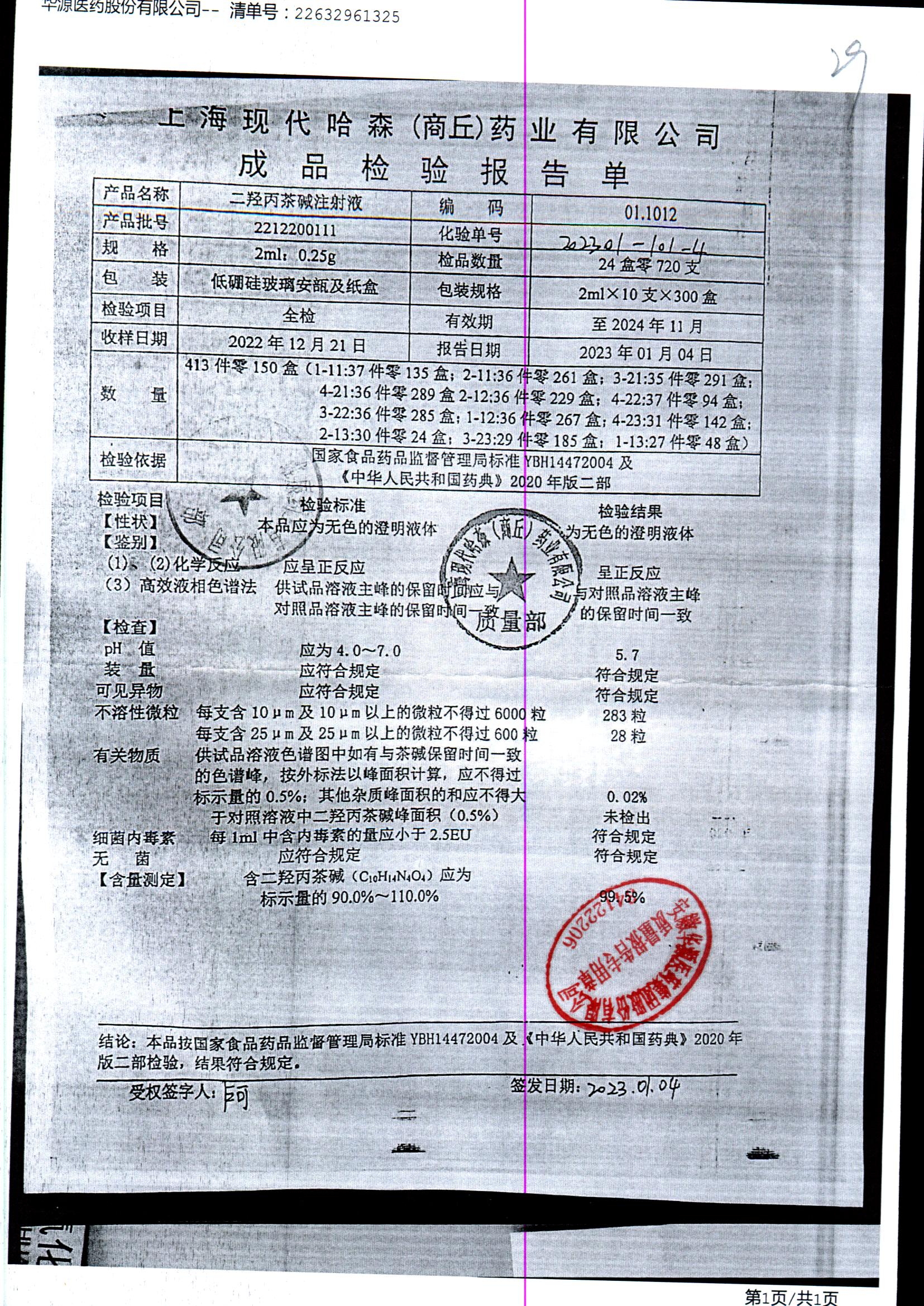 | 二羟丙茶碱注射液/喘定针 | 2ml:0.25g | 2110160111 | 查看详情 |