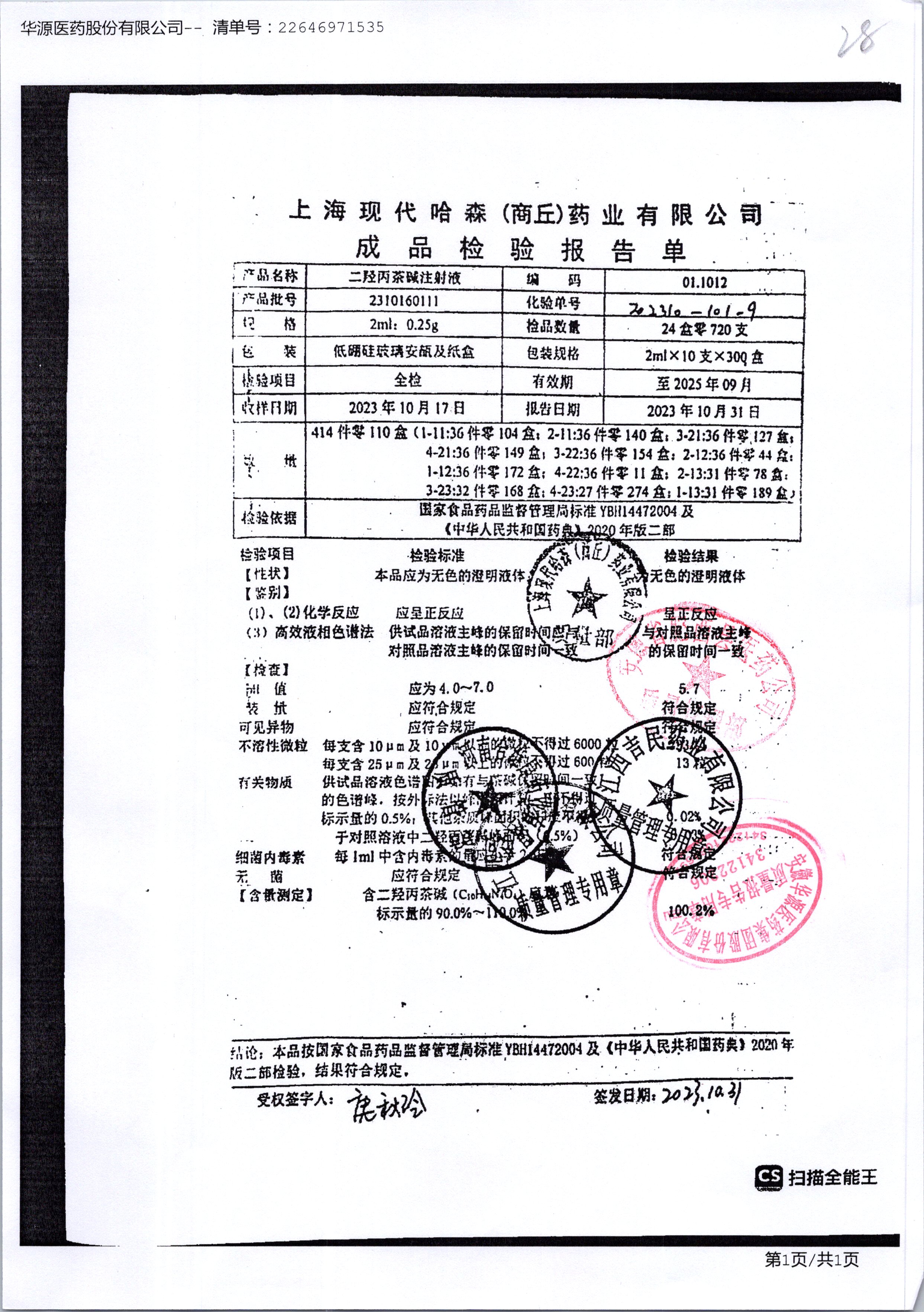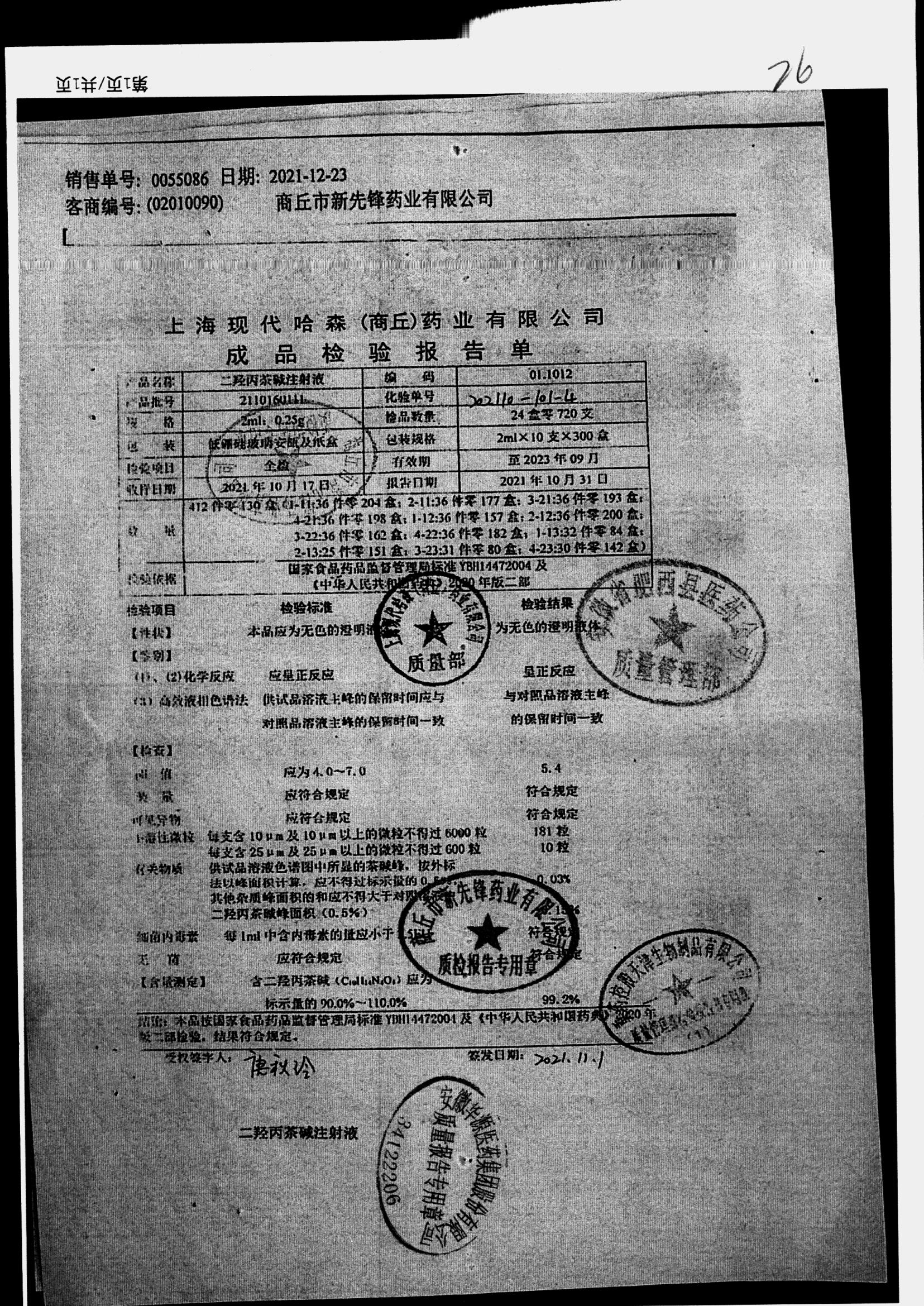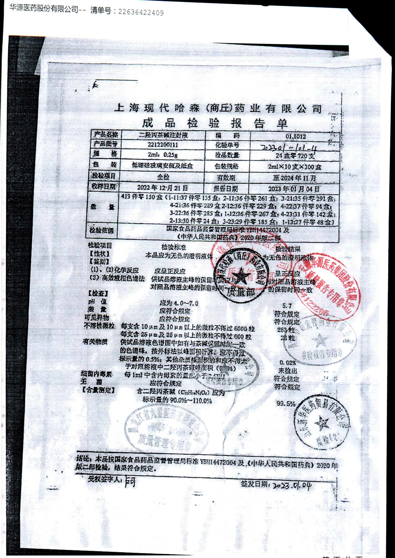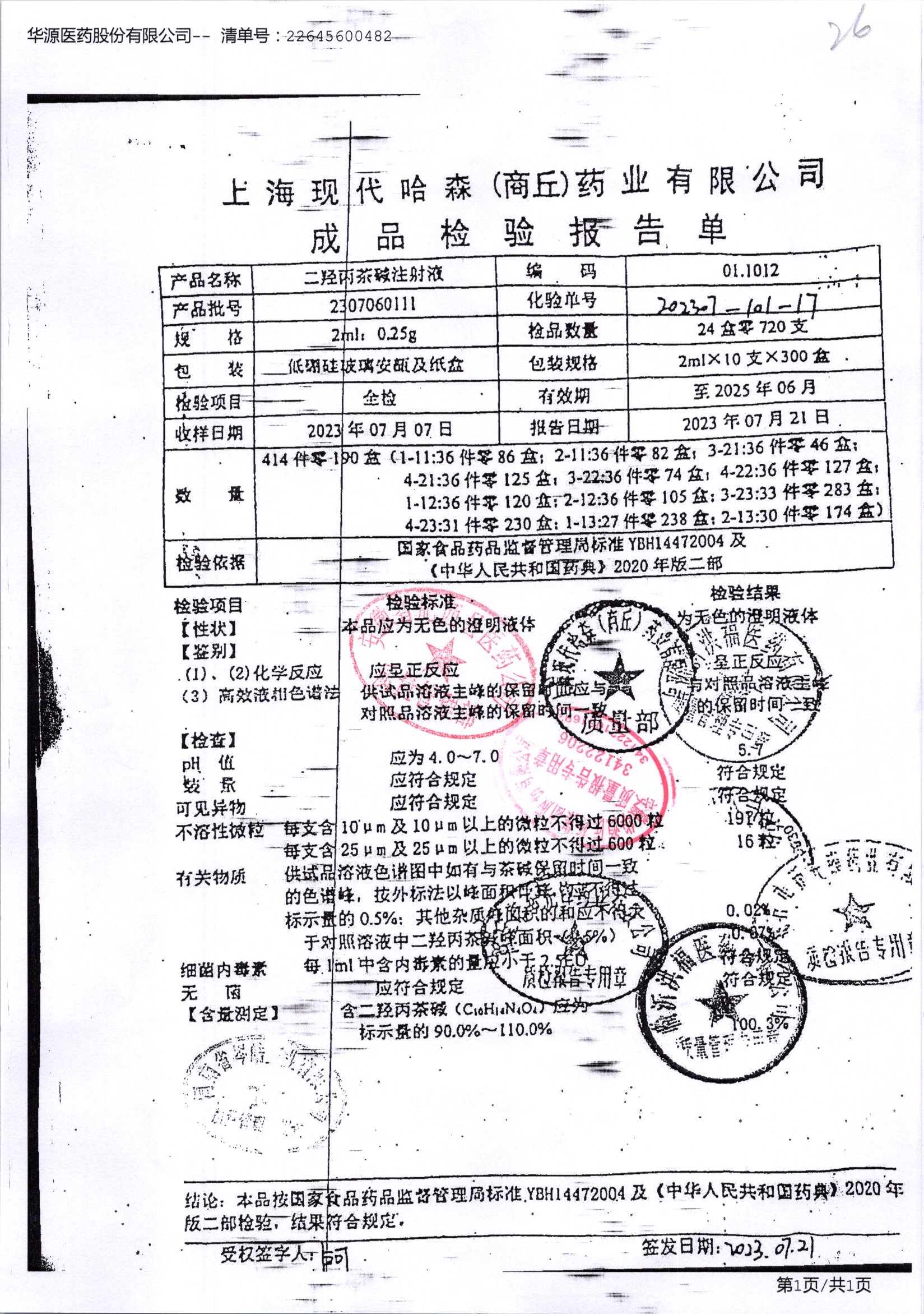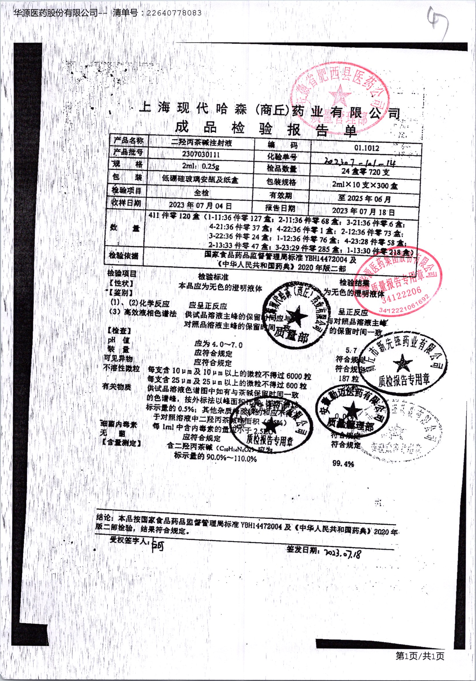 | 二羟丙茶碱注射液/喘定针 | 2ml:0.25g | 2110160111 | 查看详情 |